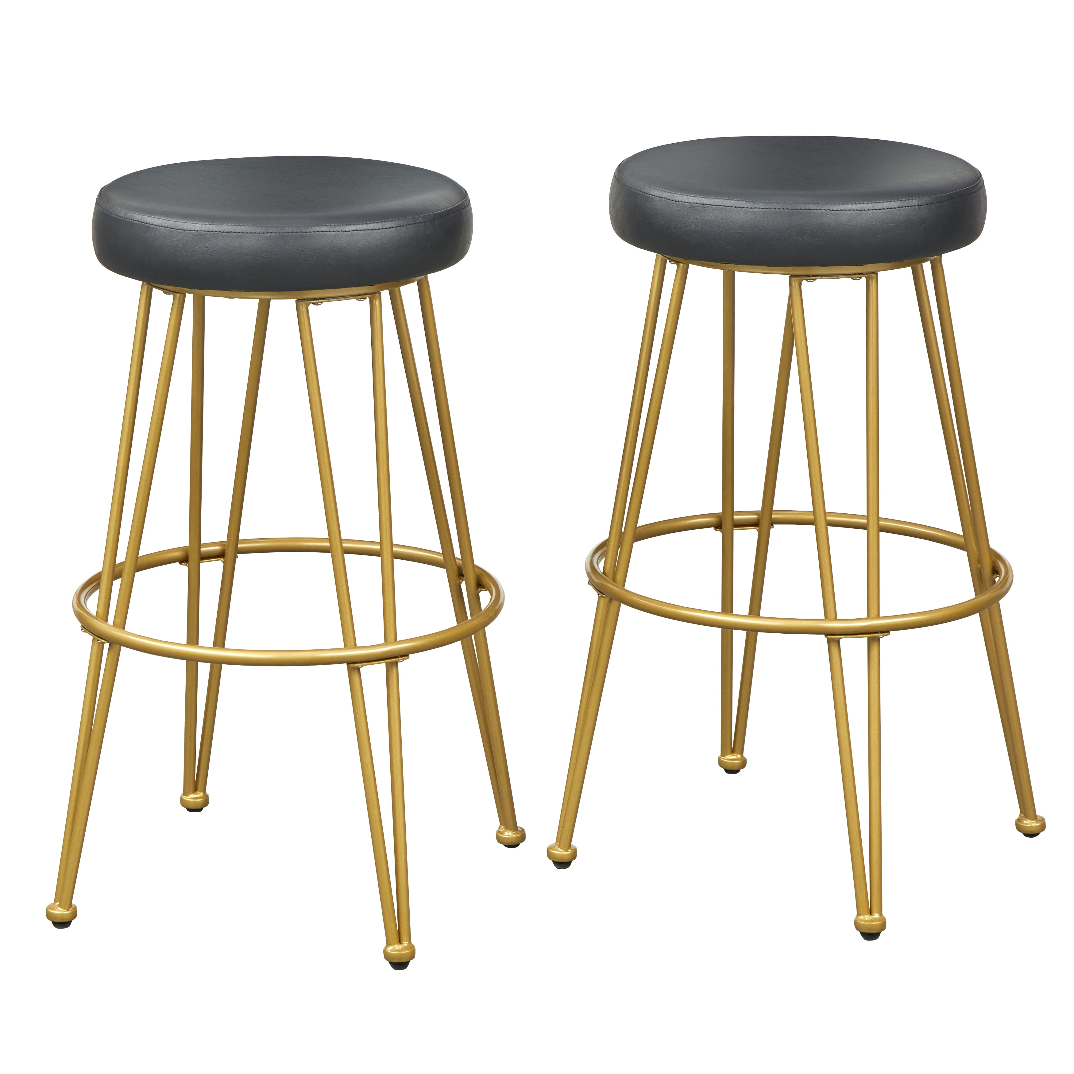 TMS Magnus Bar 30” High Backless Bar Stool, Set of 2, Black Faux Leather Seat with Gold Metal Frame