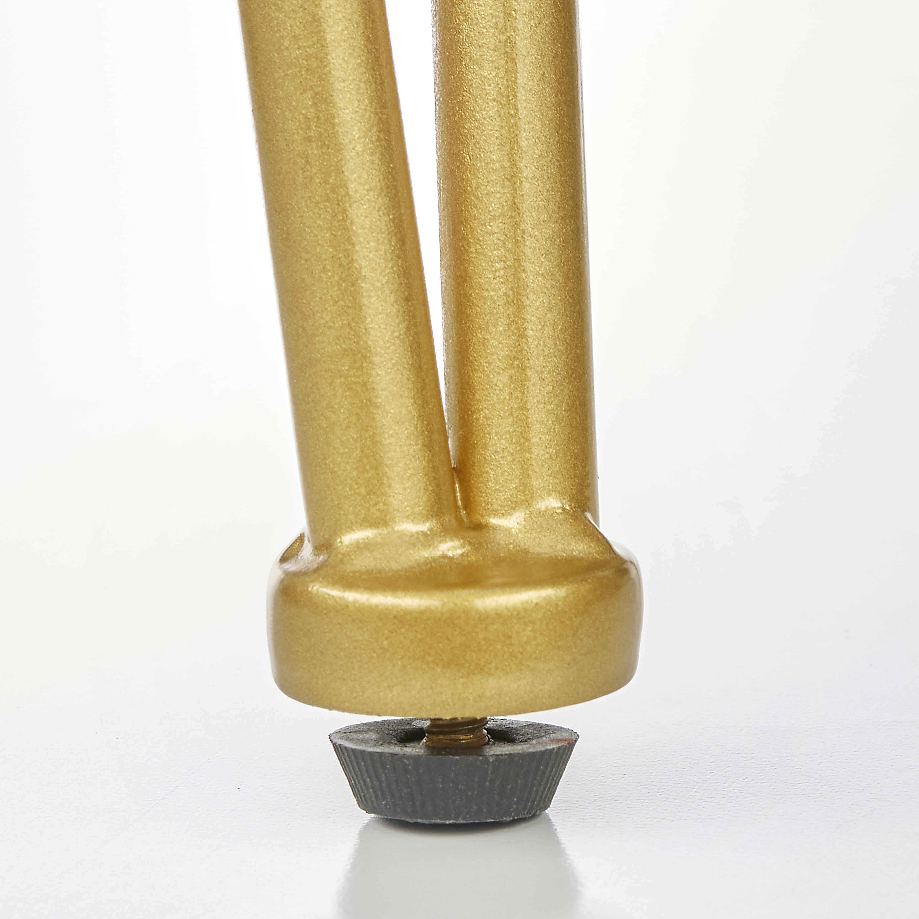 Includes: Two (2) bar height stools Modern glam style Generously cushioned seat Features a unique gold-tone metal base with a footrest for relaxation Constructed of Bentwood, Foam, Faux Leather and Metal Upholstered in Black faux leather Ships in one (1) carton Assembly required Overall dimensions: 30 inches high x 18.2 inches wide x 18.2 inches deep