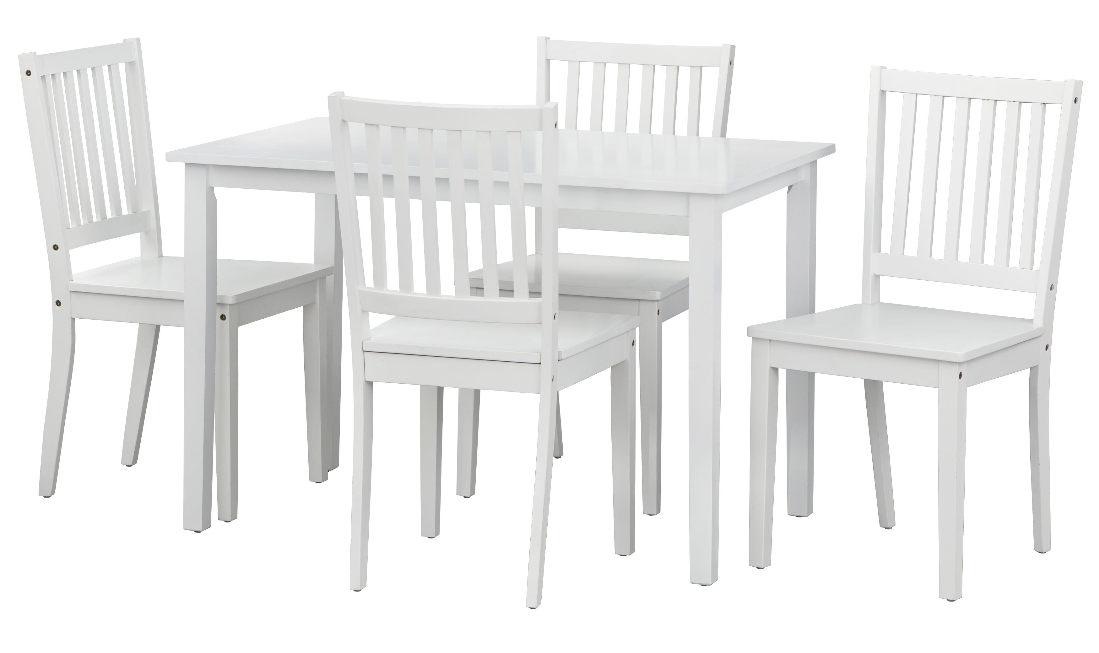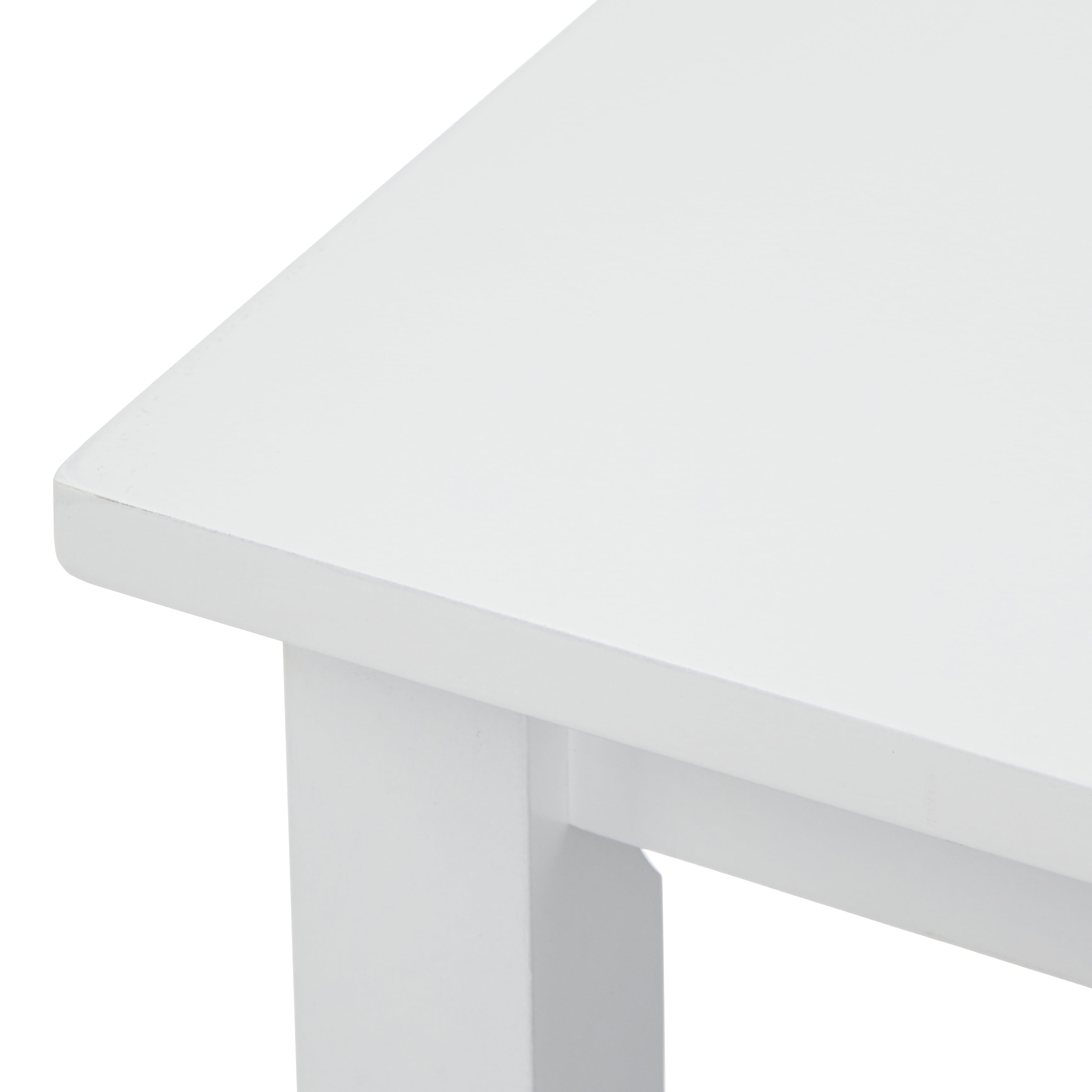 Dimensions: 45L x 28W x 29H in. Rubberwood construction Dining table available in black, white and espresso finishes Rectangular table Seats 4 Bold lines, straight legs Shaker style blends with all décor Add matching contemporary or shaker-style chairs (sold separately) to complete your dining room furniture