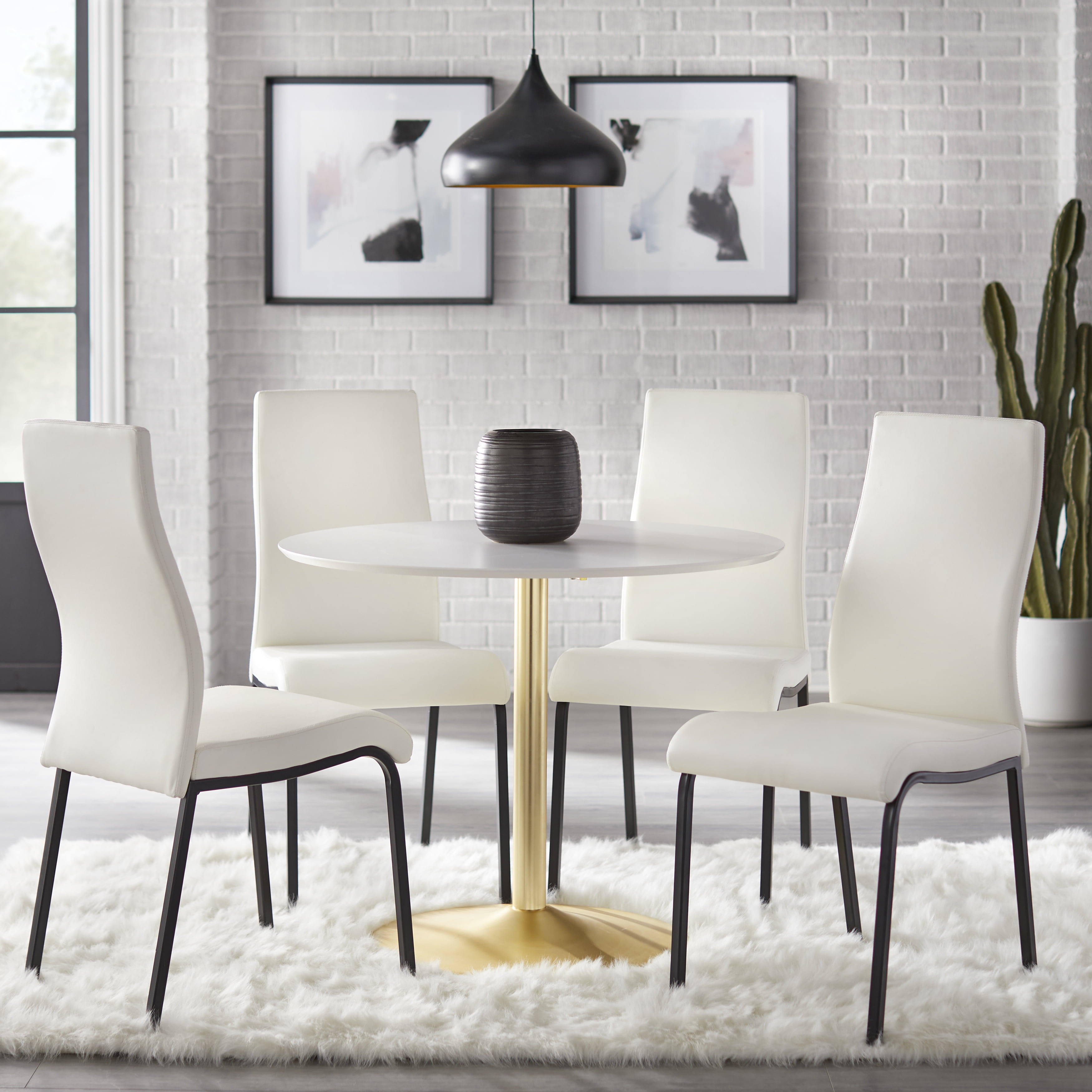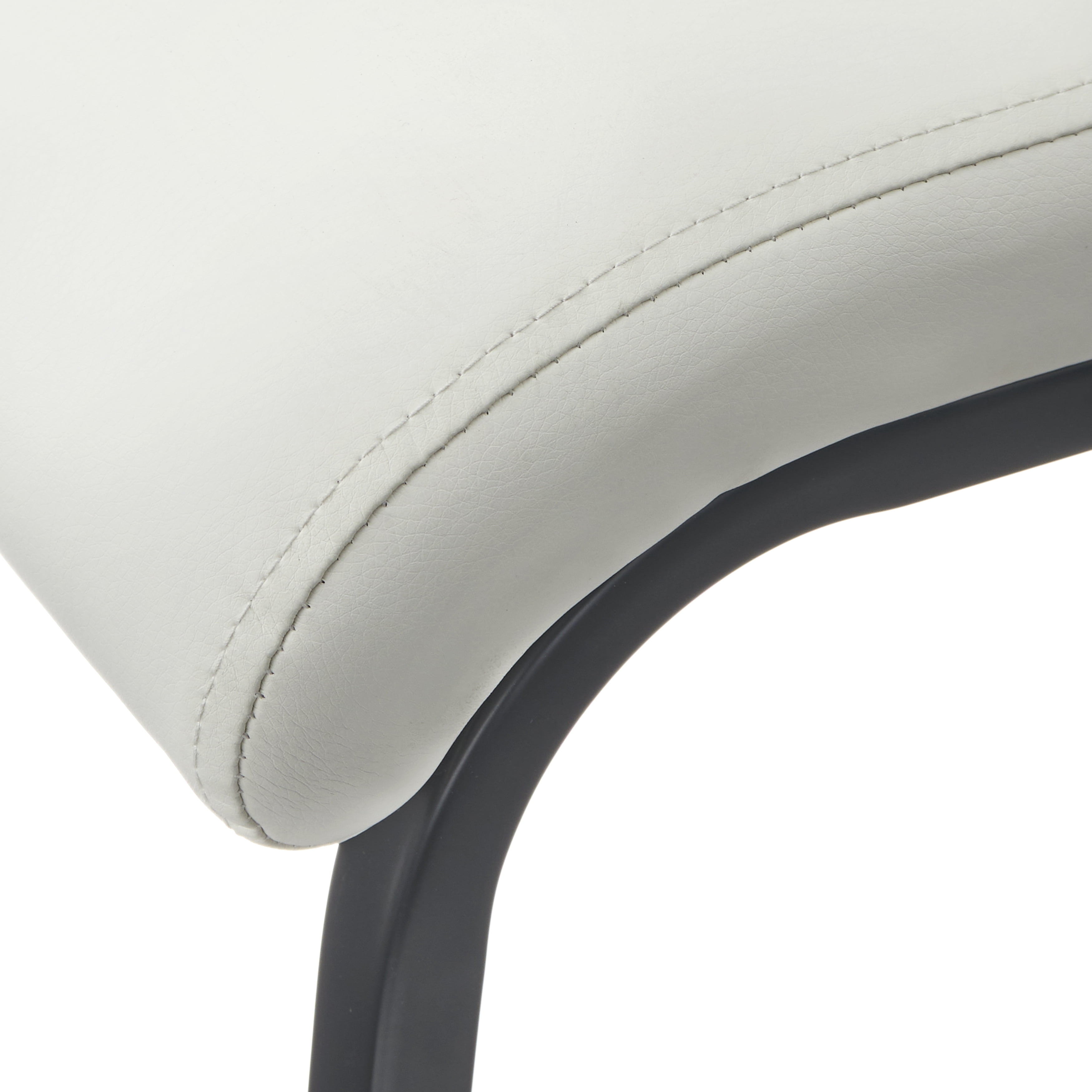 Join with loved ones for meals and celebrations with the Nora Dining Chair (Set of 2) by TMS. Sleek Black metal legs add a striking contrast to the crisp White faux-leather upholstery, while the high, curved chic back design delivers a balance of comfort and modern allure. Generously padded seats and backs provide lasting appeal, the perfect dining chairs that will contribute to many hours gathering with your family and friends.