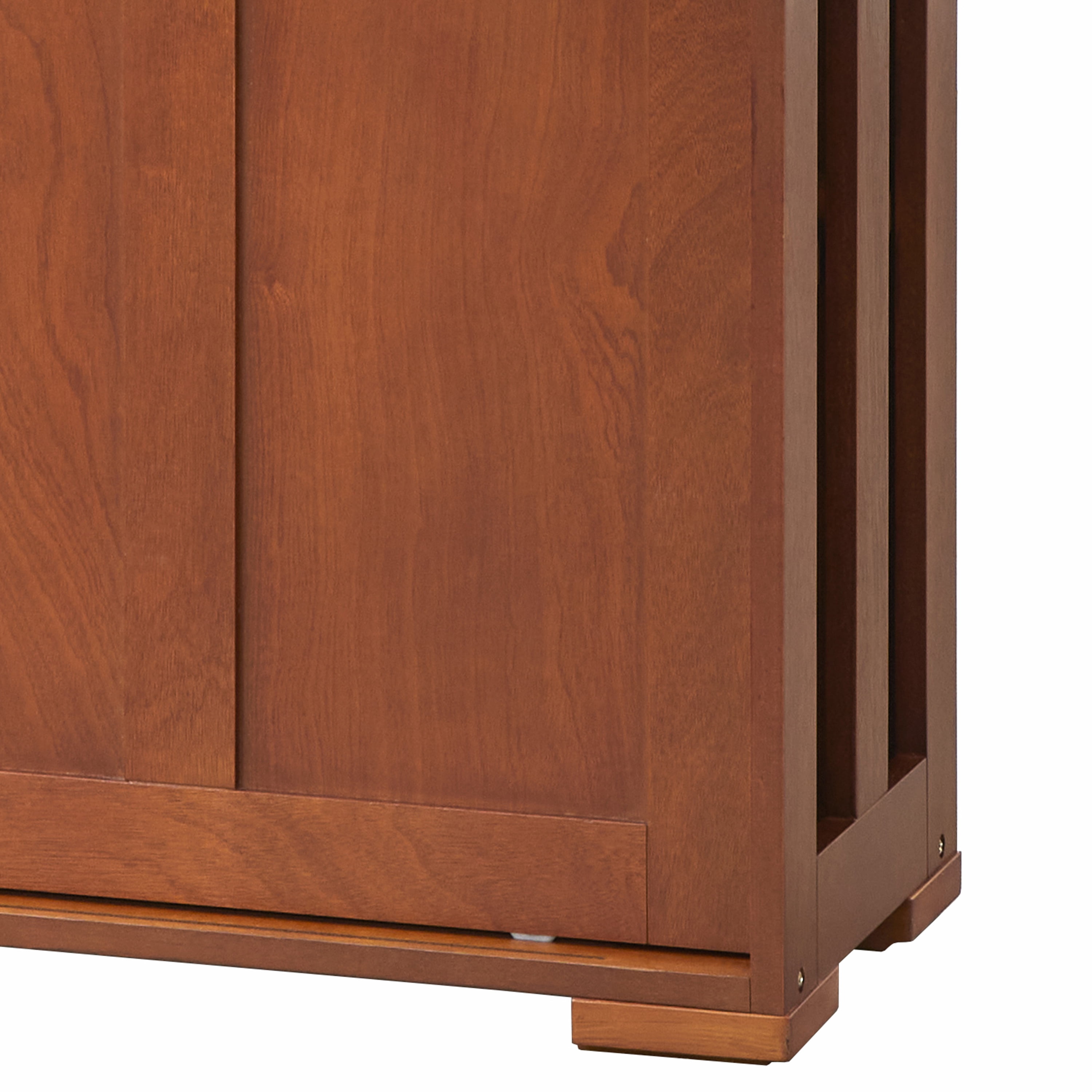 The Pacific Stackable Storage Cabinet by TMS is the optimal solution for all your storage needs. Designed with function in mind, this stackable storage system allows to you stack as many as 3 units together maximizing vertical space and making use of tight spaces. Versatility makes this cabinet ideal for your kitchen, living area, dining room, family room, or even your home office. Ideal for storing dishware, cookware, linens, books, knickknacks, office supplies and more. Clean line design accentuates the open plank sides and two large sliding panel doors with an adjustable shelf, providing essential space for all your living necessities. Constructed of engineered wood in a rich walnut finish, the smart design of this cabinet allows you to use alone or stack additional cabinets on top for a taller display cupboard. Assembly required.
