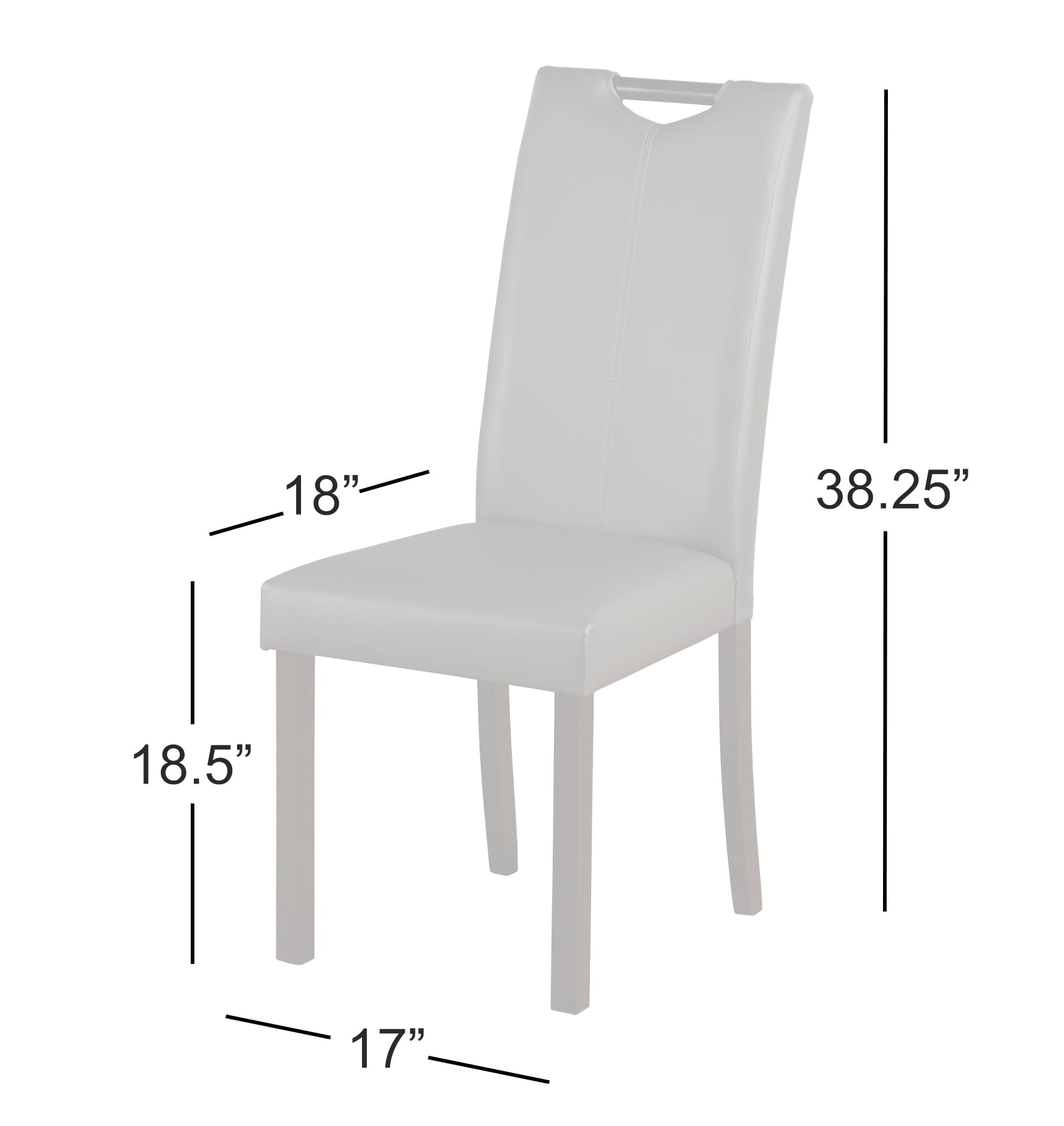 Dimensions: 22.5W x 16.5D x 38.25H in.; Seat height: 18.5 in. Solid rubberwood construction Wenge finish Faux leather upholstery in choice of color Slot-style handles along chair tops For indoor use only