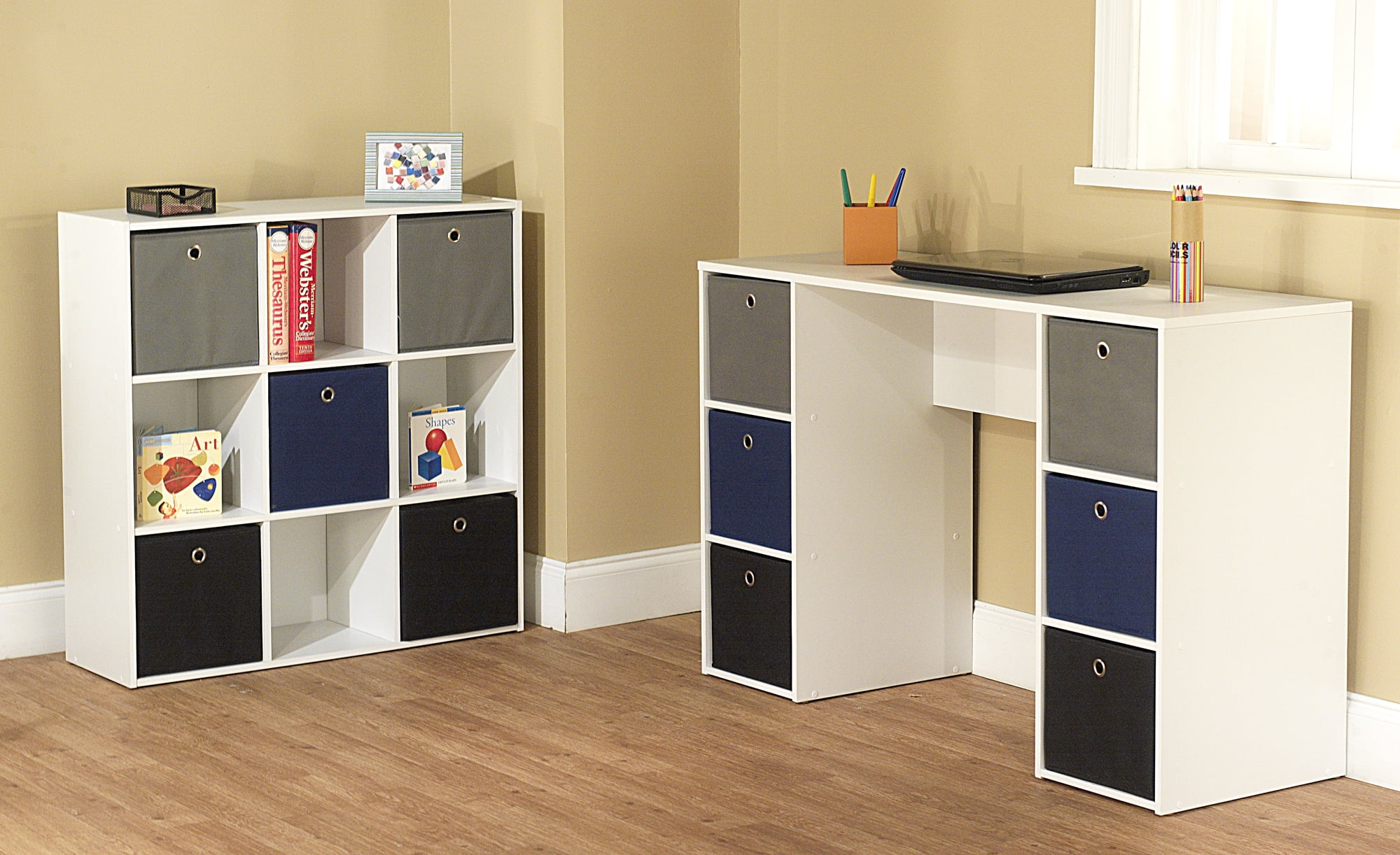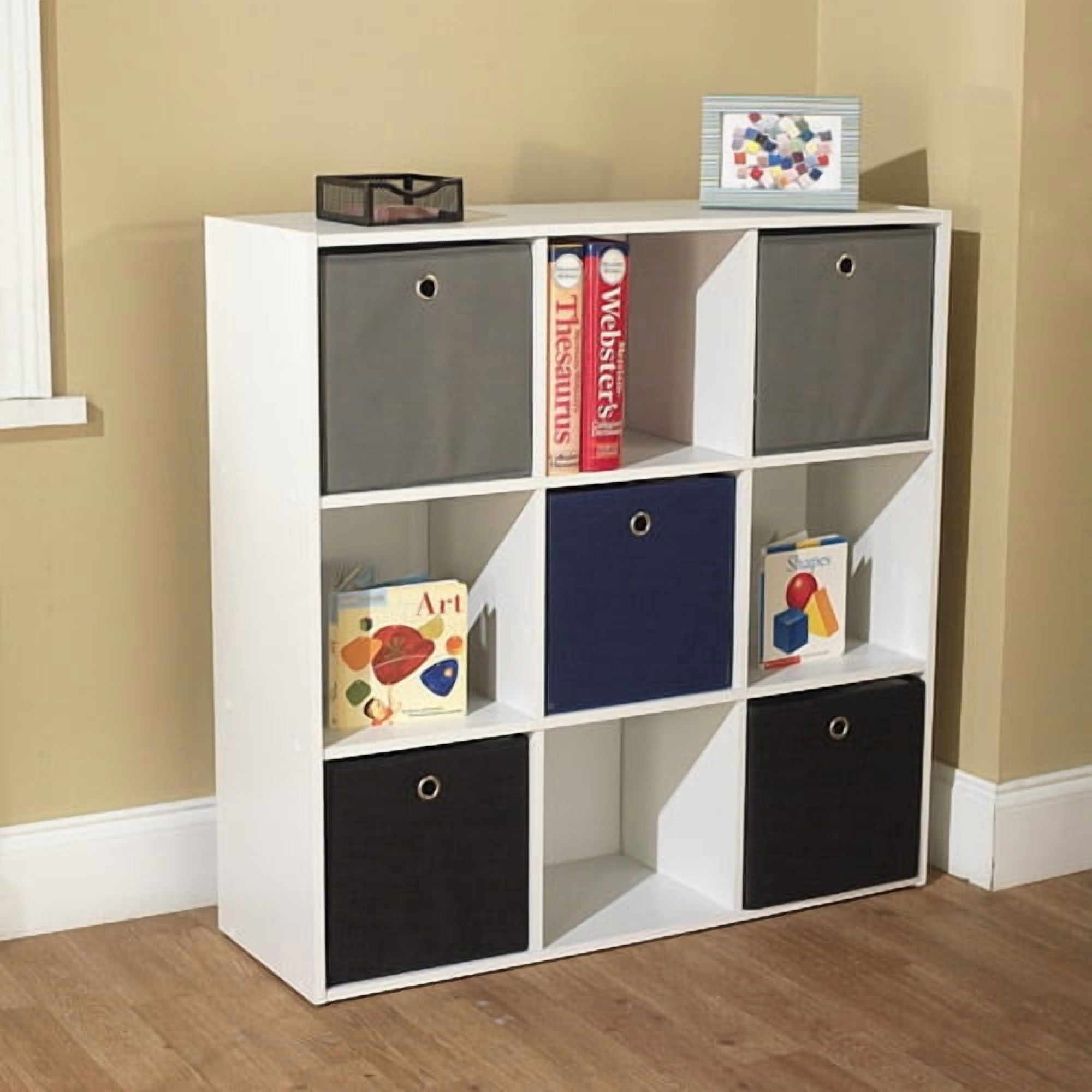 TMS Utility Kids Wood Bookshelf with 5 Foldable Fabric Storage Bins, Multi-color