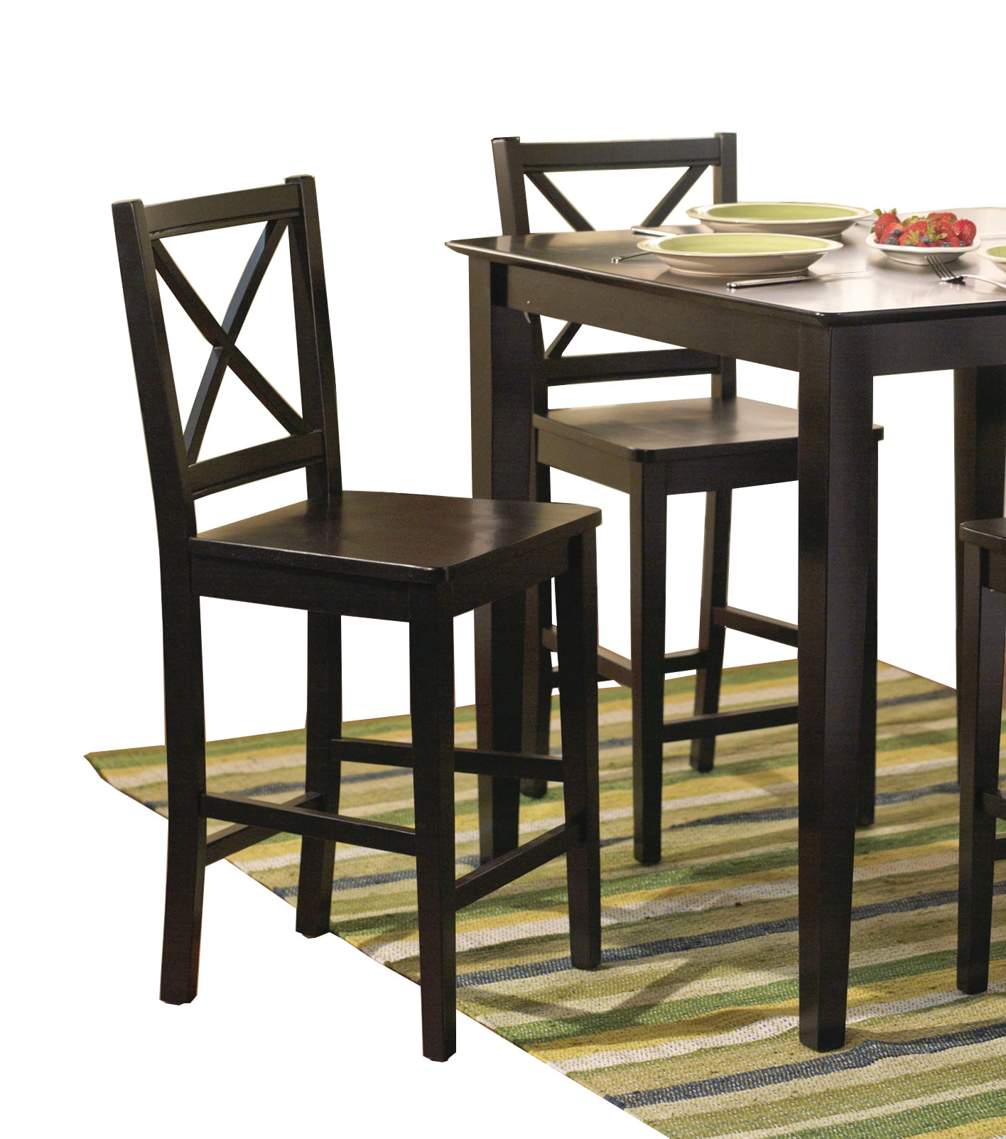 Versatile, rubber wood cross back stool in black finish Black counter stools measure 24″ tall Set of 2 Classic style Sturdy horizontal support bars at base Overall stool dimensions : 19.37 inches depth x 17.72 inches wide x 41 inches high Some assembly required Ships in one box