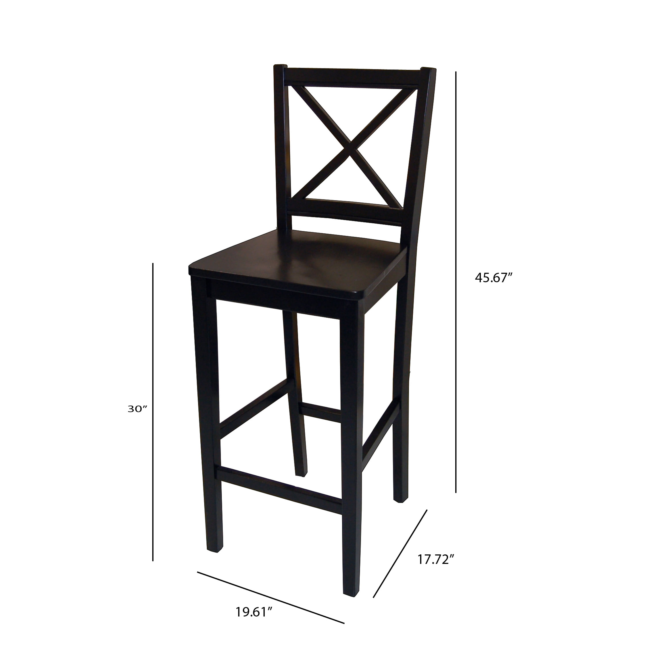 Transitional style Includes set of 2 stools Solid rubber wood construction Multiple finishes available Perfect for the bar or extra seating Dimensions: 19.61″ W x 17.72″ D x 45.67″ H Some assembly required Ships in 1 box For indoor use only