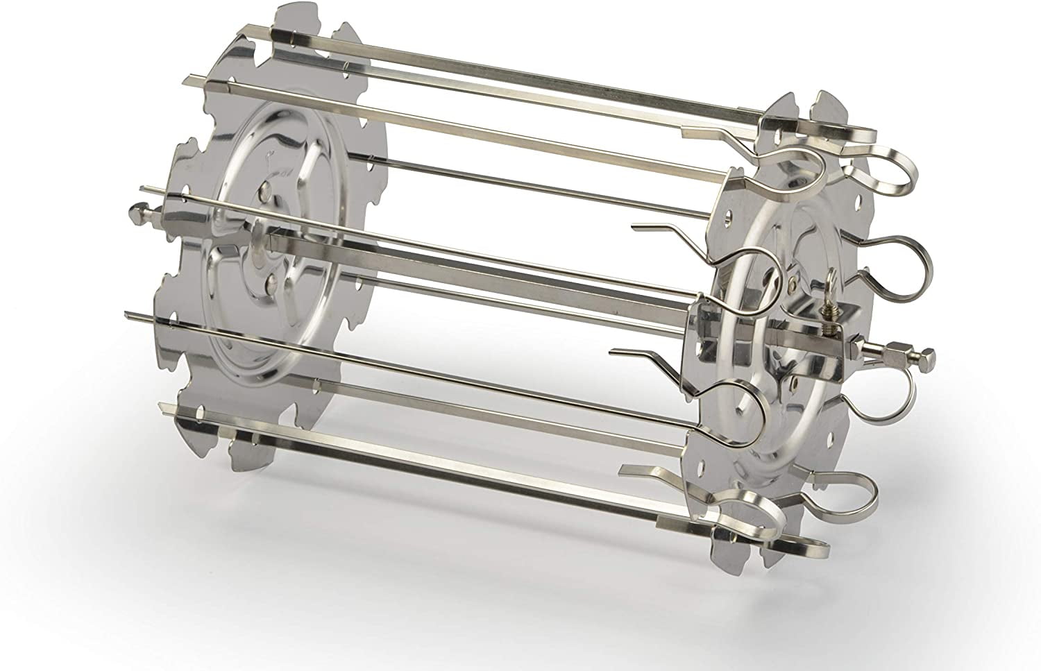 The Toastmaster 11.6 qt air fryer is a healthier way to fry without using oil. The rapid air technology circulates the heat to lightly cook fries, meats, vegetables, and other snacks. The air fryer features an integrated safety mechanism to automatically switch off when the door is opened. Adjustable temperature controls allow a variety of foods to be prepared in a fraction of the time. The air fryer includes 8 preset cooking temperature/time options, so preparing meals is no longer a guessing game. Use the included accessories to air fry or dehydrate foods on the 3 crisping racks, roast a whole chicken on the rotisserie spit, or make shrimp kabobs with the metal skewers. Then, without the use of oil, clean-up is much simpler than cleaning a traditional fryer, simply remove the drip tray and wipe the unit clean.