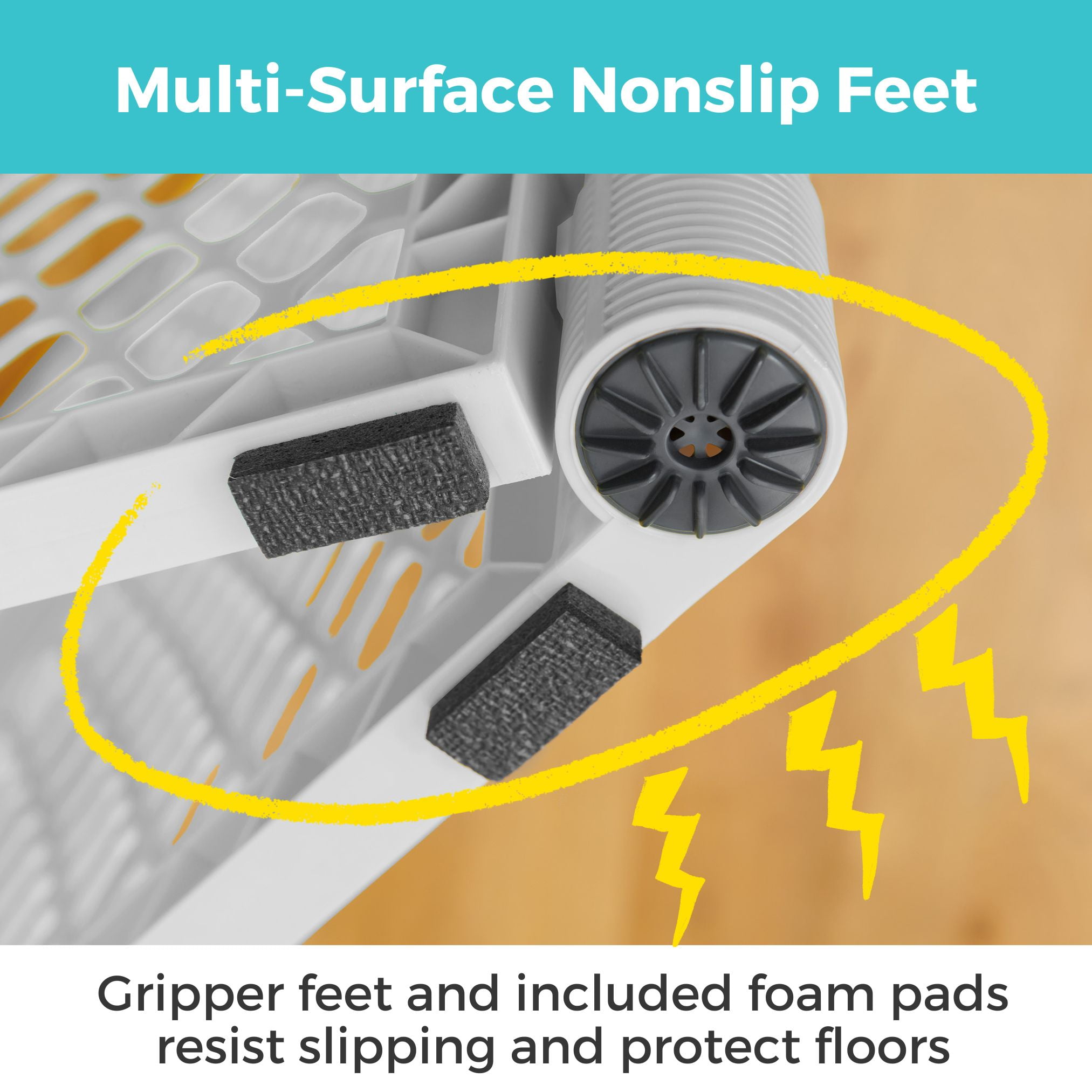 6-panel baby playyard Freestanding play yard designed to be set up anywhere, inside or outside Features six pre-connected, interlocking panels for easy setup Folds up for easy travel No hardware or tools required Light gray color stylishly blends into home interior design 26 inches tall and encloses up to 18.5 square feet of space Intended for children 6-24 months JPMA Certified and ASTM Certified