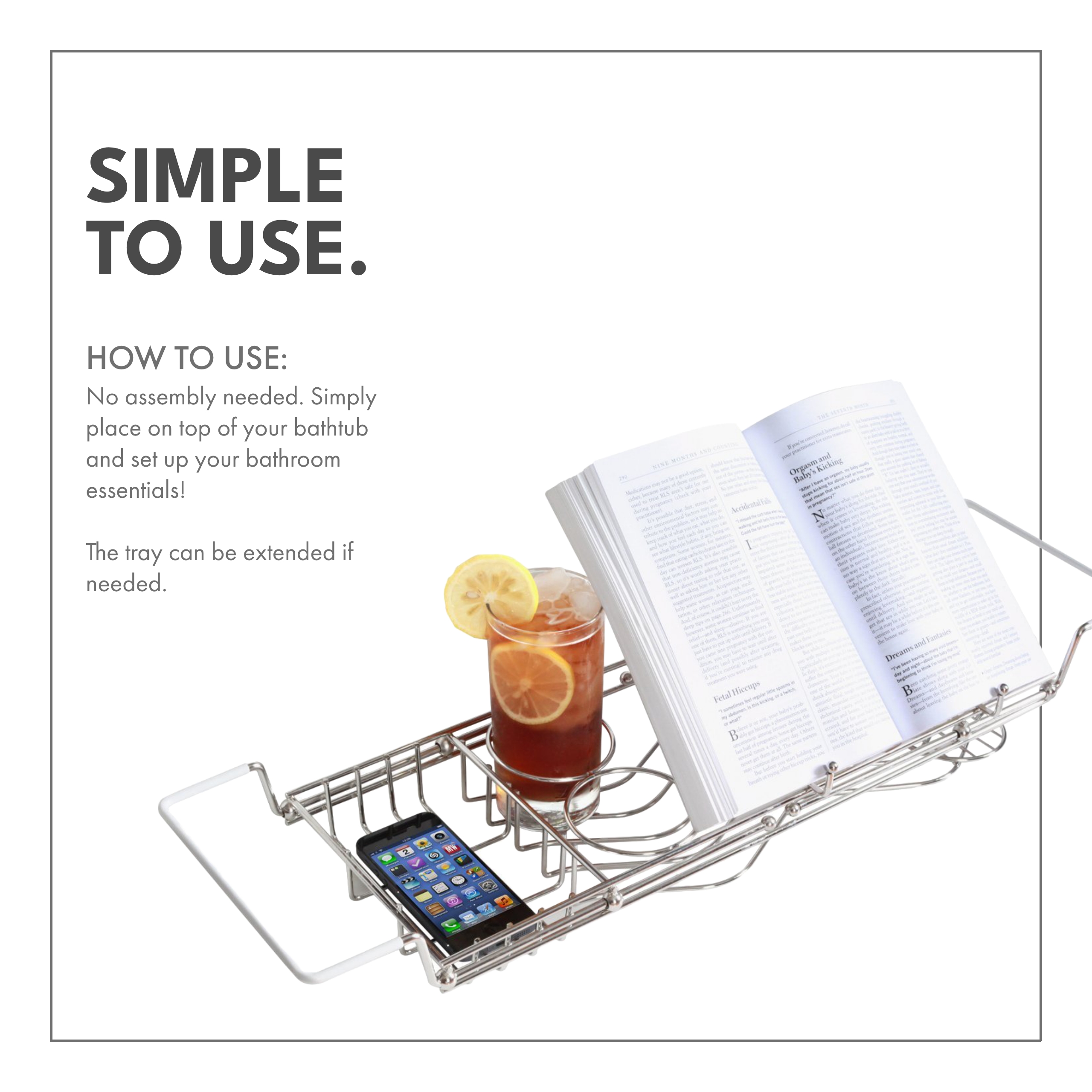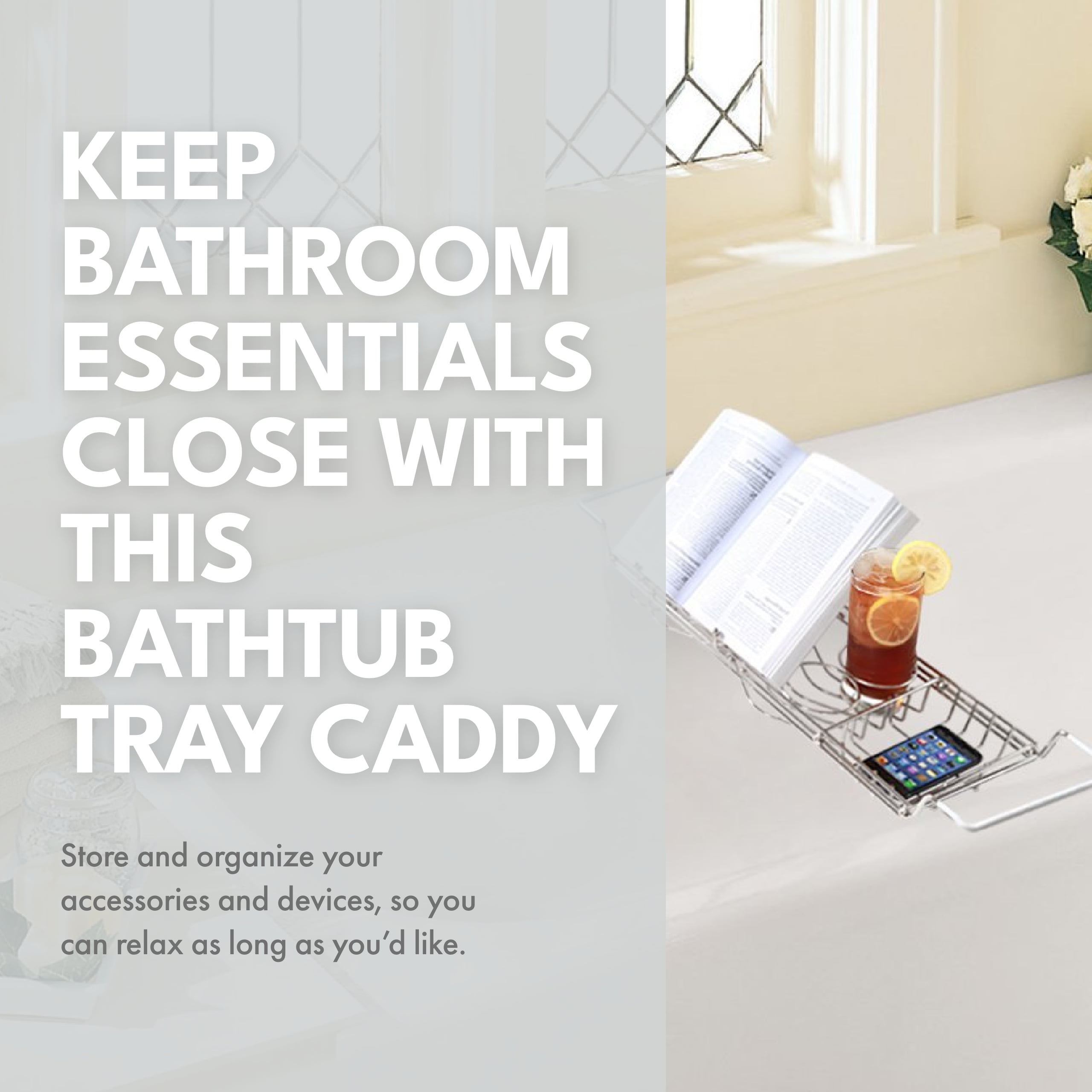 Luxurious Bathtub Shelf: Keep all your bathroom essentials close by with our bathtub tray caddy; it’s an easy way to make your bath a more luxurious experience Bathtub Table Tray: This bathtub caddy has multiple compartments to store and organize your accessories and devices, so you can relax as long as you’d like Expandable Bathtub Tray: This luxury bath caddy tray is 26.5″ when closed and 38″ when open; the arms are coated in a rubber material to keep the caddy from sliding Bathtub Book Holder: Enjoy your favorite book or tablet without worrying about dropping it in the tub with this rust-resistant, stainless steel bathtub tray About Us: We provide the best products for your home and bath, and customer service is our first priority; please reach out to us with any questions or concerns