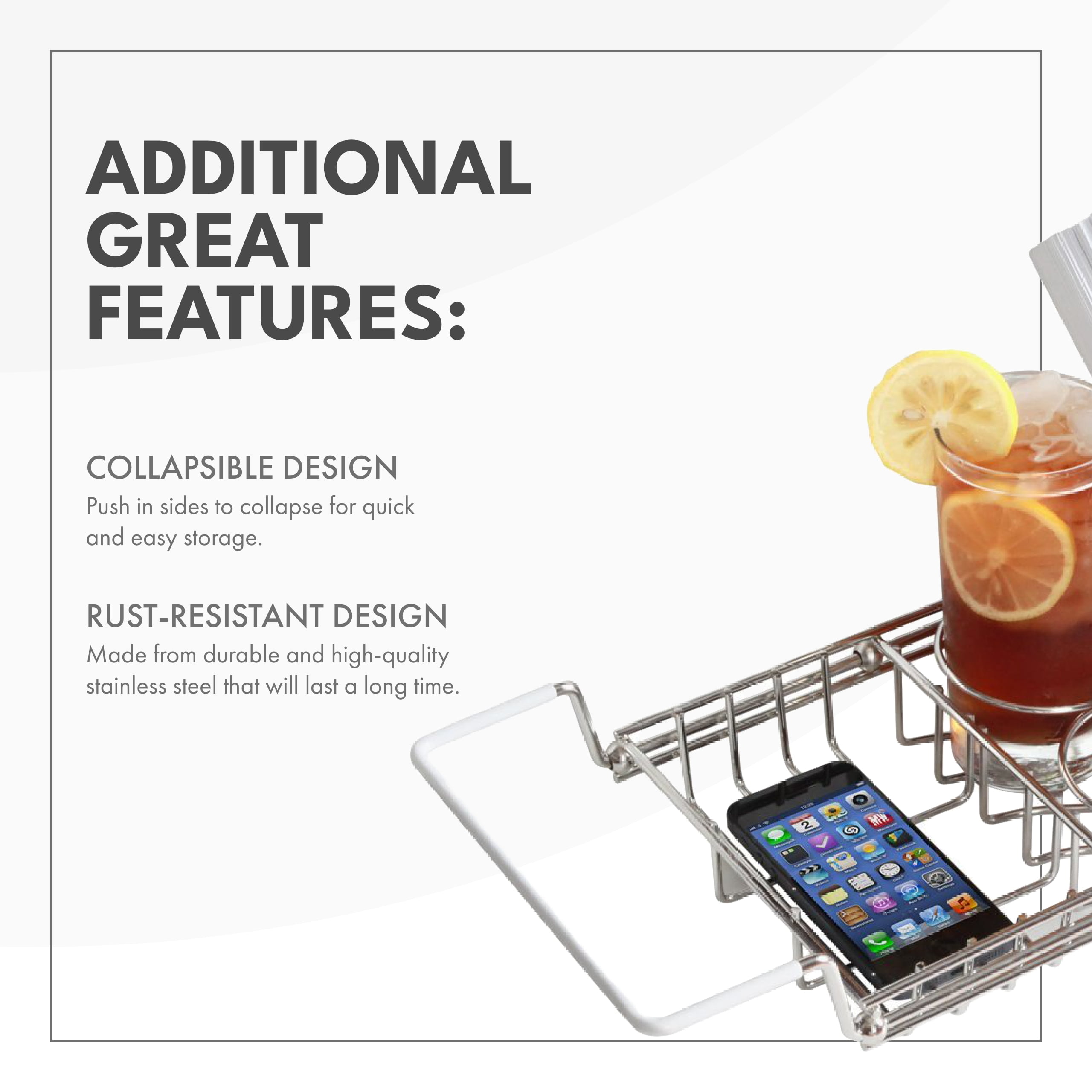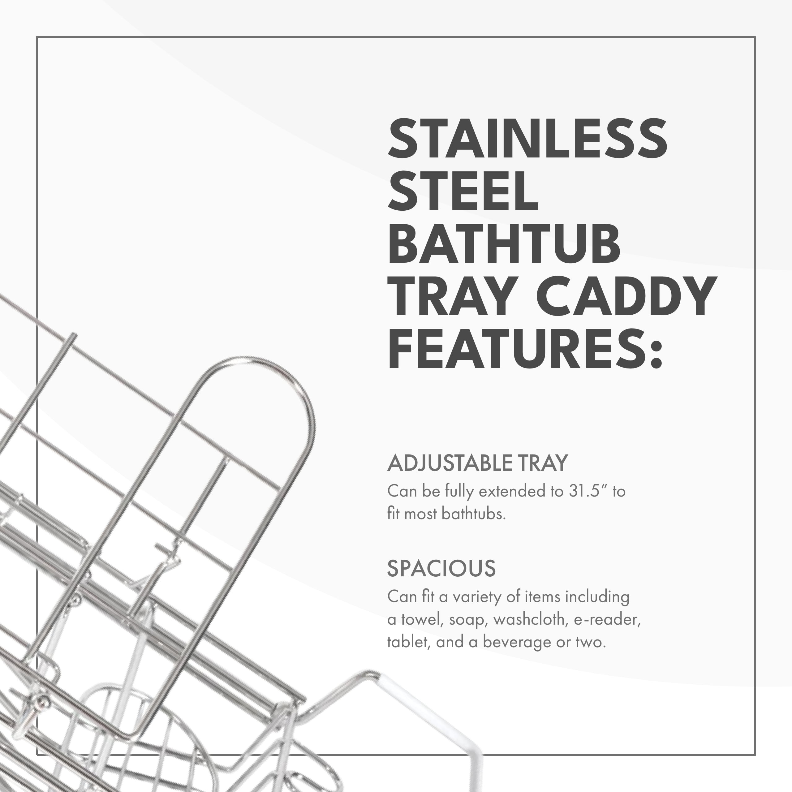 ToiletTree Products Stainless Steel Bath Caddy – Rust-Resistant Bathtub Shelf to Hold Books, Drinks, Phones, and Tablets – Luxury Bath Caddy Tray for Bathroom Accessories