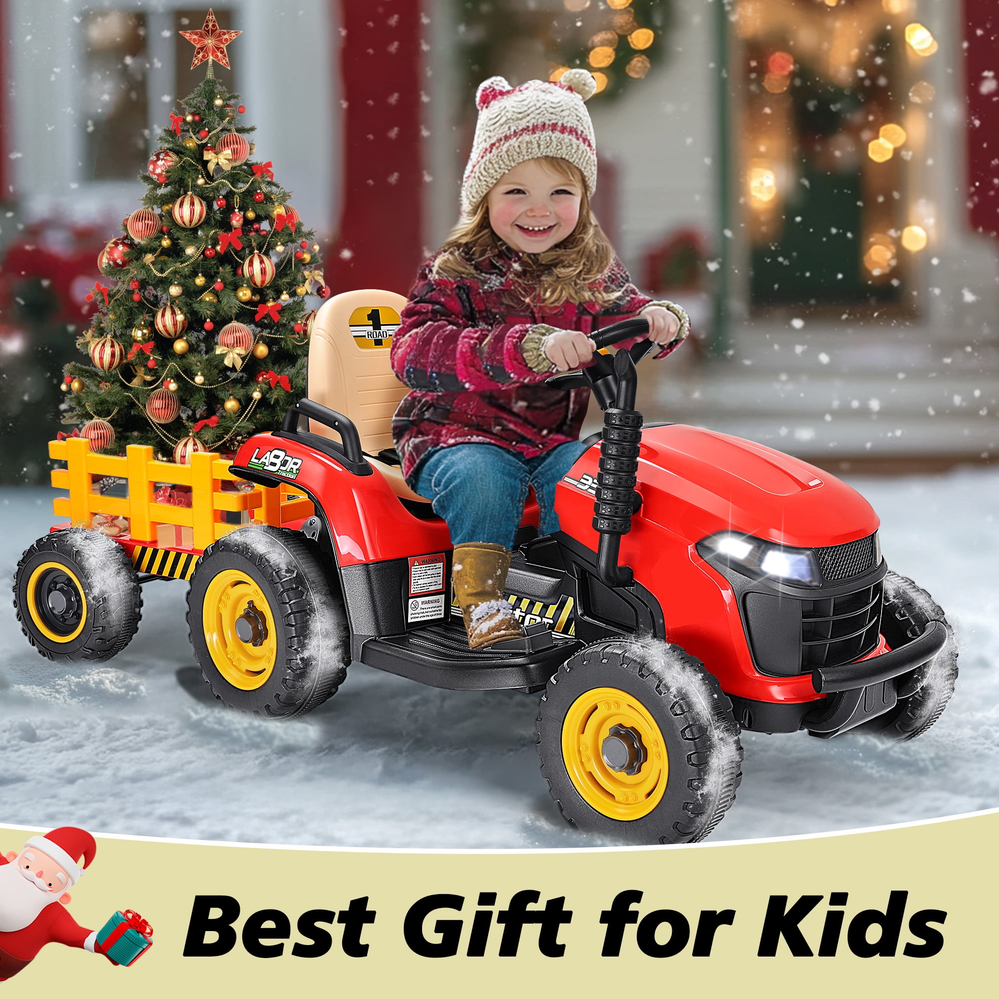 TOKTOO 12V Powered Ride on Tractor w/ Tippable Trailer, Remote Control, MP3, Bluetooth, LED light, Electric Car for Kids-Red
