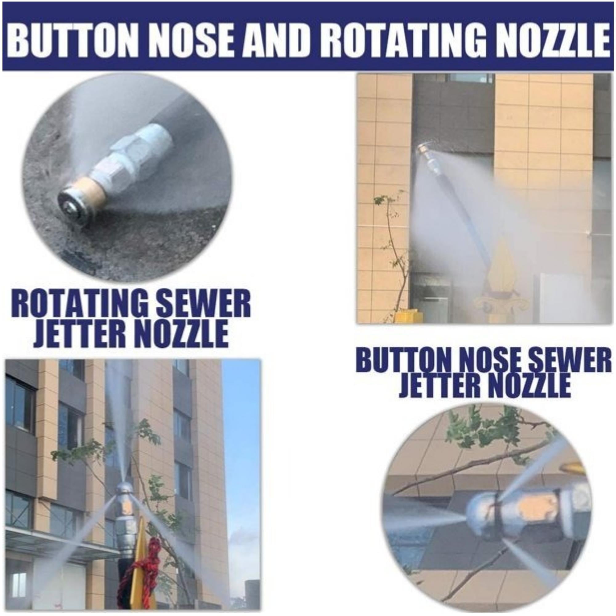 tonchean 100 ft Sewer Jetter Kit, 5800 PSI Drain Cleaner Hose for Pressure Washer 1/4″ NPT, with Button Nose and Rotating Nozzle
