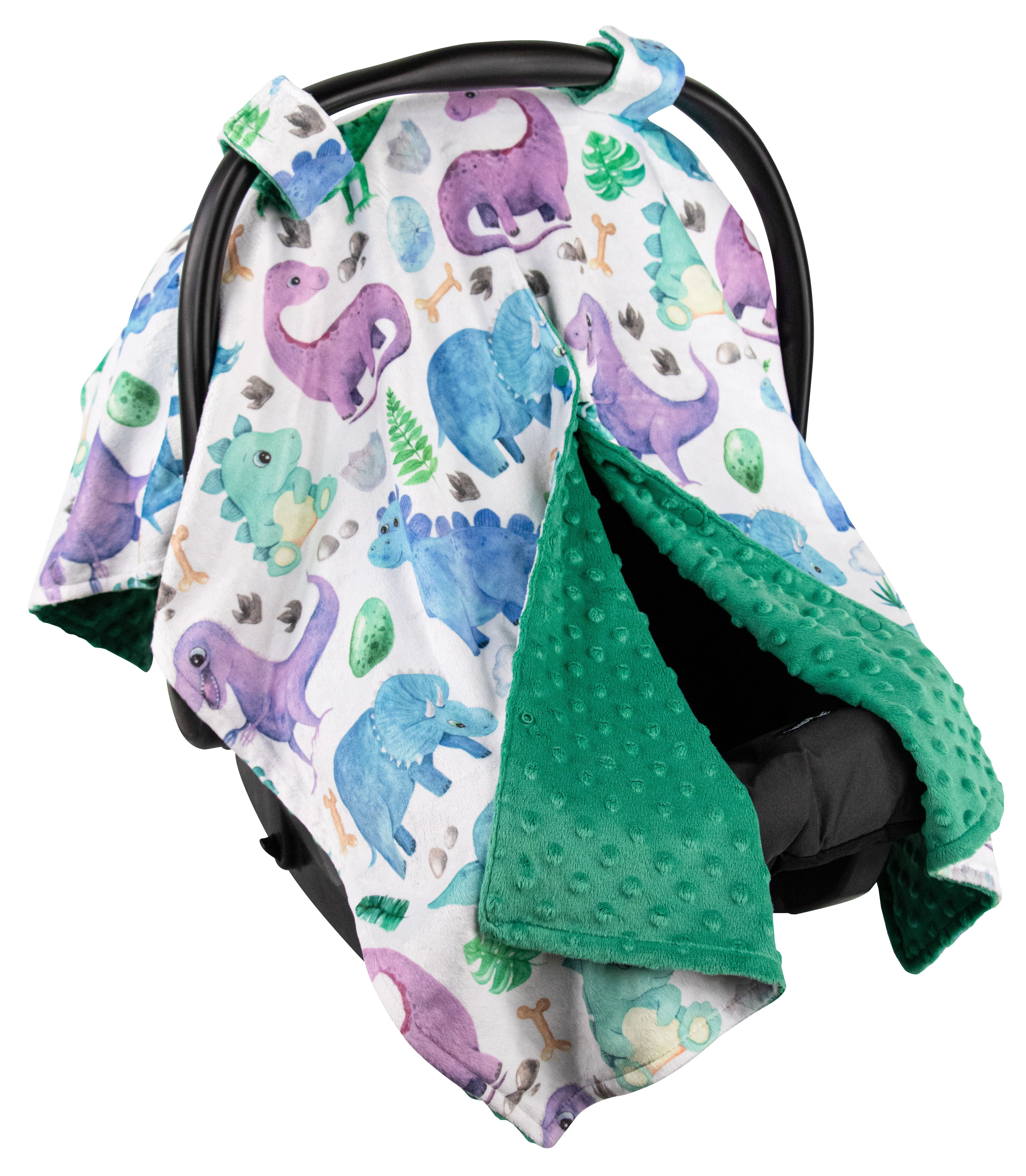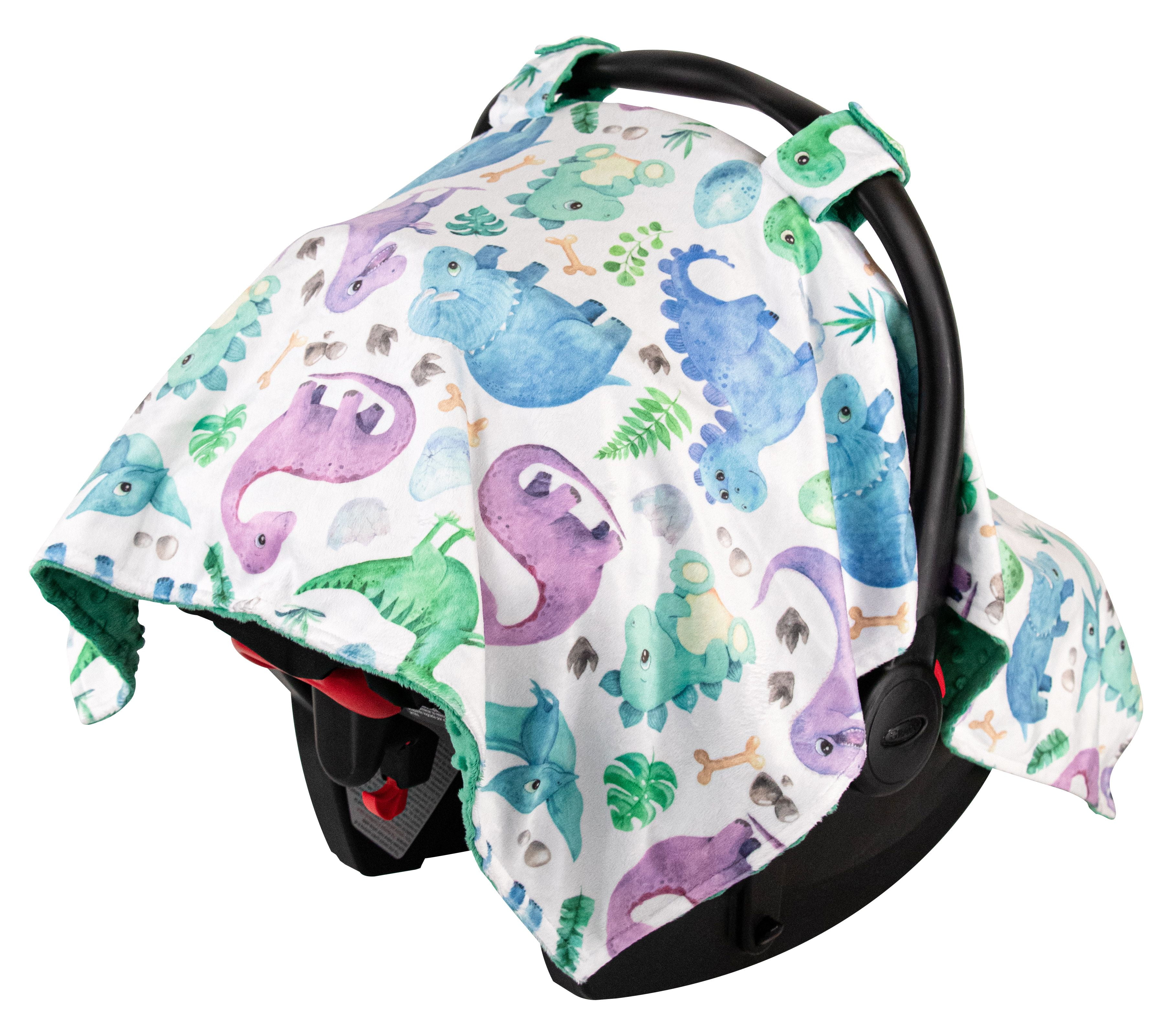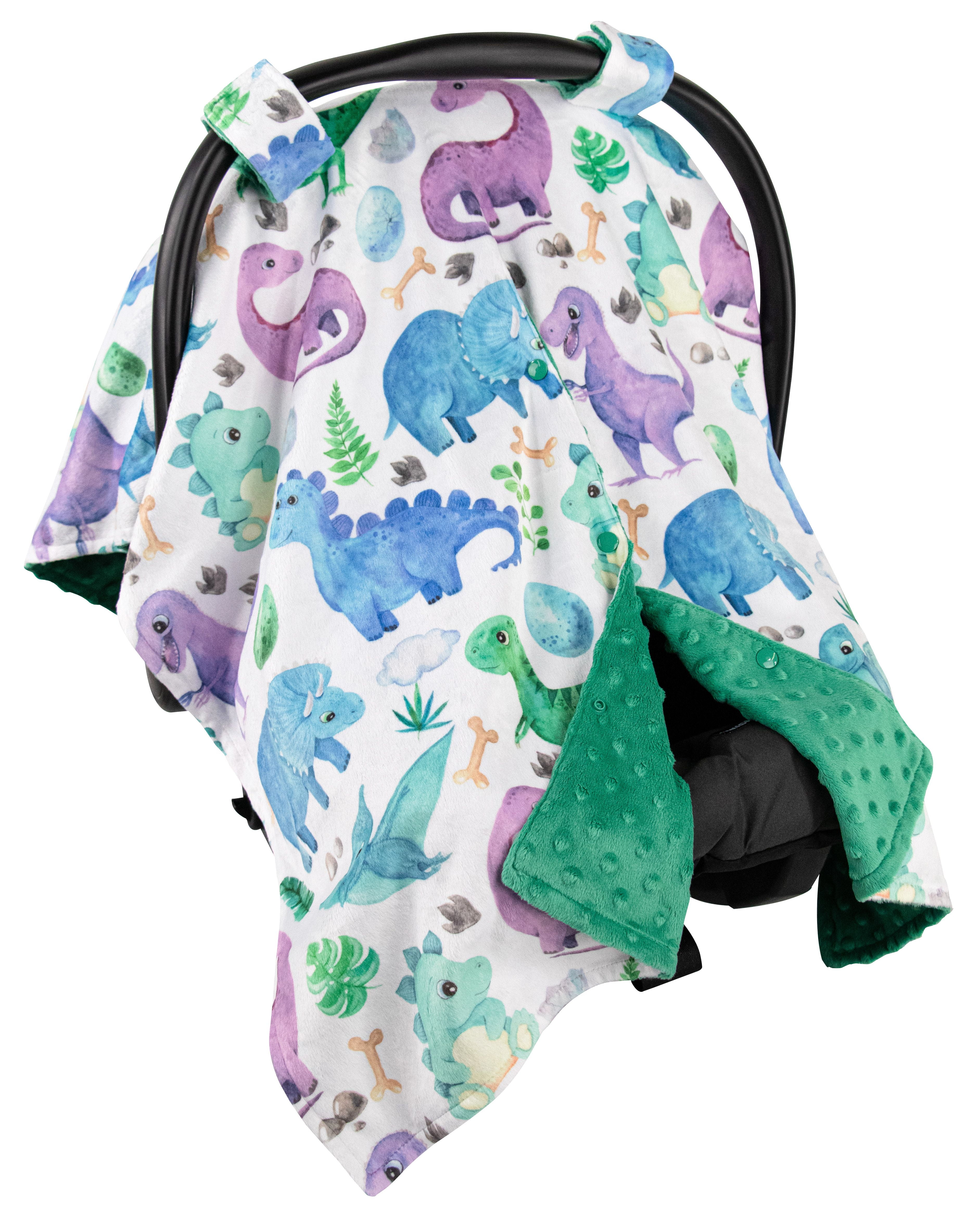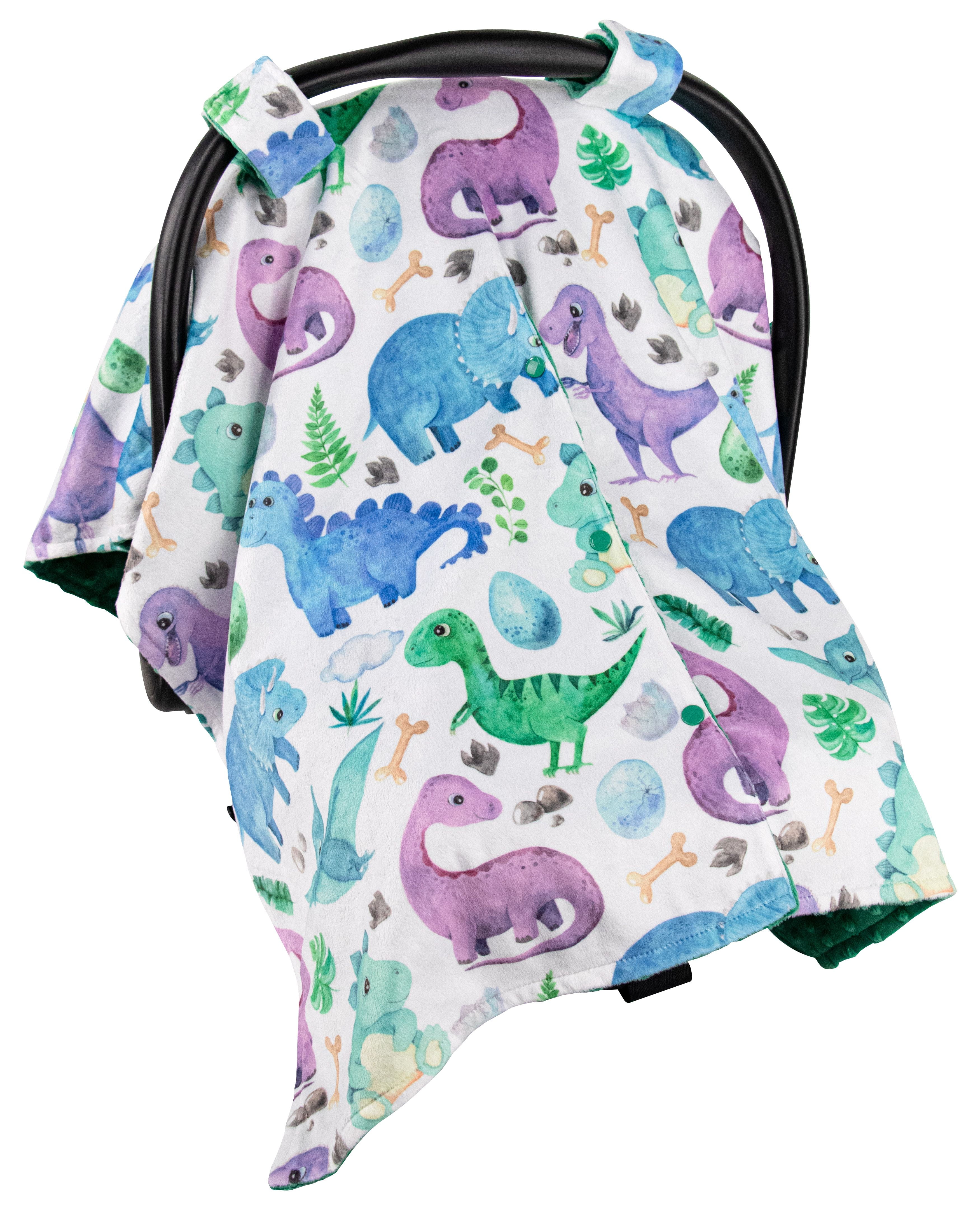 Top Tots Deluxe Minky Car Seat Canopy for Infant, Blue Toned Dinosaur, Unisex