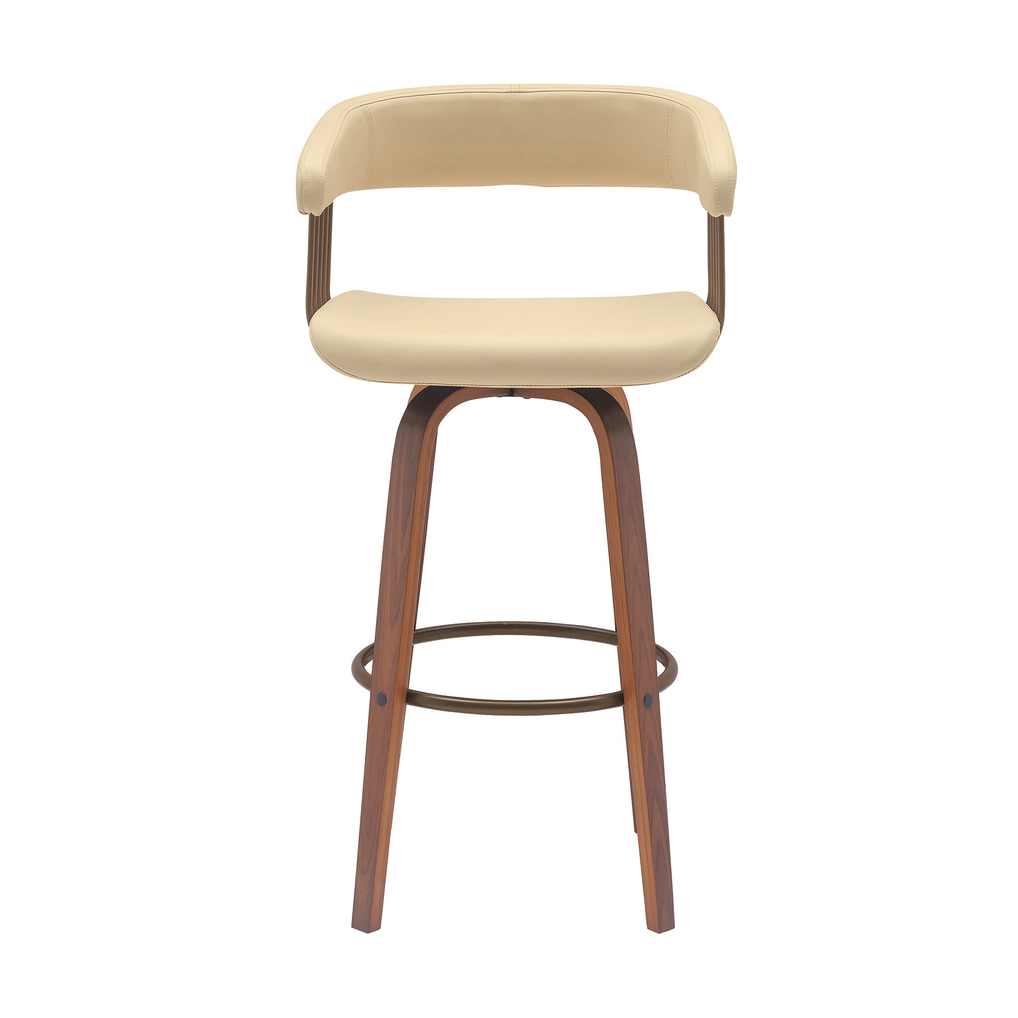 Topanga 30.5″ Swivel Walnut Wood Bar Stool in Cream Faux Leather with Golden Bronze Metal