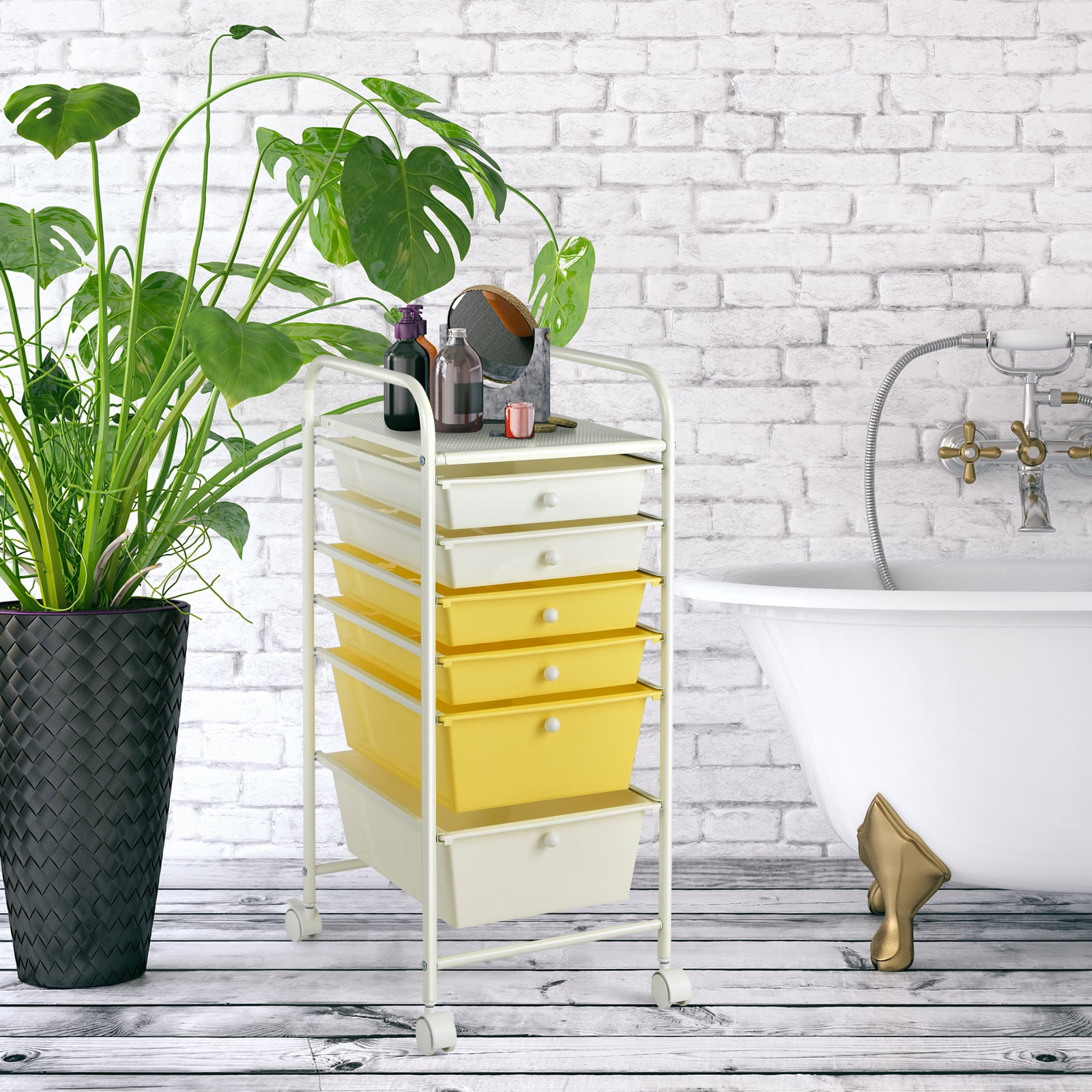 Topbuy 6 Drawer Scrapbook Paper Organizer Rolling Storage Cart for Office School Yellow