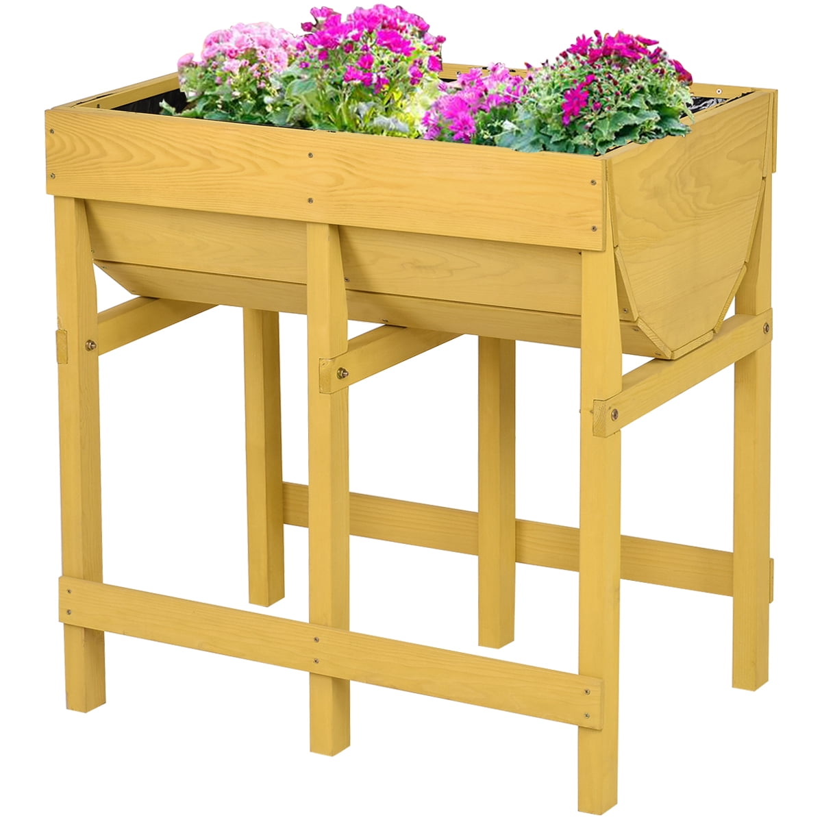 Patiojoy Raised Wooden Planter Free Standing Planting Container Vegetable Flower Bed