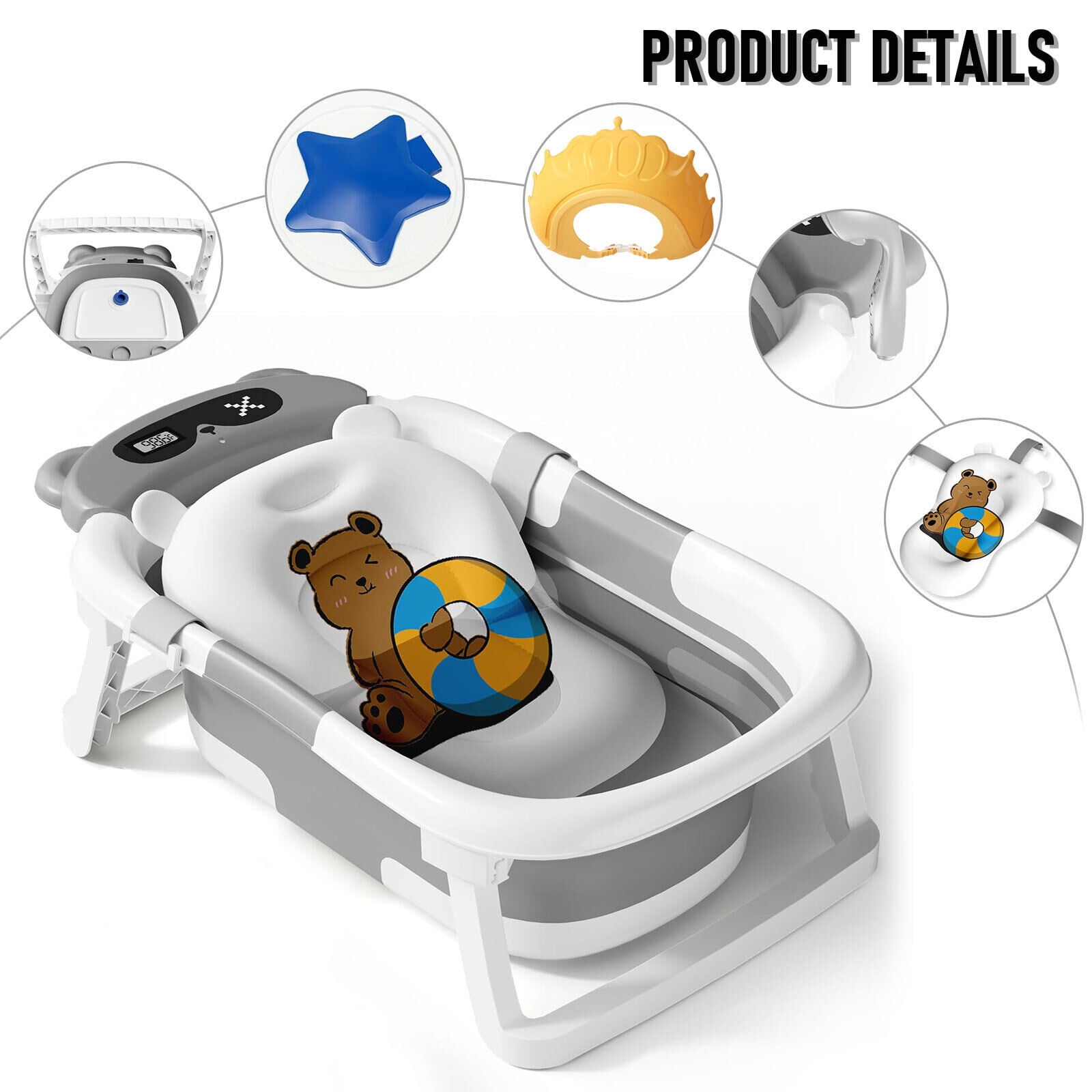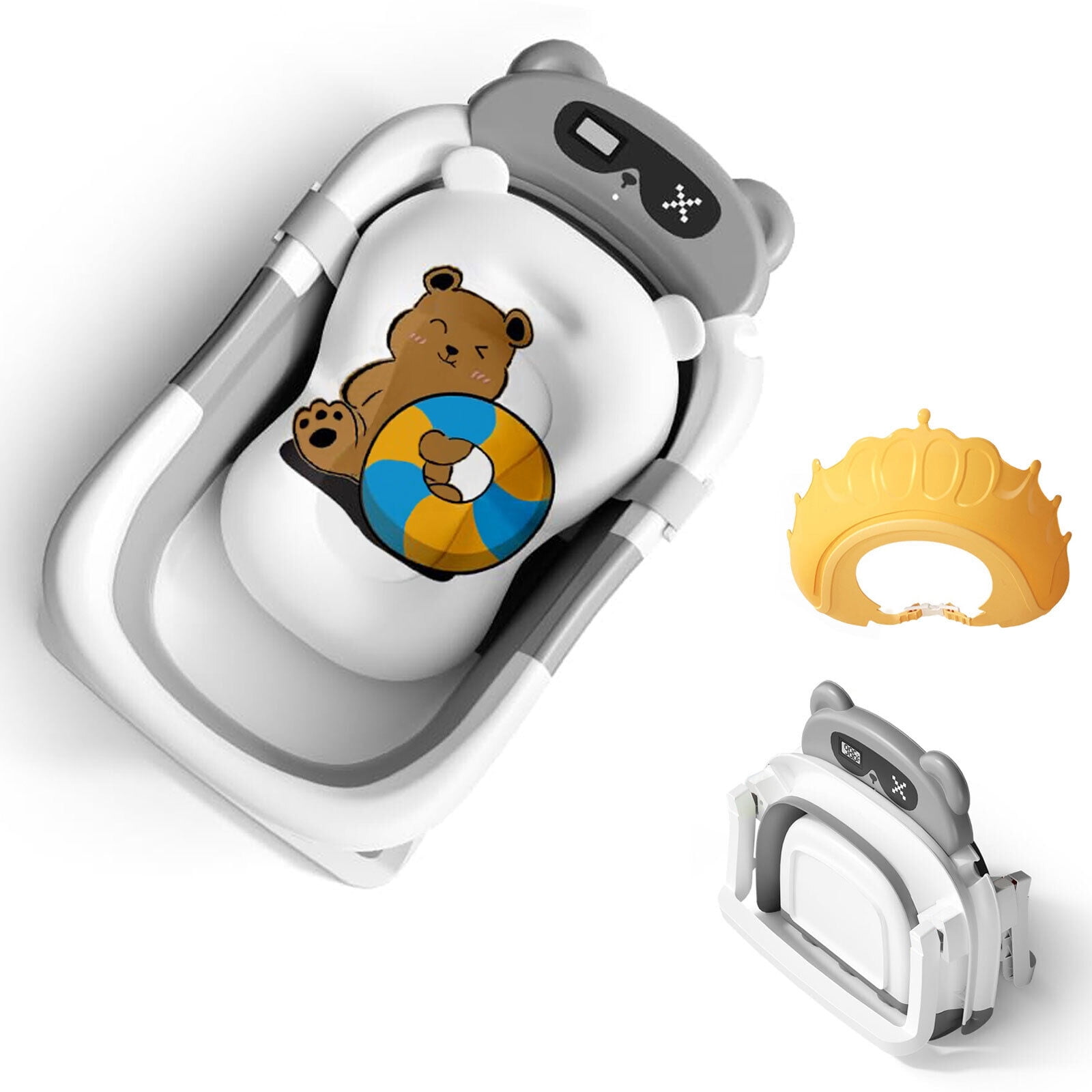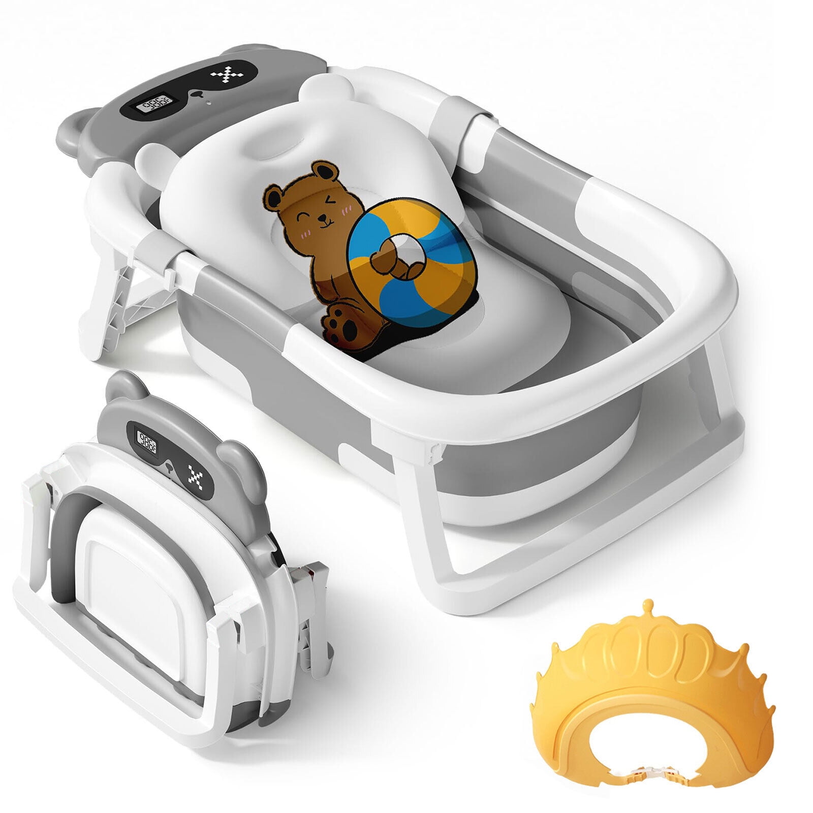 TOPCHANCES Foldable Baby Bathtub for Infants to Toddler, Portable Travel Bathtub with Thermometer & Bath Cushion & Bath Cap, Baby Bathtub for Newborn 0-12 Month (Grey)