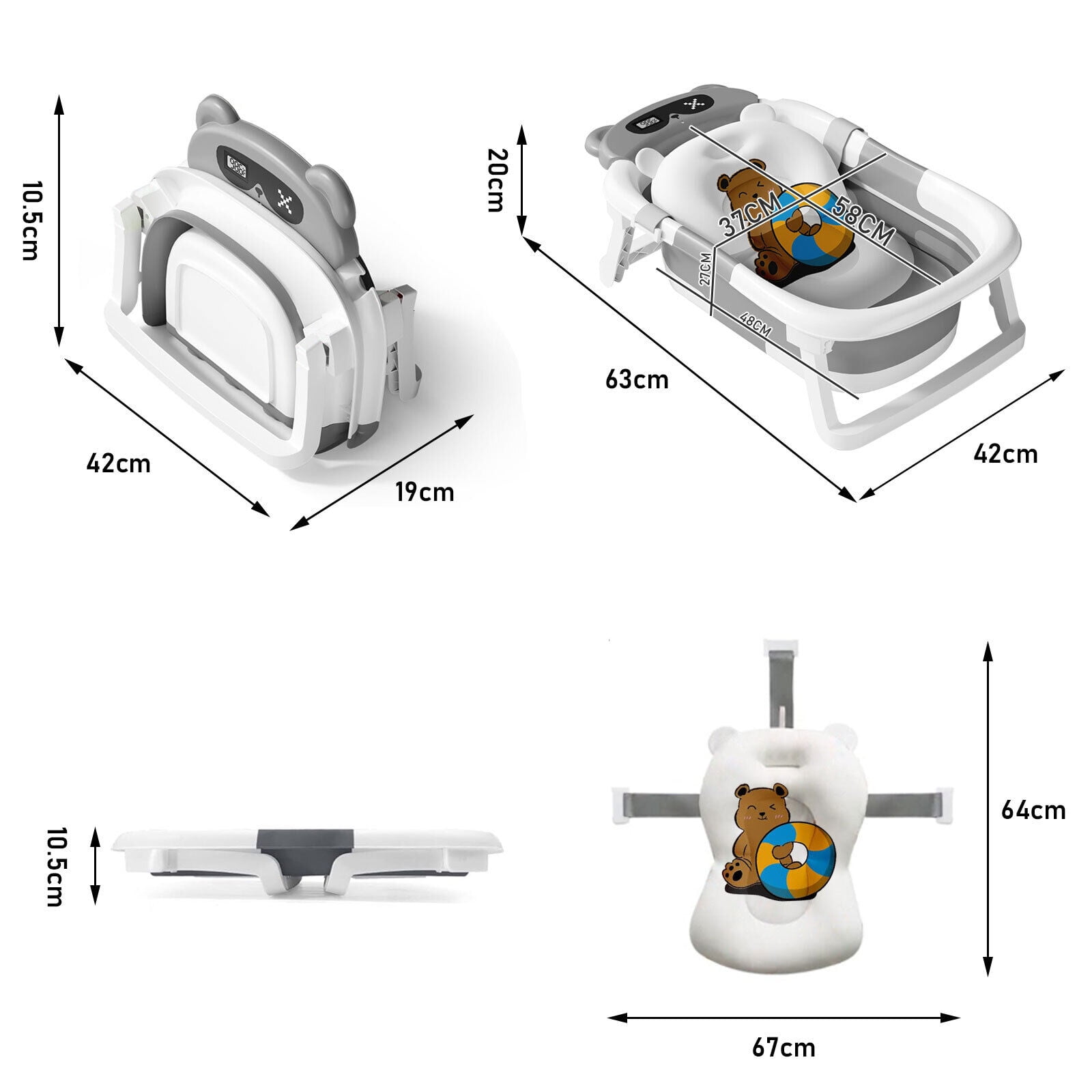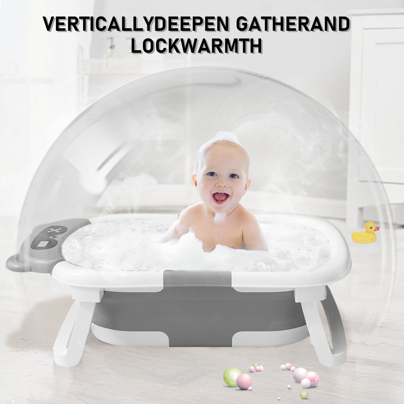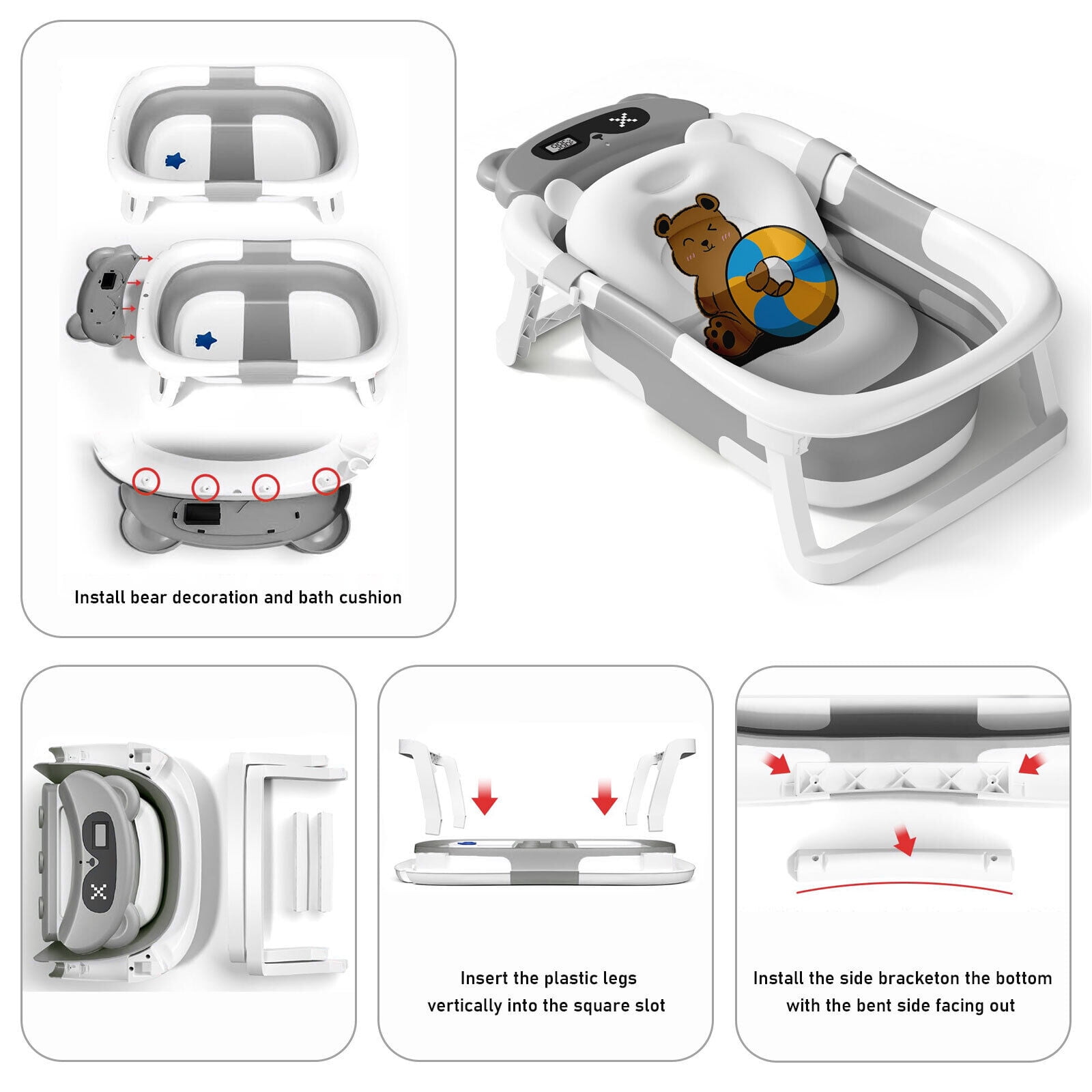 TOPCHANCES Foldable Baby Bathtub for Infants to Toddler, Portable Travel Bathtub with Thermometer & Bath Cushion & Bath Cap, Baby Bathtub for Newborn 0-12 Month (Grey)