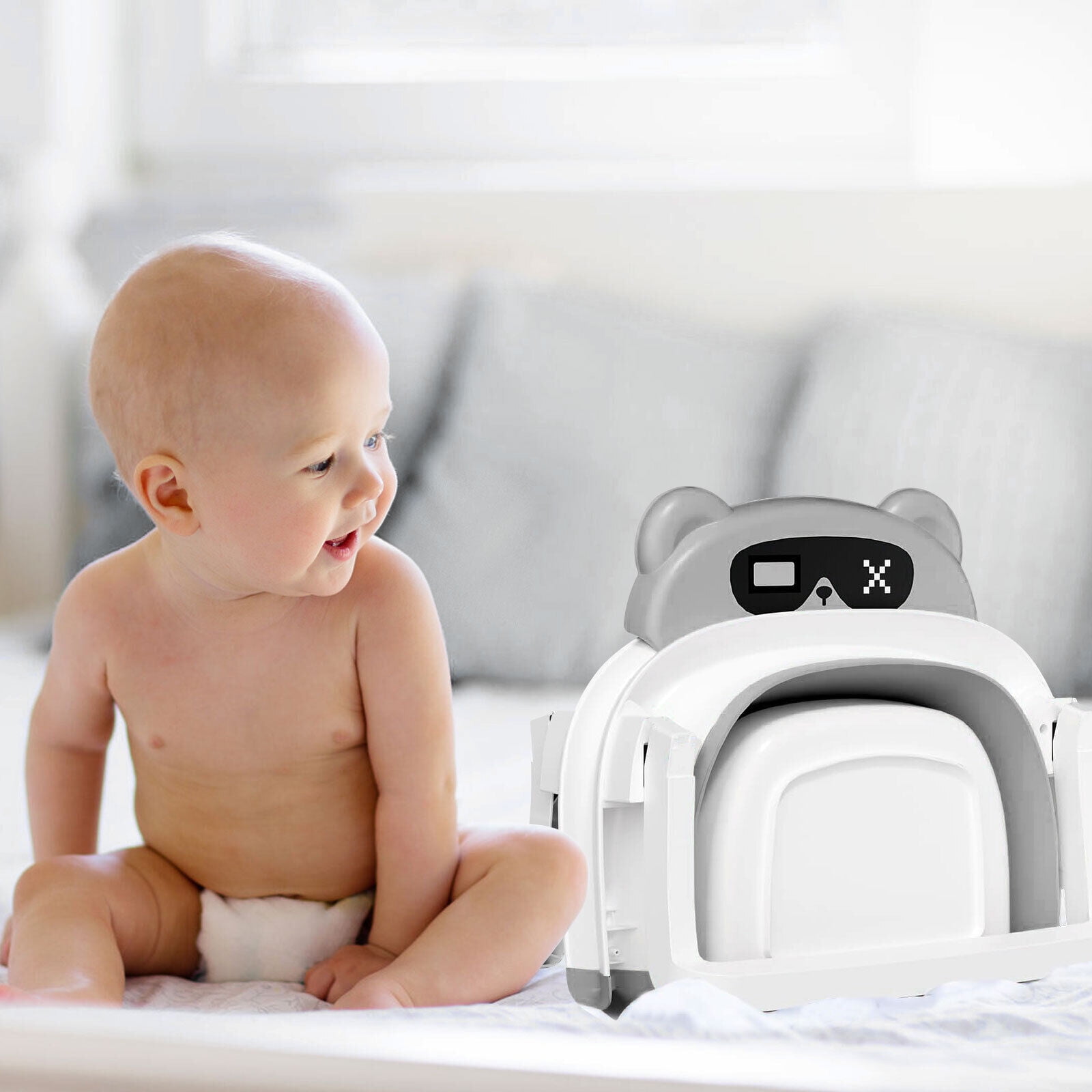 Stable Baby Bathtub: Constructed with PP plastic. Broad support stand with anti-slip rubber pad, the middle part of the tub which made of silicone provide a non-slip surface and better heat-retention. Compact Size: Unfolded size measures about 63 x 42 x 20 centimetres (length x width x height) , easy to set up and manoeuvre, and the perfect size for a baby’s or toddler’s bath time. Bifold Portable Design: This bathtub can be bifolded to minimise taking up storage space, when bifolded, it measures only about 42 x 33 x 19 centimetres, it is convenient to put it in a cabinet or in the car trunk when travelling. Visible Temperature: Baby Bathtub is equipped with a temperature sensor, convenient for parents to adjust the water temperature in time. Built-in blue heat sensitive drain plug which will turn white when the water temperature turn 40 degree, this give parents a visual indication that the temperature needs to be checked for baby bathing, this also make the tub easy to empty without tipping the whole tub over.