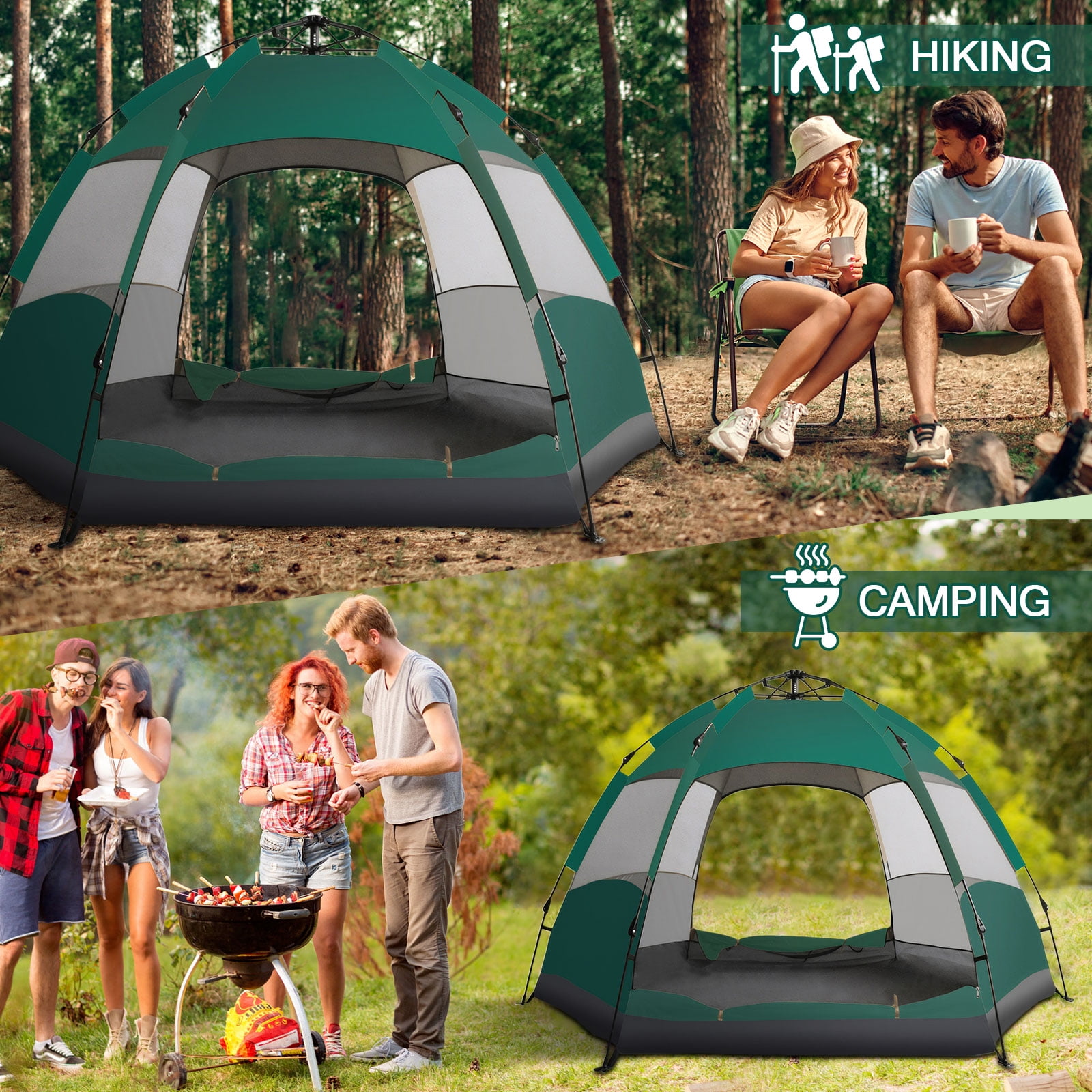 TOPCHANCES Outdoor Camping Tent for 3-4 Person, Automatic Pop Up Instant Tent with Rainproof Cover and Hammock, Portable Waterproof Windproof for Family Hiking, Car Trip – Green #B