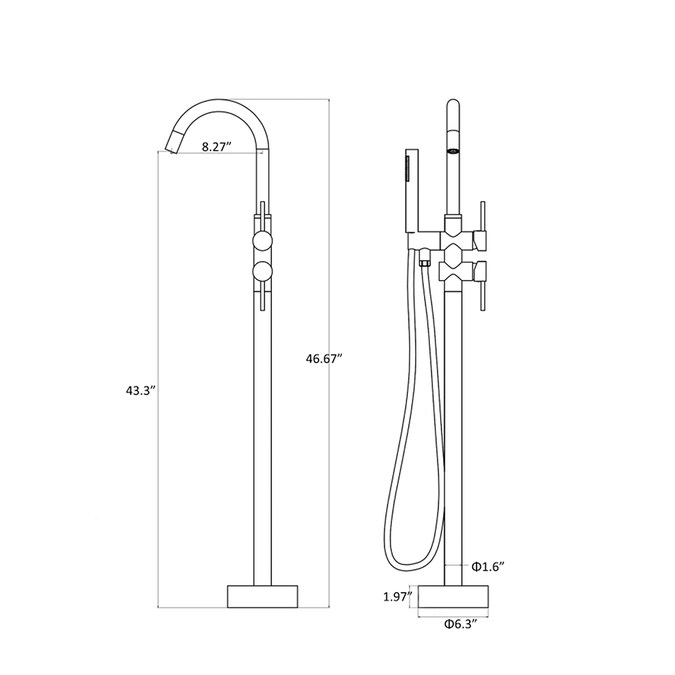 Topcraft freestyle bathtub faucet is constructed from durable brass for reliable long lasting endurance. It is built with the beneficial functionality of an included hand shower with a 59 inch shower hose and max water flow rate of 2.5 GPM. Equipped with an advanced valve,this modern and minimalistic freestanding tub faucet can adjust water temperature to avoid a sudden cold and hot shock.