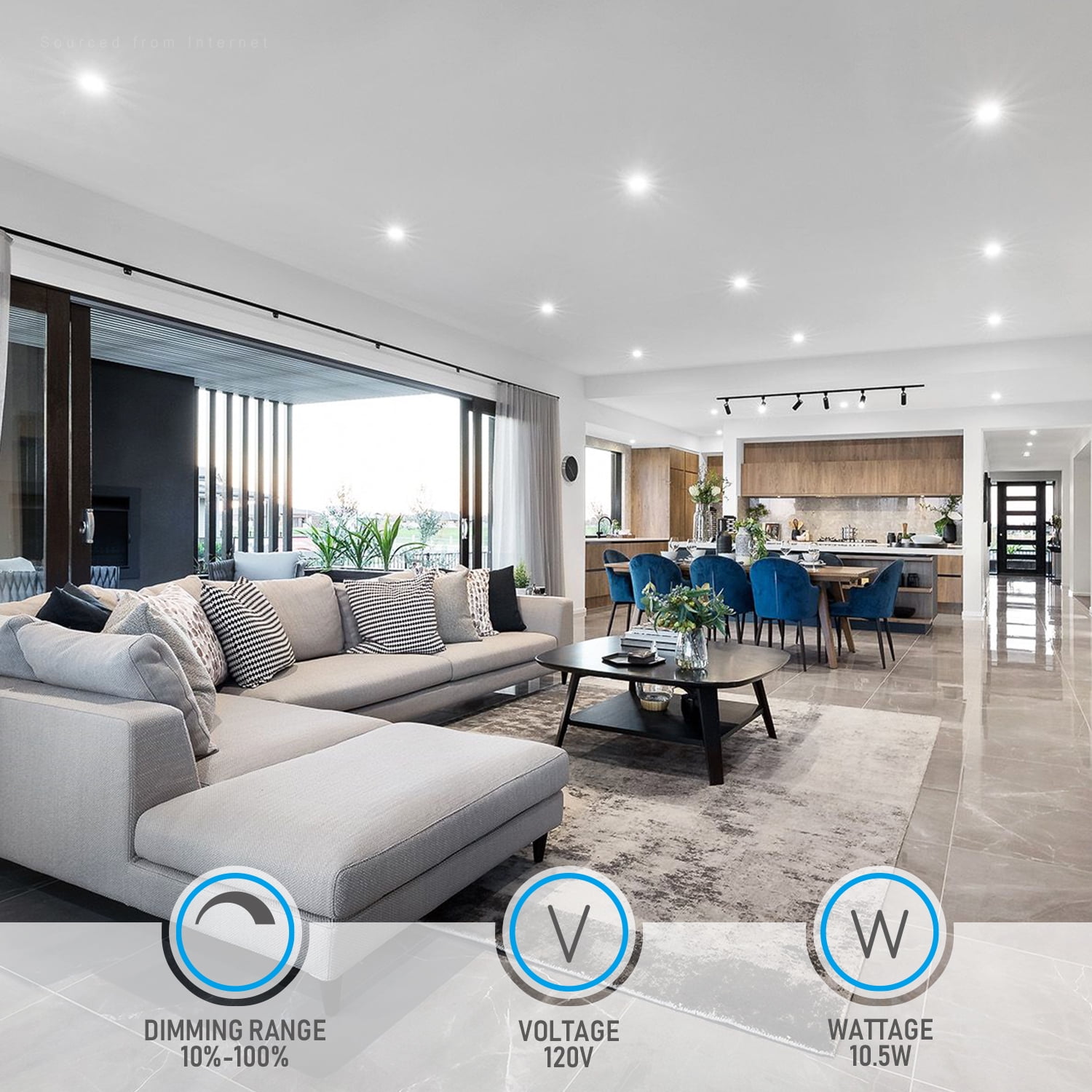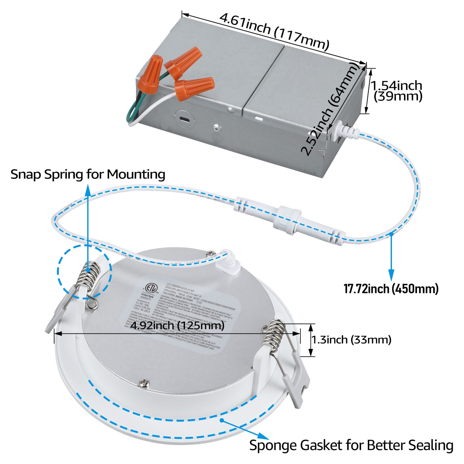 5 CCT adjustable 10-100% dimmable ETL and Energy Star certified flicker-free 3-year warranty