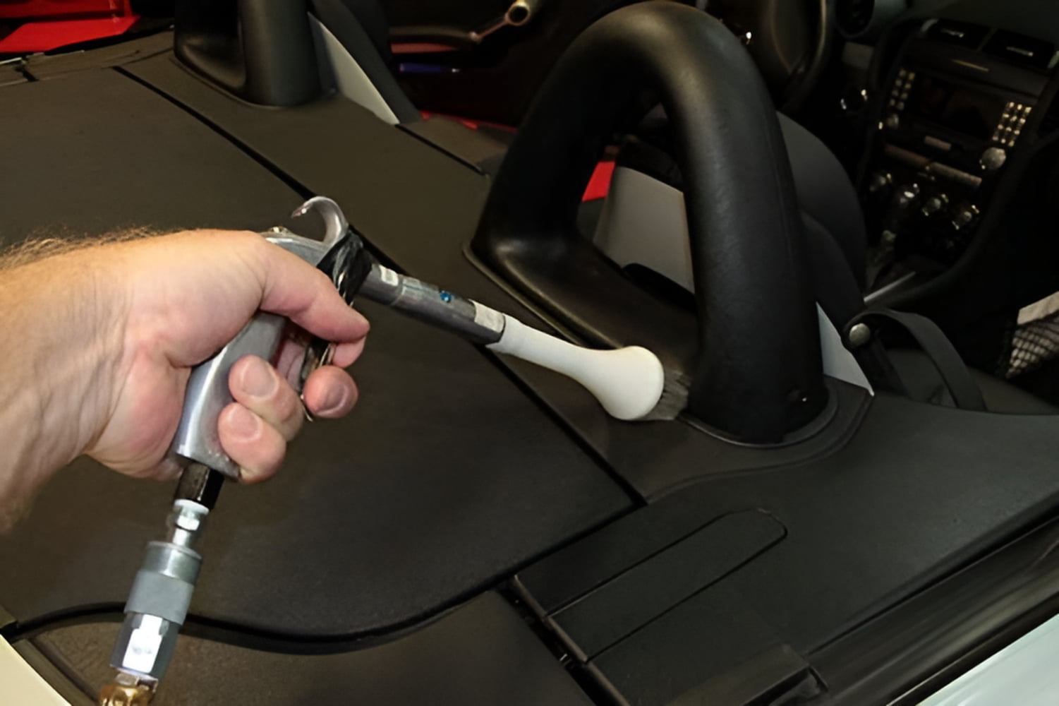 The TORNADOR Air Blow Out tool works with your air compressor to blow debris and moisture out of hard-to-reach areas of a vehicle. Use the TORNADOR Air Blow Out tool inside or outside the vehicle. The strong, tornado-like funnel of air blasts out dirt and dust quickly and easily. The TORNADOR Air Blow Out Gun has the same cone shape as the TORNADOR Car Cleaning Tool and TORNADOR Air Foam tool. The cone channels air into a powerful tornado-like motion that quickly lifts dirt and moisture from any surface. The cone covers a larger area than the air flow coming directly from an air compressor, yet it is still targeted enough to concentrate tremendous air power right where your vehicle needs it.