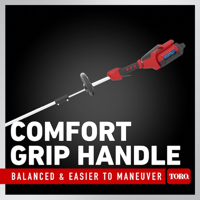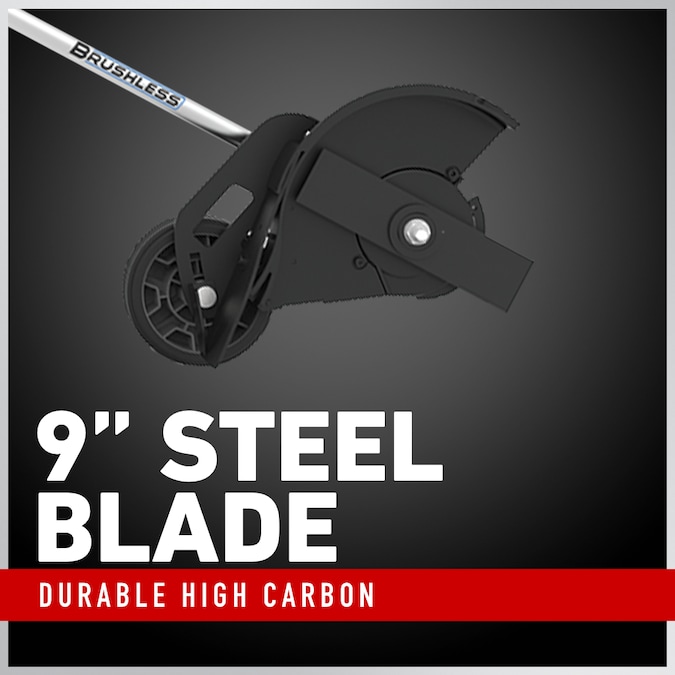 The Toro 60V Max 8-in Brushless Stick Edger (Battery manufacturer rating = 60V maximum & 54V typical usage. Actual voltage varies with load) puts professional-quality finishing touches on your lawn. It has an 8-in high-carbon steel blade and a durable cast-aluminum motor housing. Bumping up against concrete walkways and hardscaping is no big deal. The 3-phase brushless motor with RunSmart onboard intel optimizes RPMs and torque in real time, for more power, more runtime, and longer tool life. Extra power when you need it, less power when you don’t. Variable speed trigger puts precise power at your fingertips. Adjustable cutting depth and guide wheel let you get that edge exactly where and how you want it. As part of the Toro 60V Max Flex-Force Power System, it’s got power like no other that commands a full line of tools. Count on it.