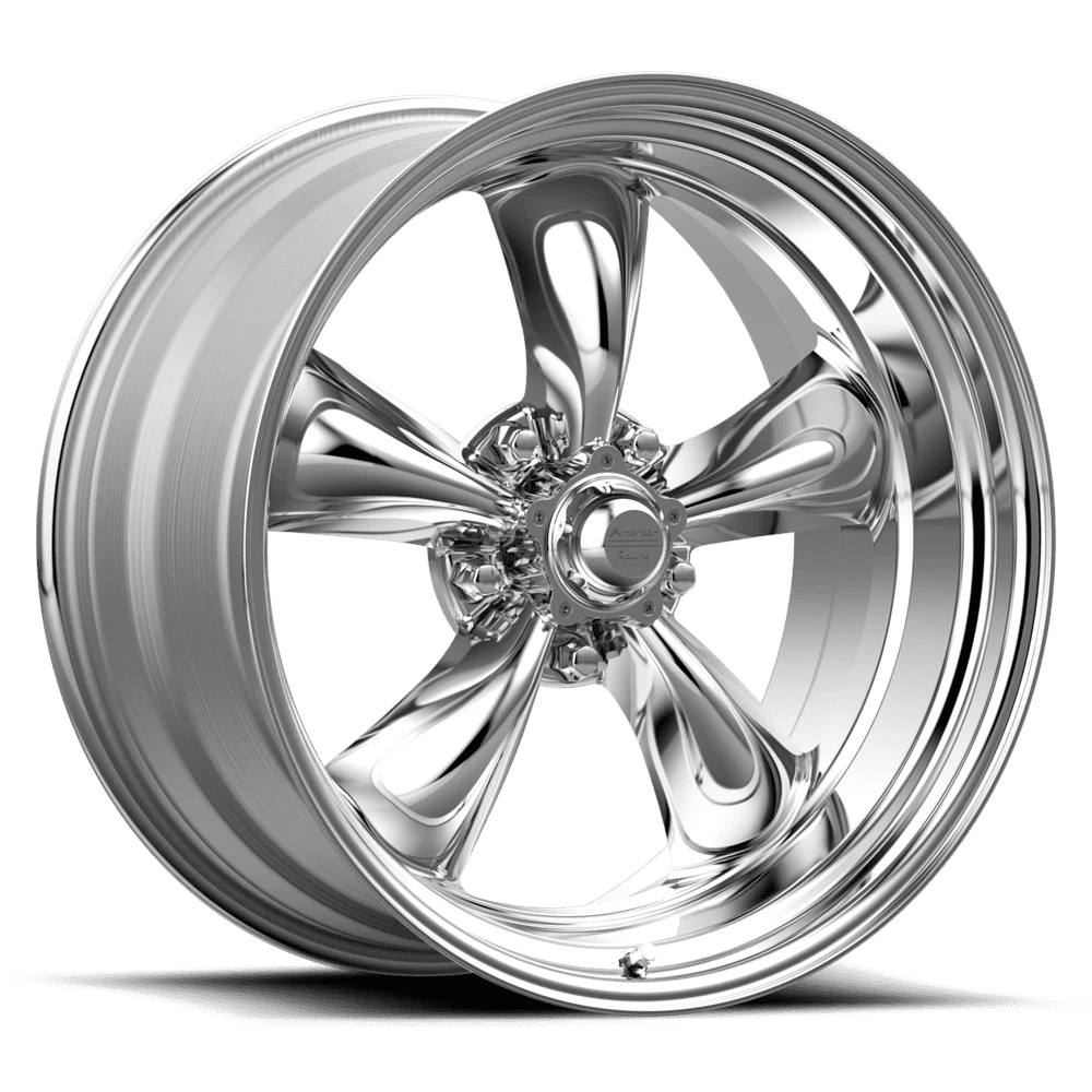 Specifications: VN515 CLASSIC TORQ THRUST II 1PC Polished Wheels by AMERICAN RACING. 18″ x 10″, +6 Offset, 5×114.3 Bolt Pattern, 83.06mm Hub. Torq Thrust was the wheel that created the custom wheel market. It is the wheel that all owners of the original American Muscle and Sports car desired. And it is still here, but in refined design and modern surface treatments. There is nothing like the American Racing Hot Rod Series Torq Thrust wheels when it comes getting classic American power to the pavement. American Racing is the original custom wheel company. Some say the aftermarket for light alloy wheels was created by the success of the American Racing Torq Thrust wheel. This wheel started its career on the drag strip, but soon found its way to the muscle street cars that came onto the roads in the first half of the 1960s. The Torq Thrust was designed with “tapered parabolic contour”, as opposed to a semi-solid modular design, to increase brake cooling and make the wheel lighter. It has been developed over the years to accommodate disc brakes and new hub designs, but the basic style has not change. It was perfected from the very beginning. The designs of American Racing are still being produced today, serving the market with wheels that fit American muscle and sports cars of both today and yesterday. The spoke styles of the original Torq Thrust wheels the pointed, the round, the D-style and the daisy style of the 200S are still with us, and there is no better way to give your vehicle true American Muscle or Sports Car character than fitting a set of American Racing Torq Thrust wheels. If you are looking for truly classic custom wheels, there is no place better to go than to American Racing, the company that invented the custom wheel! American Racing Equipment Inc. was started in 1956 by drag racer Romeo Palimedes, making magnesium rear wheels for dragsters. Their first custom wheels for road cars were introduced in the beginning of the 1960s, with the Torque Thrust, introduced in 1963 considered to be the wheel that created the custom wheel market. The Torque Thrust is one of the most copied wheels ever. American Racing is still producing the wheel, adapted to modern car hubs. American Racing has maintained its pioneering spirit all through the years, and is still leading in the segments of the custom wheel market serving racing and classic car enthusiasts. Muscle cars and American sports car, especially Corvettes, just don’t look right with wheels from brands lacking the heritage of American Racing. American Racing designs and engineering features have stood the test of time. The company is confidently rolling into the future on traditional, contemporary and futuristic wheels, all carrying decades of experience, expertise and tradition. The American Racing product line is characterized by design elements borrowed from racing and by competitive strength-to-weight ratios. The wheels come in staggered fitments, modern finishes and in both classic and contemporary sizes.