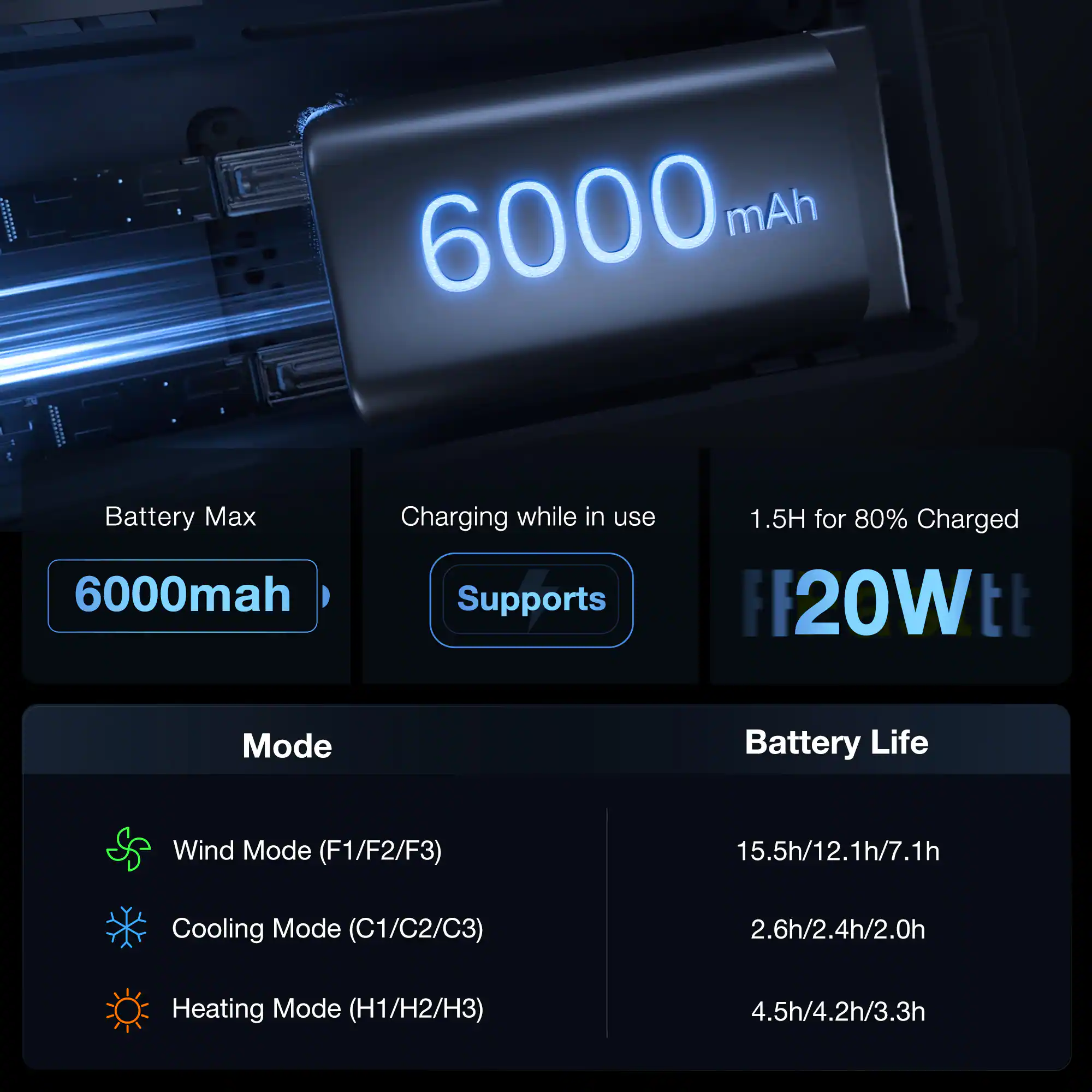 - Product Name: COOLiFY Cyber Ultimate Cooling Portable Neck Fan, Cooling, Heating, and Fan Rechargeable with 6000mAh, Neck Cooler
