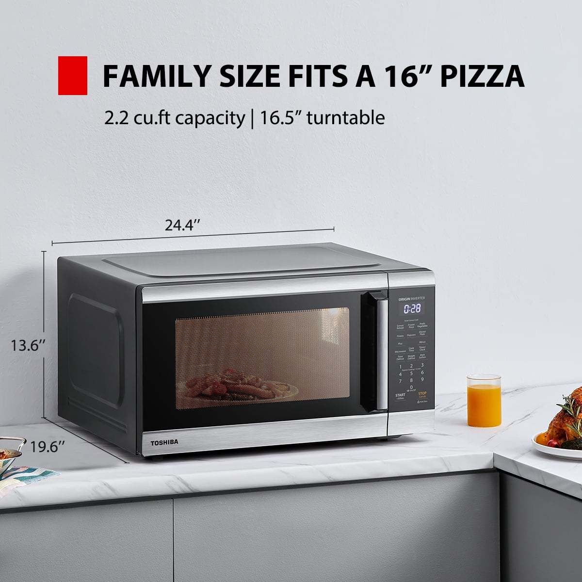 Toshiba 2.2 cu. ft. Countertop Microwave Oven, 1200 Watts, Stainless Steel