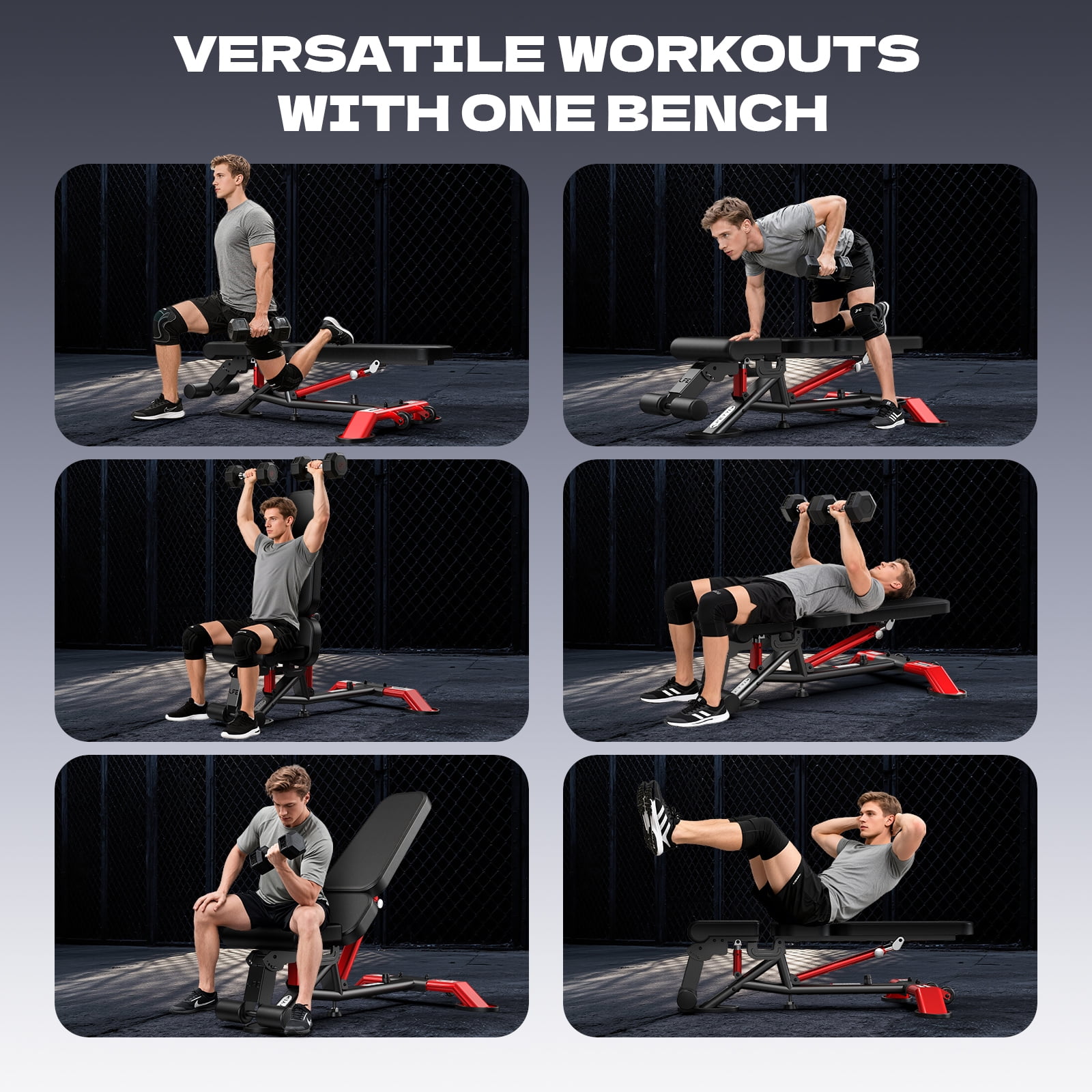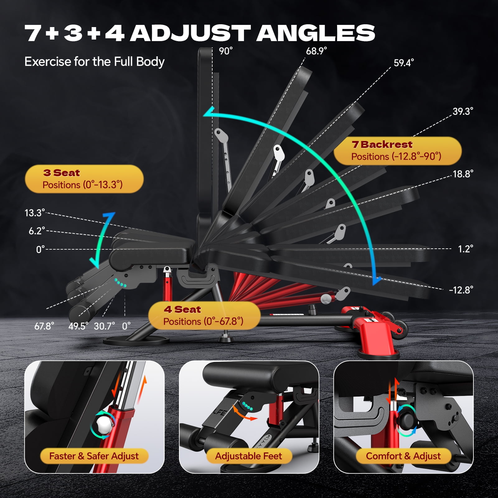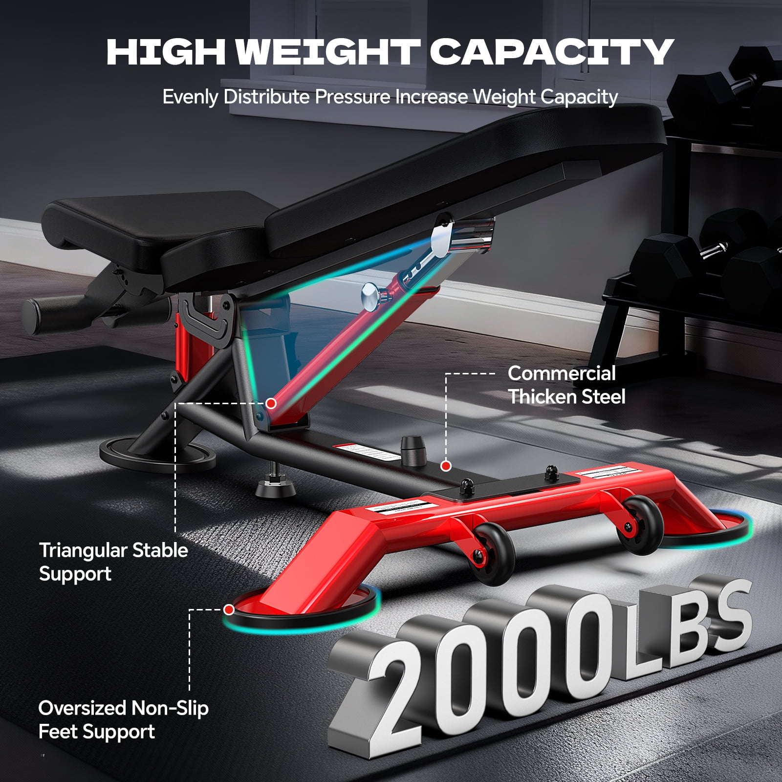 TOSSFD Heavy Duty Adjustable Weight Bench 2000 LBS, Commercial Home Gym Bench for Full Body Workout with Decline/Incline/Flat Positions, Extra Wide & Stable