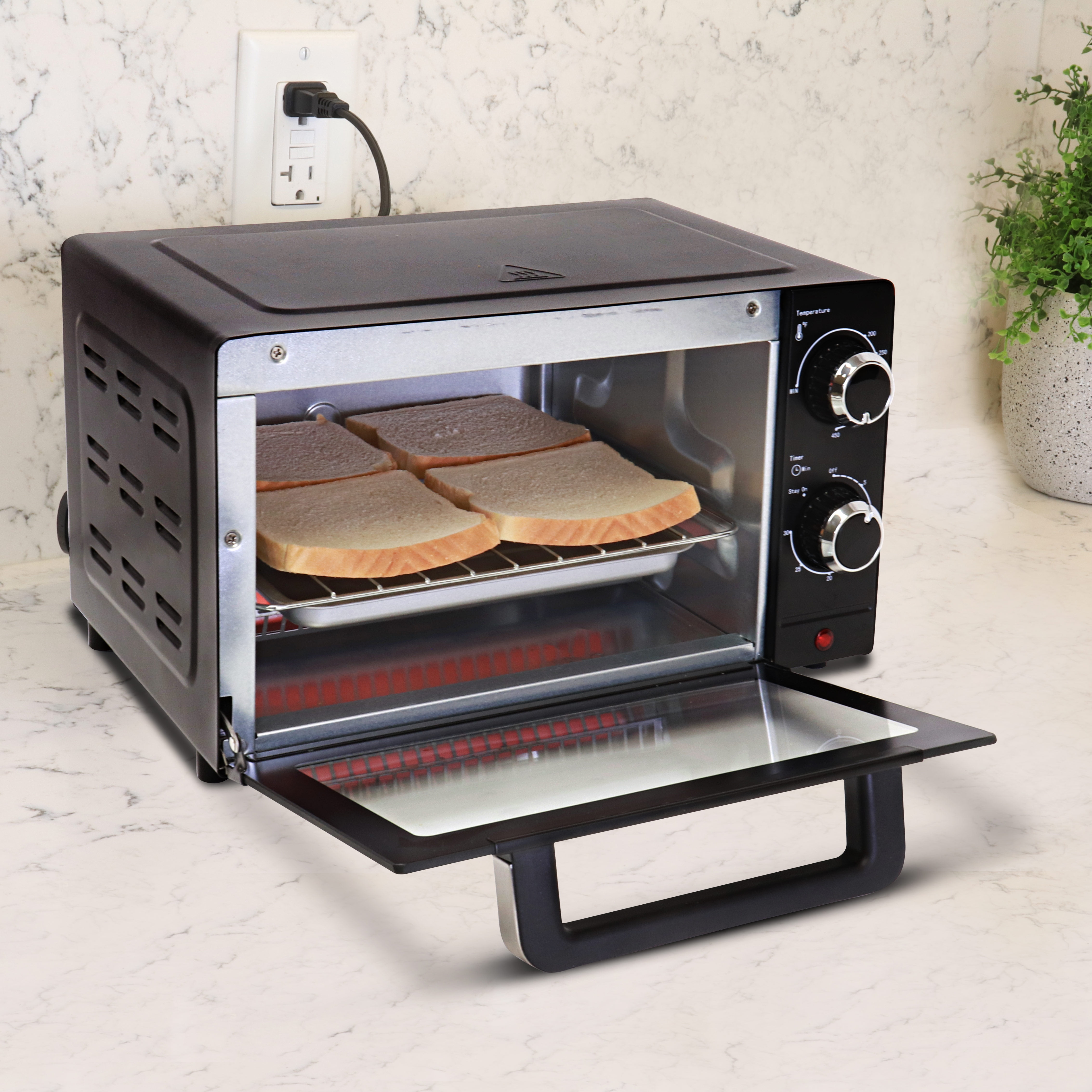 Total Chef 4 Slice Countertop Toaster Oven with Convection 1000W Stainless Steel Baking Rack and Pan, Black