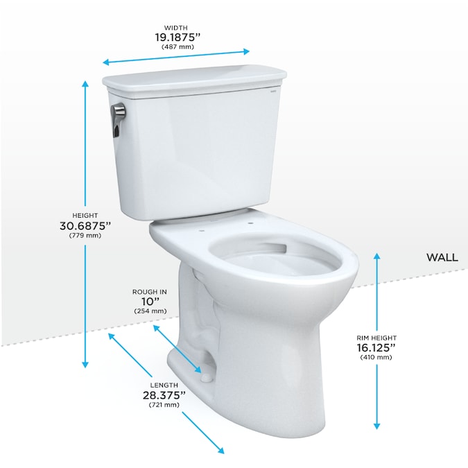The TOTO® Drake® Transitional Two-Piece Elongated 1.28 GPF Universal Height TORNADO FLUSH® Toilet with 10 Inch Rough-In and CEFIONTECT® is a beautifully designed high profile toilet. The Drake features TOTO’s TORNADO FLUSH®, a rimless, hole-free design with dual-nozzles that creates a centrifugal washing action that assists in rinsing the bowl more efficiently. This version of the TOTO Drake includes CEFIONTECT®, a layer of exceptionally smooth glaze that minimizes waste from sticking to the ceramic. CEFIONTECT, coupled with TORNADO FLUSH, assists to reduce the frequency of toilet cleanings, minimizing the usage of water, harsh chemicals, and time required for cleaning. This version of the TOTO Drake is designed in TOTO’s Universal Height, which allows for a more comfortable seat position across a wide range of users. This version of the Drake has a left-hand chrome trip lever, is ADA compliant, and meets the standards for EPA WaterSense®, and California’s CEC and CALGreen requirements. The Drake bowl and tank set includes a tank to bowl gasket, tank to bowl hardware, and toilet bolt caps. Additional items needed for installation and use must be purchased separately: wax ring, toilet mounting bolts, water supply lines, and toilet seat.