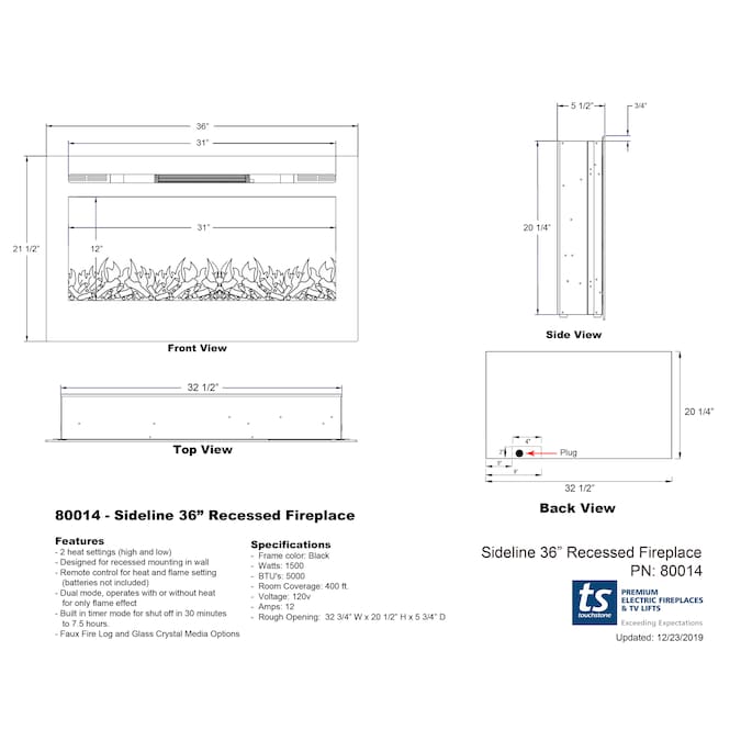 Touchstone designed the Sideline 36 smart electric fireplace to meet the needs of contractors and do-it-yourself installers, who are looking for the beauty of a Touchstone fireplace mounted flush to a wall. The Sideline 36 is a 36 inch wide smart electric fireplace with Wifi connectivity, Touchstone’s realistic flames, contemporary black frame, and a heating element that is placed in front of the frame, which allows in-wall installation. The Sideline 36 delivers the beauty of a fireplace without the fire and mess. The Sideline 36 has a 5,000 BTU heater that will provide supplemental heat a room of up to 400 square feet, with high and low heat settings, as well as a thermostat. Also, the fireplace’s flame can be used without the heating feature. The Sideline 36 is easy to install and comes with simple and understandable instructions. The heart of Touchstone’s electric fireplaces is the flame itself. We tell our customers that the flame will transcend your expectations, and they will not fail to impress. The flames deliver the same relaxing effect of real flames, without the smell or mess, and they look great in any room of the house. With the five speed settings and five flame flame intensity offered by the Sideline 36, ranging from a dim glow to a full fire blaze, you have the power to adjust the flame based on your desired mood or lighting of the room with the control features on the fireplace’s remote. With three realistic flame color options, ten ember bed color choices (with pulsating embers at level 5 intensity), and faux logs and crystal hearth options included, the Sideline creates the cozy atmosphere of a traditional fireplace, emitting authentic-looking flames that emulate a real fire. Control the heat and fire effects using the included remote control or through the smartphone app via Wifi connection. The flames that Touchstone Home Products fireplaces create are natural enough to have friends and family think you own a traditional wood burning fireplace.