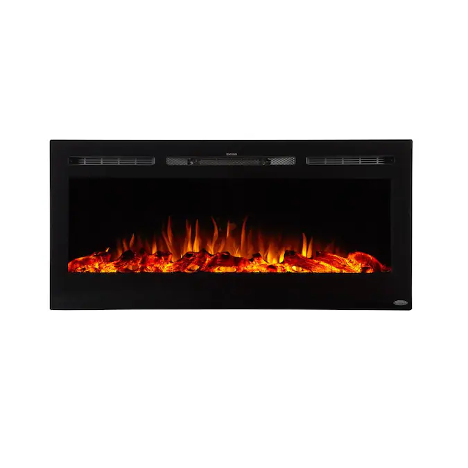 - Slim frame that features a large fireplace viewing area with life-like LED flames