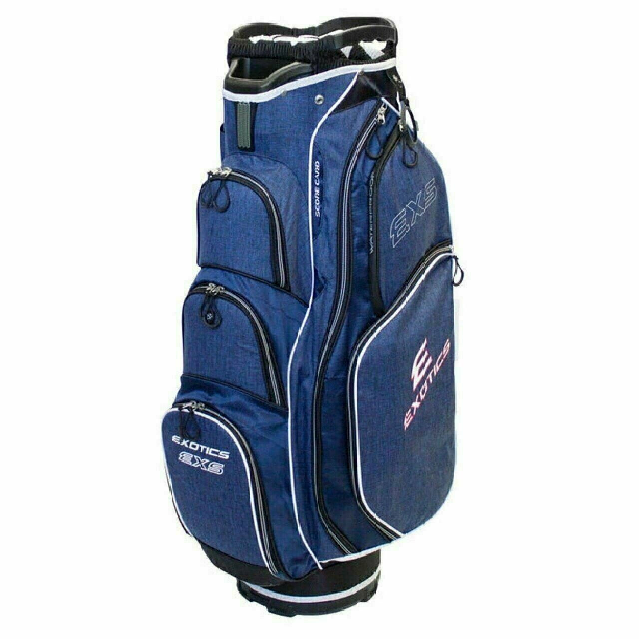 The Tour Edge Exotics Xtreme Cart Bag 7.0 features a 15-way divider top with 3 molded easy-lift handles. This bag also features a extra large garment pocket and insulated beverage pocket. Two waterproof, velour-lined dry pockets. A range finder pocket and rain hood are also included.