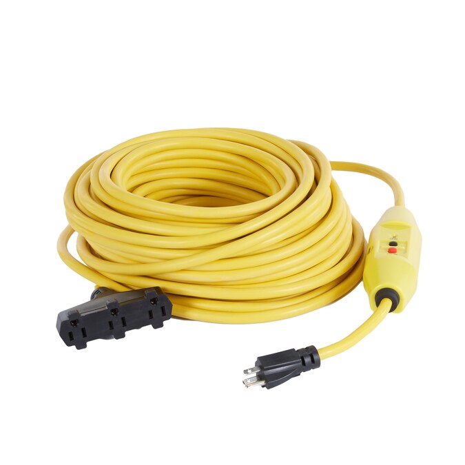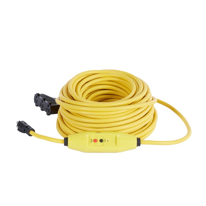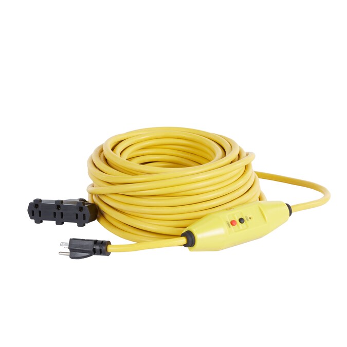Rainproof rated for indoor and outdoor use provides safety assurance for any electrically powered job. Construction and industrial grade. 100-ft – 12 gauge heavy duty cord. Triple tap 3 outlet female connector allows for multiple usage. GFCI safety assurance, OSHA compliant, highly visible “safety” yellow color. LED power on indicator. 15 amp, 125 volt rated.