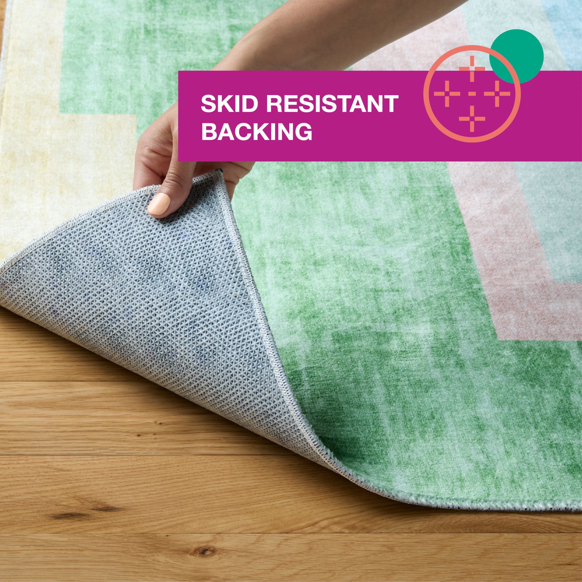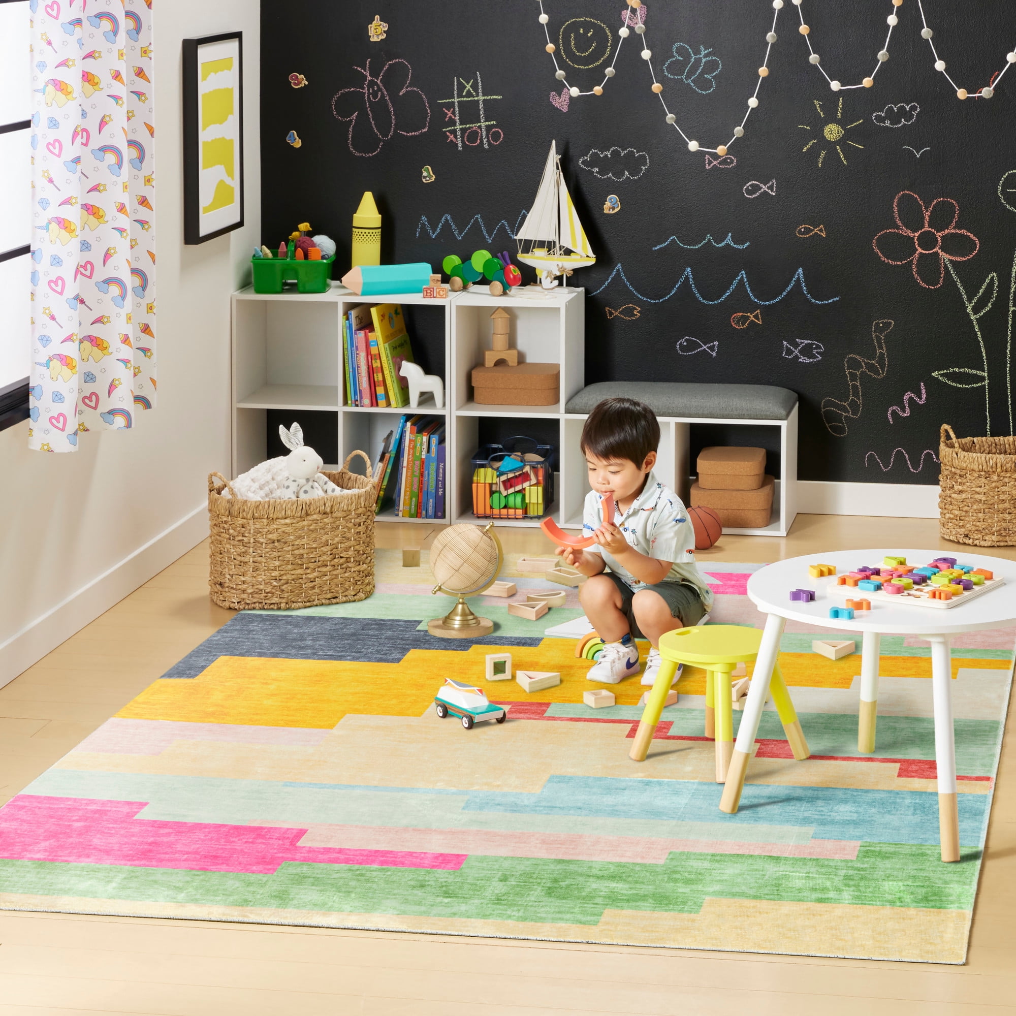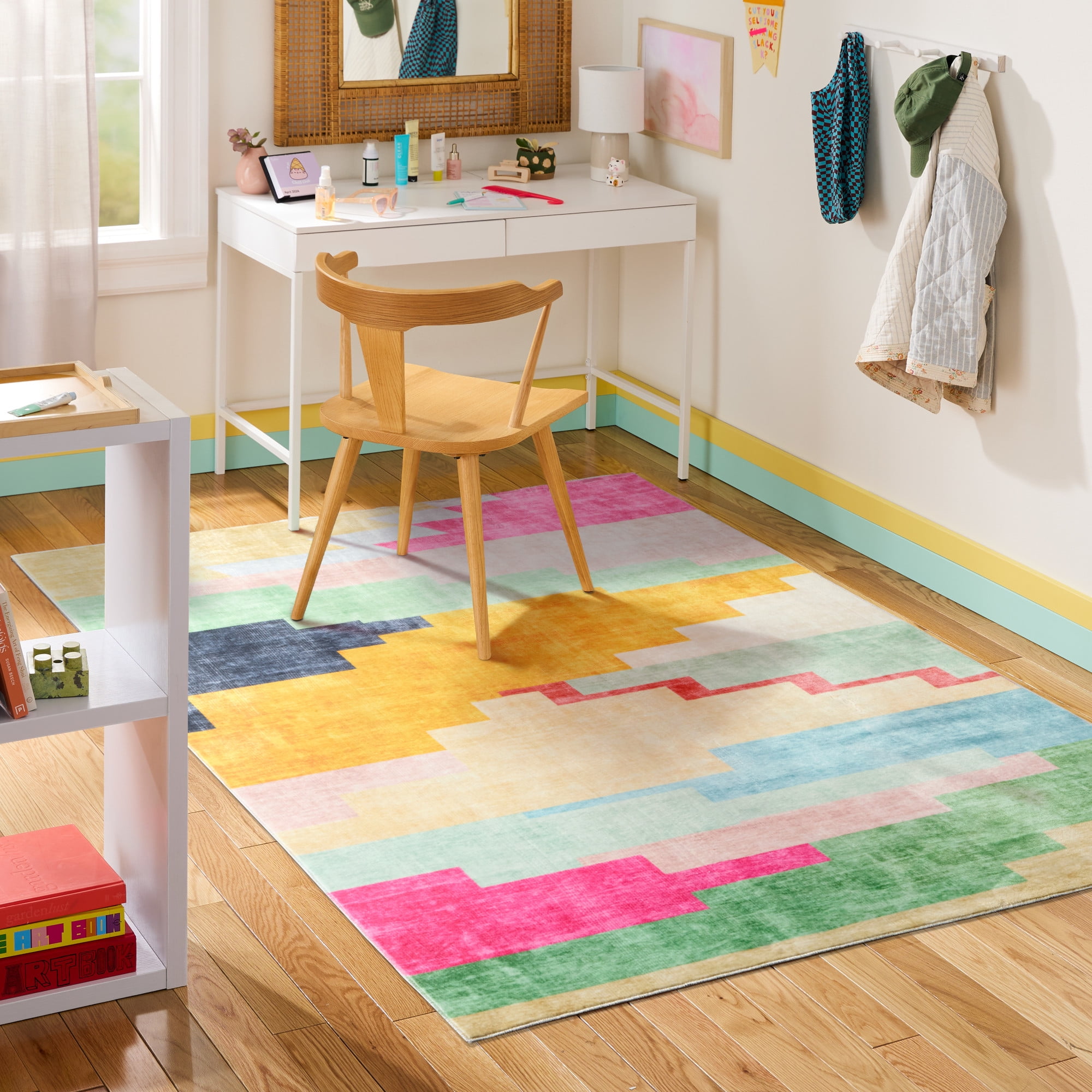 TOWN & COUNTRY PLAY Nara Southwest Pop Kid’s Washable Area Rug, Soft & Plush, Safe Non-Slip Backing, Bedroom Rug, Dorm Decor, Playroom & Classroom Rugs, Pink/Multi, 5’2″x7’2”