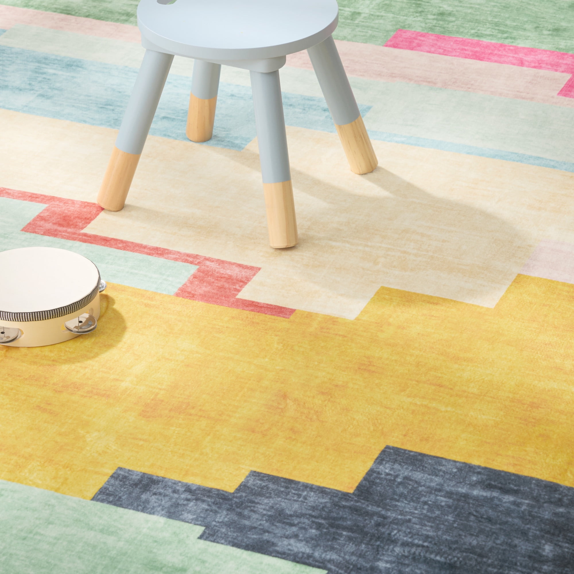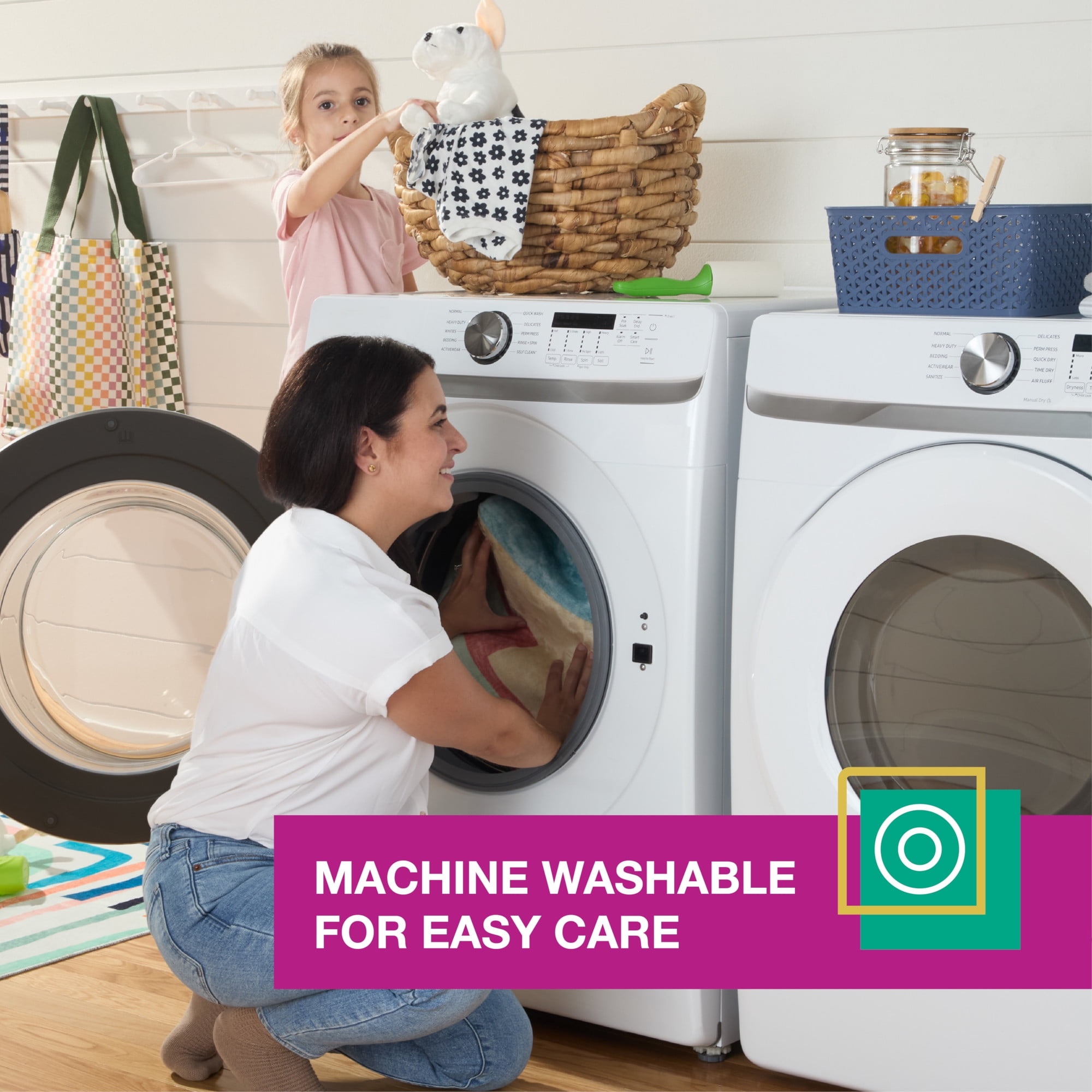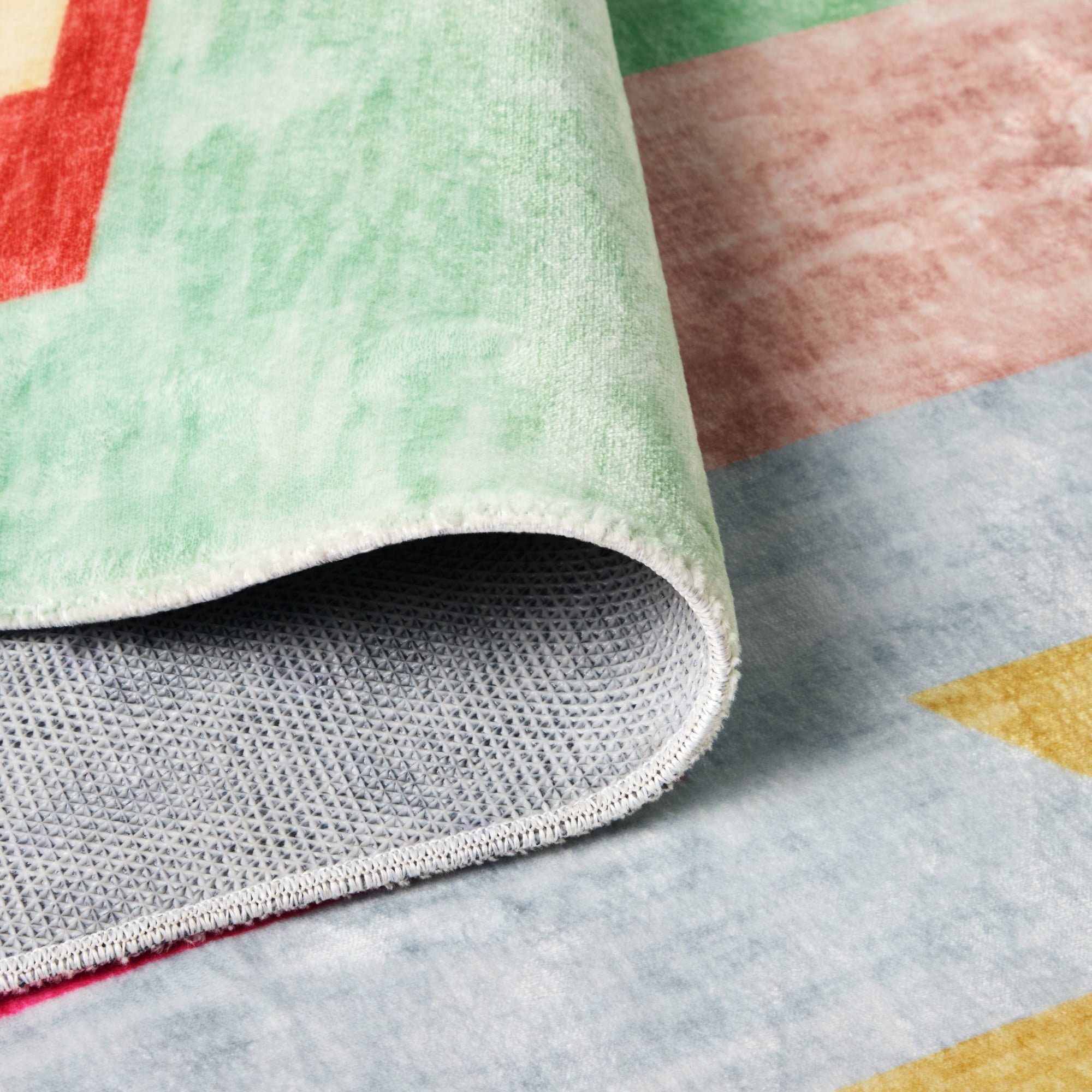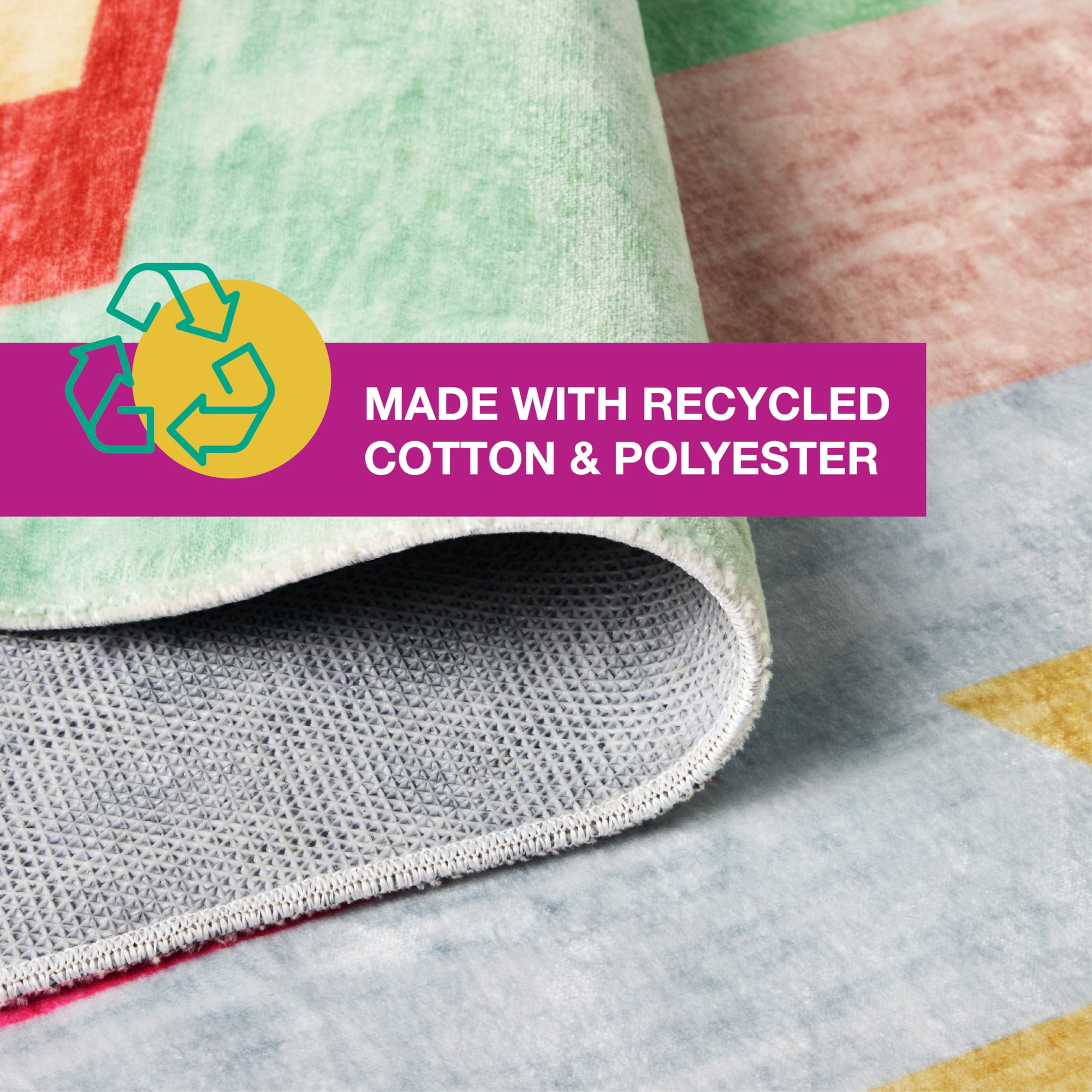 Town & Country Play Nara Southwest Pop Kids Plush Washable Area Rug Dimensions: 5’2″x7’2” Made of 100% recycled materials: 80% recycled cotton, 20% recycled polyester Non-slip latex backing for added safety Kid and pet-friendly and great for people with allergies Machine washable on cold, gentle cycle wash separately on highest water level. Only non-chlorine bleach. Line dry. Do not iron. Do not dry clean. To prevent damage to residential appliances, please ensure that rugs size 8×10 and larger are cleaned in a commercial washing machine only