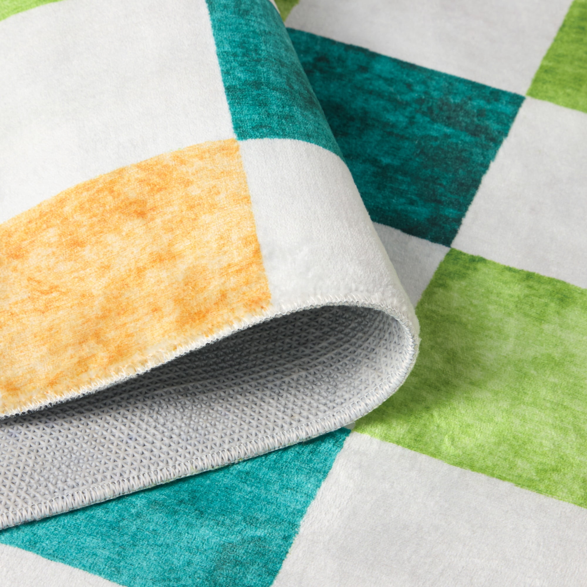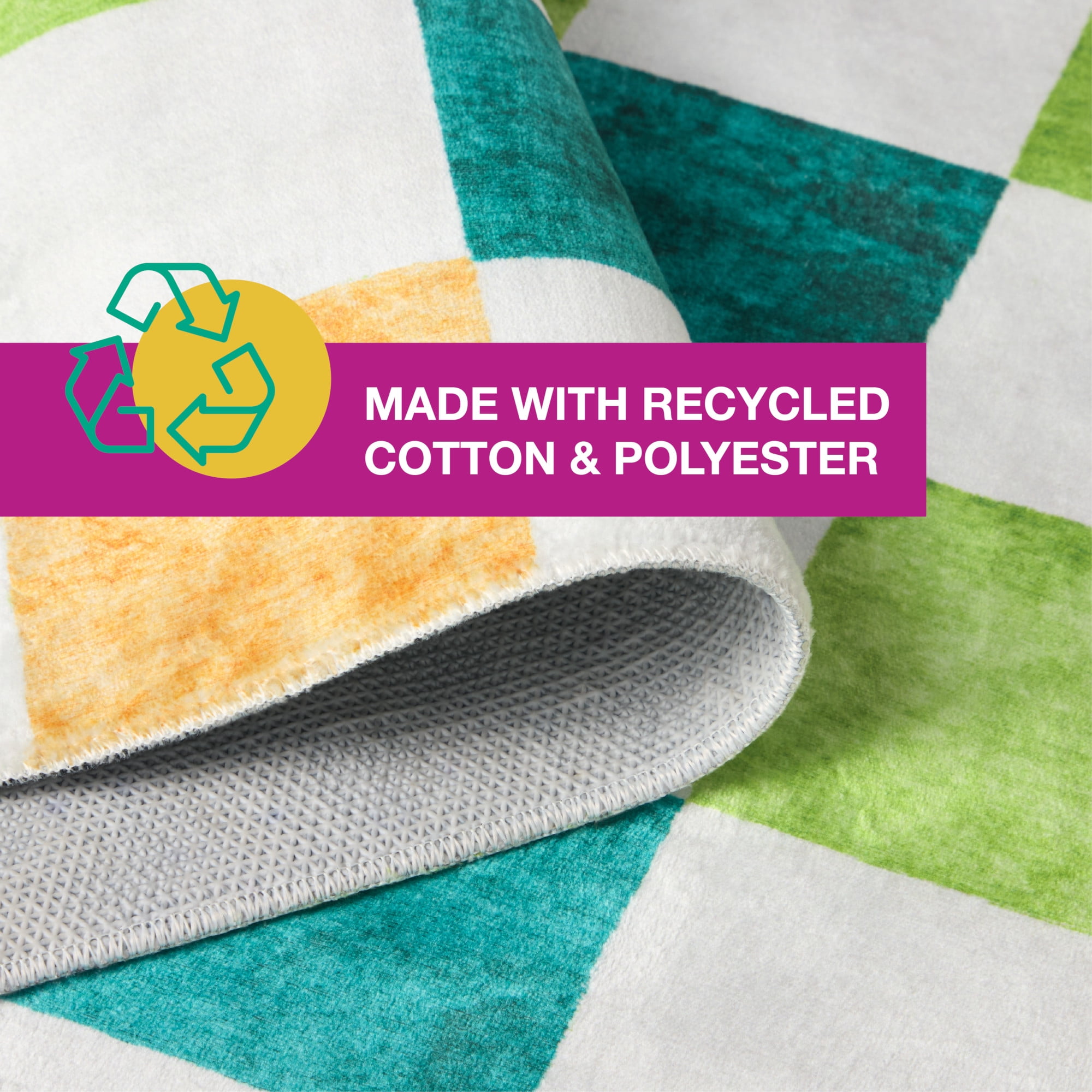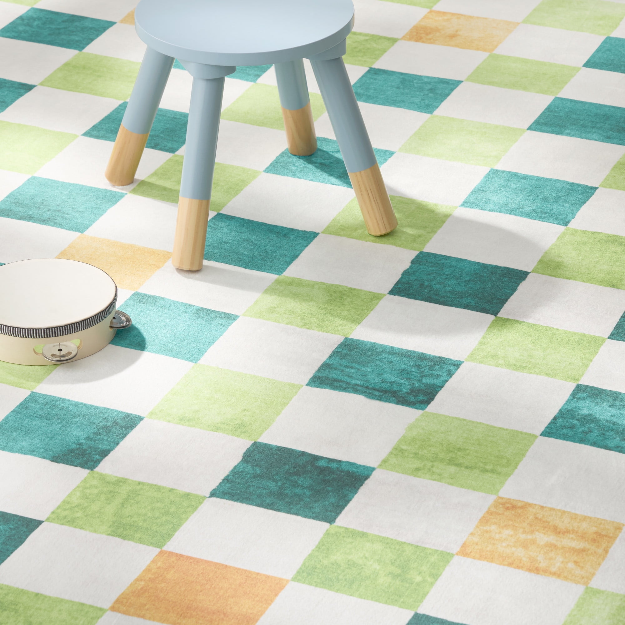 TOWN & COUNTRY PLAY Niko Checkmate Kid’s Washable Area Rug, Soft & Plush, Safe Non-Slip Backing, Bedroom Rug, Dorm Decor, Playroom & Classroom Rugs, Green/Multi, 5’2″x7’2”