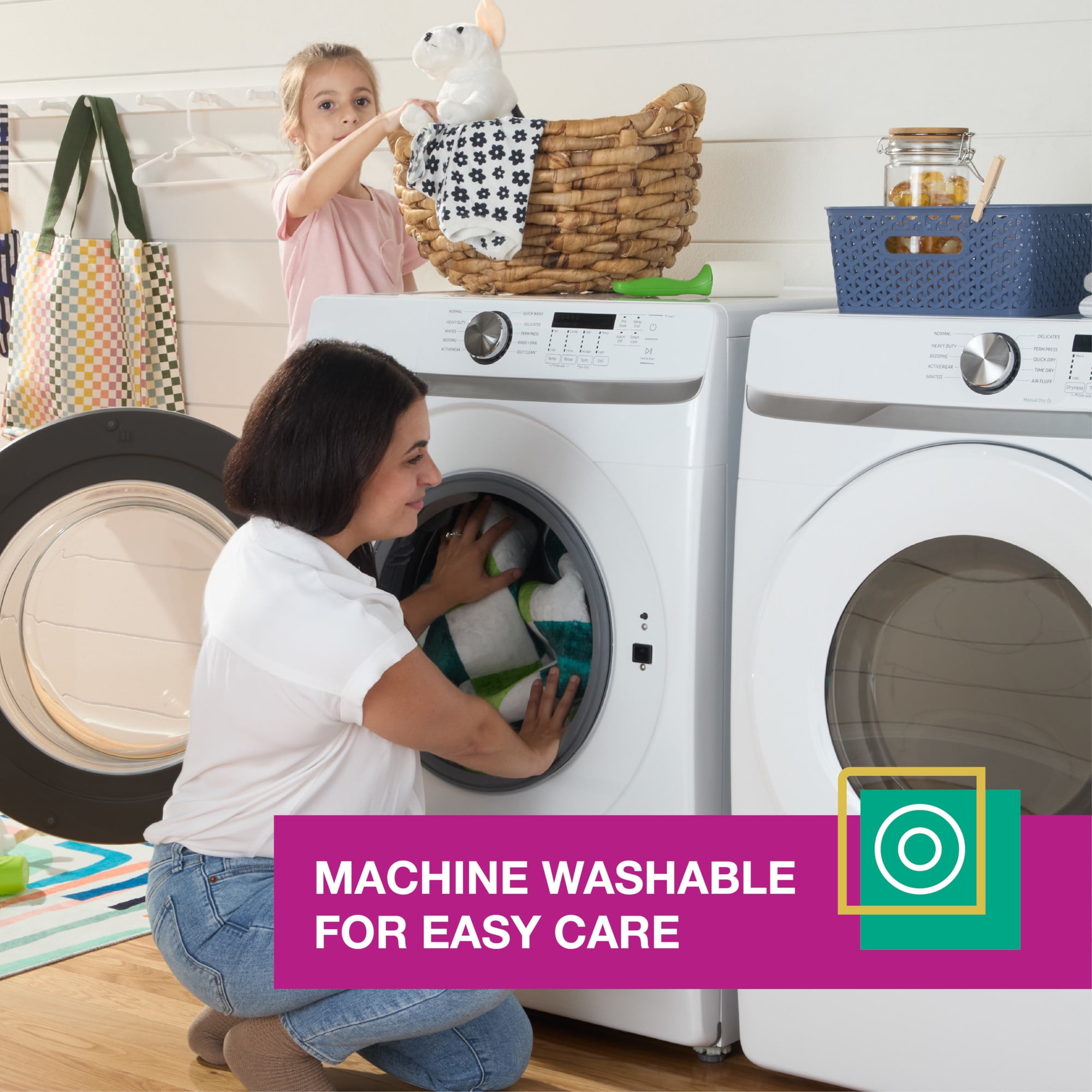 Town & Country Play Niko Checkmate Kids Plush Washable Area Rug Dimensions: 5’2″x7’2” Made of 100% recycled materials: 80% recycled cotton, 20% recycled polyester Non-slip latex backing for added safety Kid and pet-friendly and great for people with allergies Machine washable on cold, gentle cycle wash separately on highest water level. Only non-chlorine bleach. Line dry. Do not iron. Do not dry clean. To prevent damage to residential appliances, please ensure that rugs size 8×10 and larger are cleaned in a commercial washing machine only