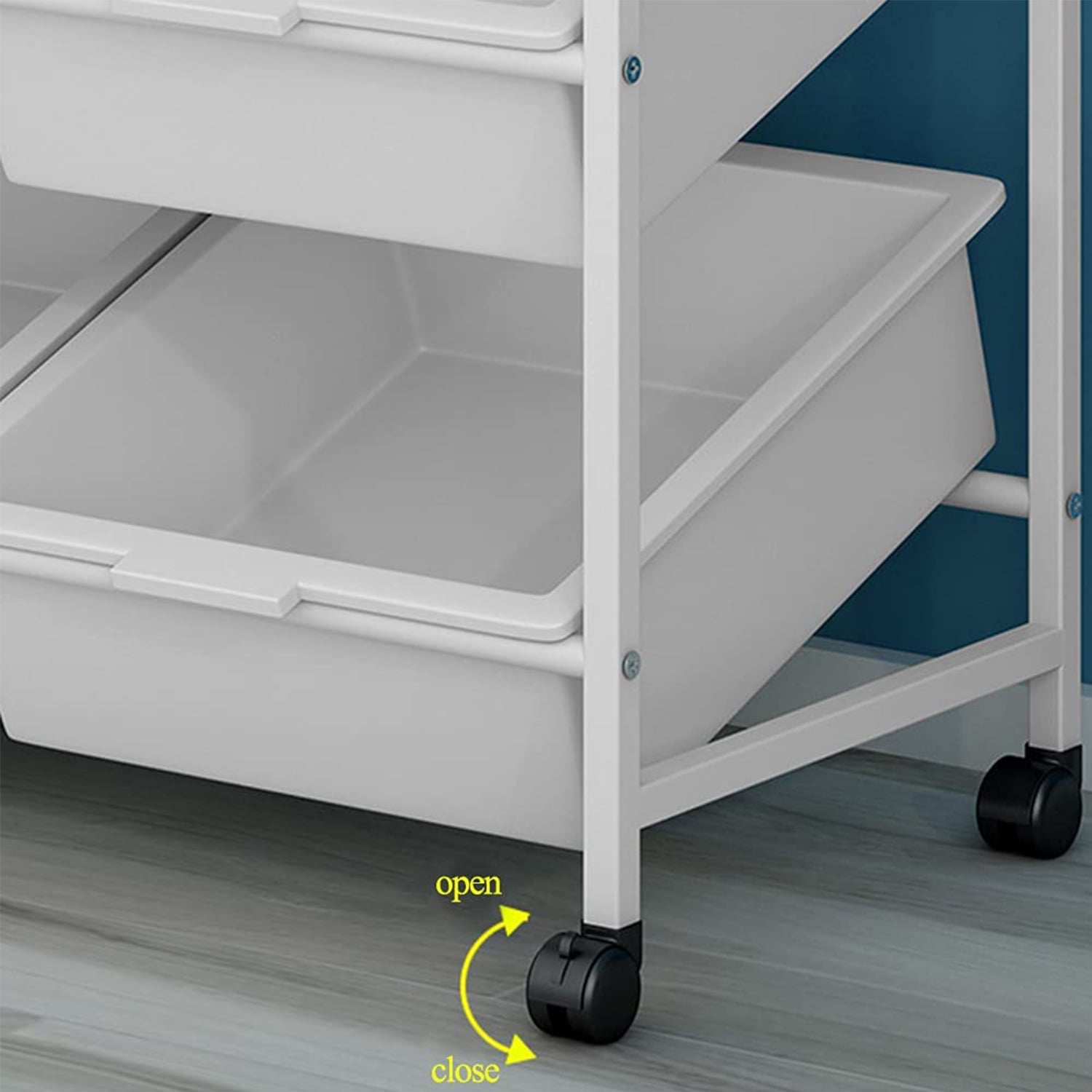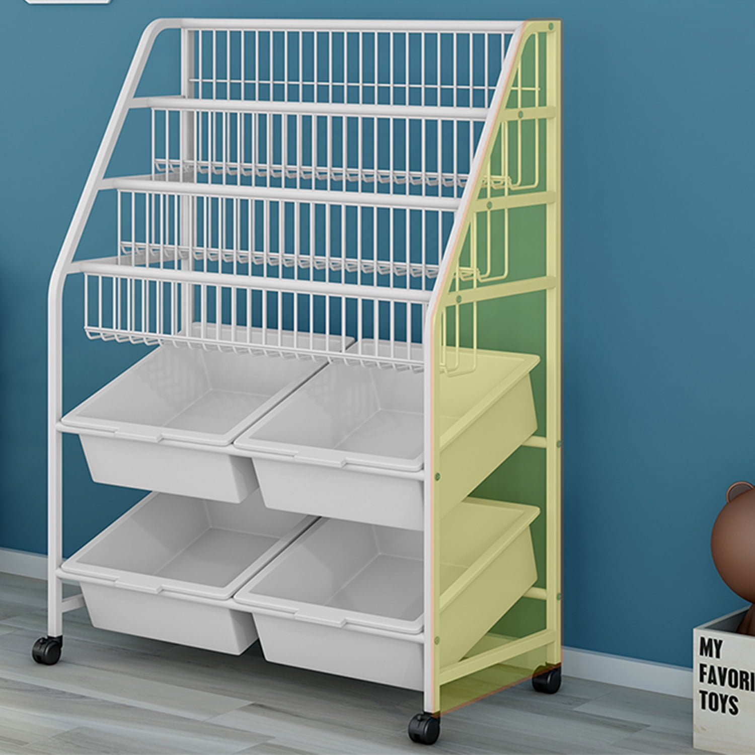 2 in 1 Kids Bookshelf: There are 4 storage bins at the bottom, which can be used for children to store their favorite toys, stationery, art accessories, etc. 3-tier shelves with large space on the top can hold children’s books, and keep your children’s room well-organized. Practical storage rack: The bottom of the rack is equipped with 360 degree rotating rollers with brakes for easy movement. It can be placed in bedroom, study, kitchen, children’s room, living room or office. Space-Saving and Easy Installation: Our cute bookshelf helps you improve your kids organizing ability. Taking up minimalist floor area, but also can provide enough storage space for your children. Every bookshelf is equipped with the installation instructions and tools, it is easy and quick to assemble. Strong and Durable: The bookshelf is made of metal and the storage bins are made of high-quality PP material. Don’t worry about its sturdiness, it is not easy to be deformed or damaged. Perfect Size: The size of our kids book rack is 100cm×60cm×30cm/39.3″L x 23.6″W X 11.8″H, the perfect size is suitable for the children, they can easily identify and pick up their books. It is good rack for cultivating children’s reading interest.