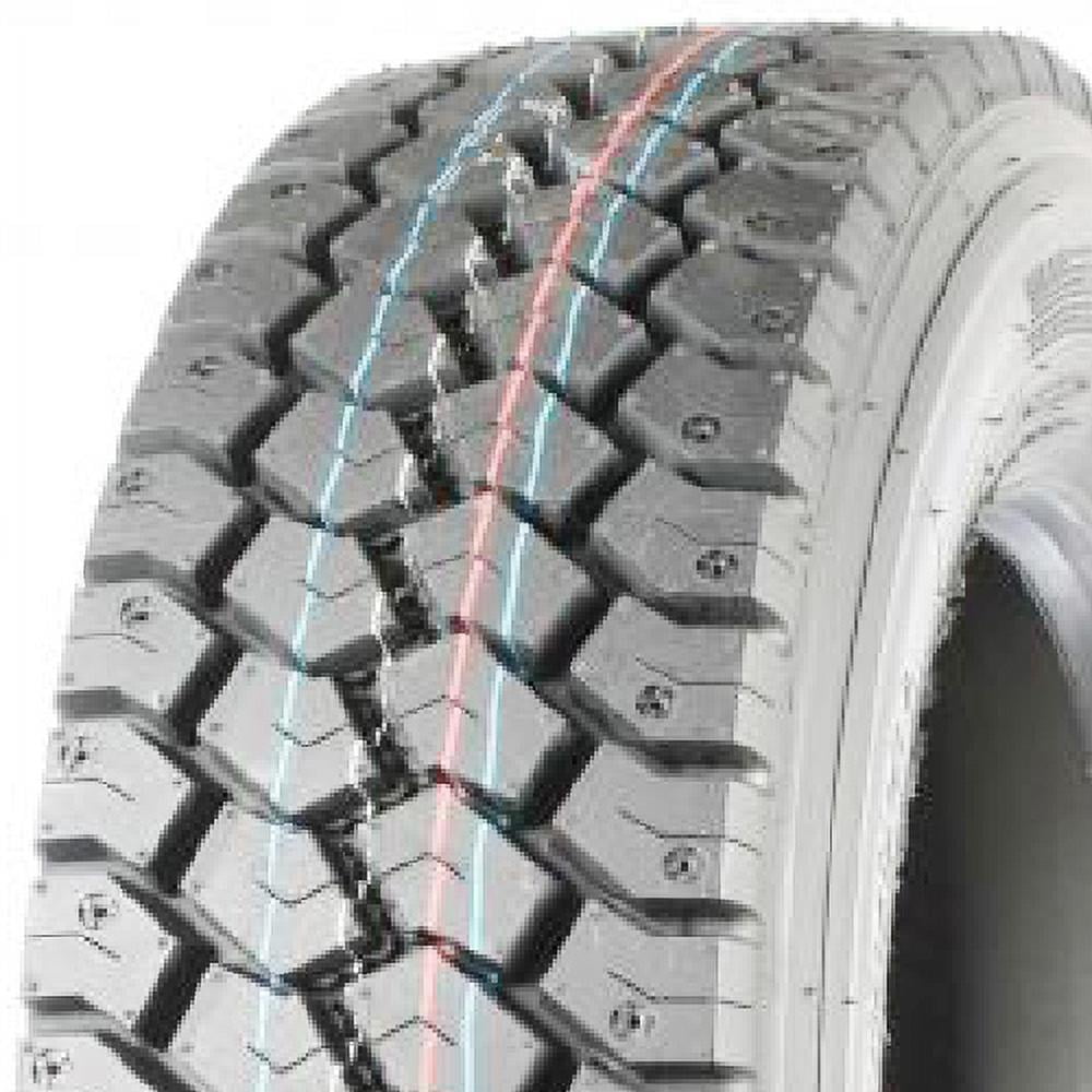 It features an extra-wide lug and block pattern, offering superior traction in challenging conditions like snow, mud, and sand. The tire’s optimized tread depth contributes directly to its excellent mileage performance and extended service life. A robust four-belt construction enhances casing durability, which significantly contributes to the tire’s high retreadability. Its open-shoulder lug design delivers outstanding traction, essential for dependable commercial drive applications. Select sizes are designed to accept TSMI #15 studs, providing enhanced grip for extreme winter conditions.