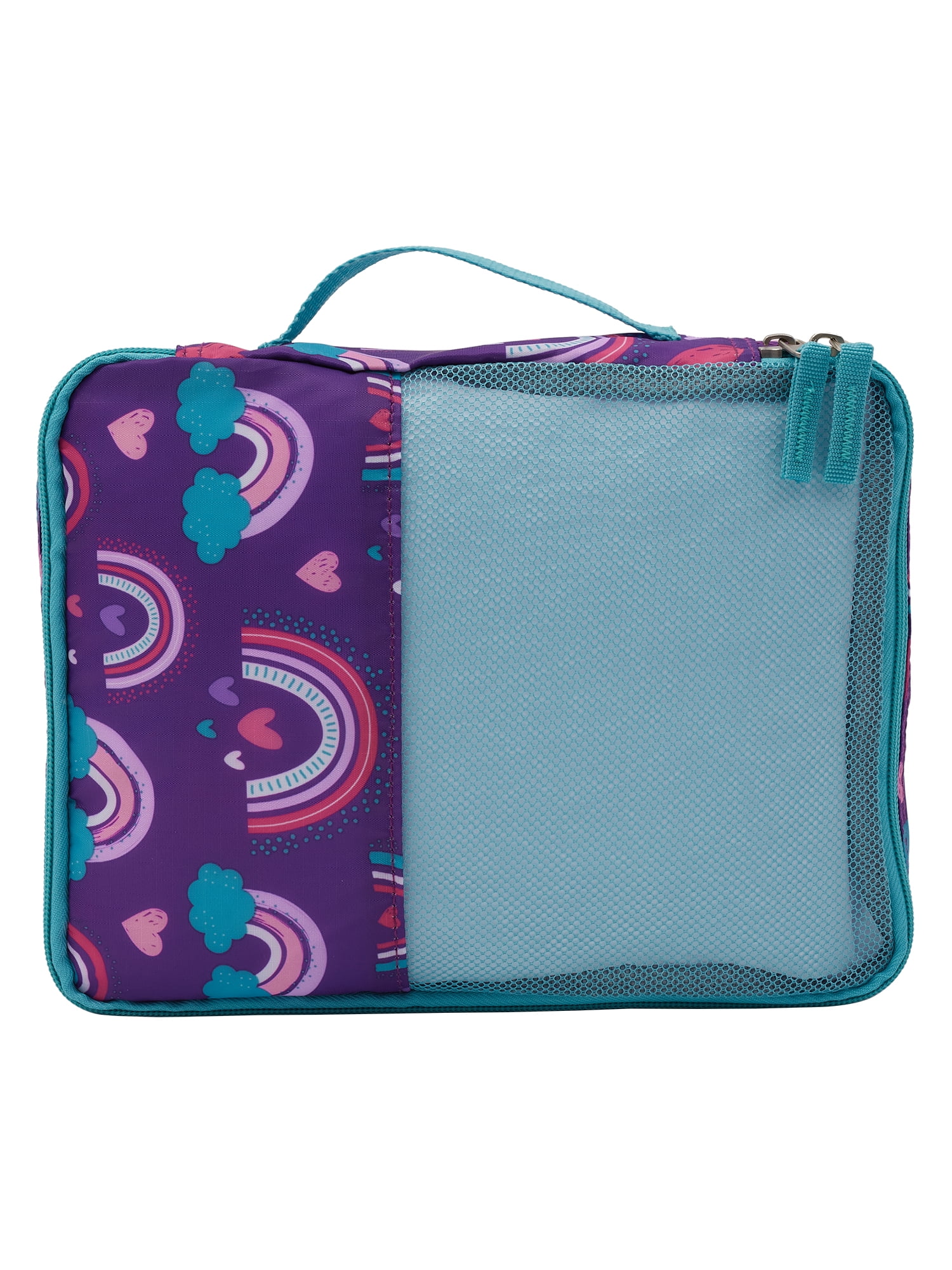 Inspire your children’s sense of wanderlust and personal identity with the TPRC 5 PC Kids’ Hard side Luggage Set that comes with four dedicated prints: Butterfly, Rainbow, Shark, and Space! This is a colorful, vibrant printed luggage collection that matches the thrill and excitement of travel with your kids’ personality and boundless enthusiasm to explore new worlds. The 5 PC Set includes an 18” junior rolling carry-on with 4 spinner wheels, 2PC Packing Cubes, a Neck Support Pillow, and an add-on Luggage Tag. This set has excellent value and is available only on .