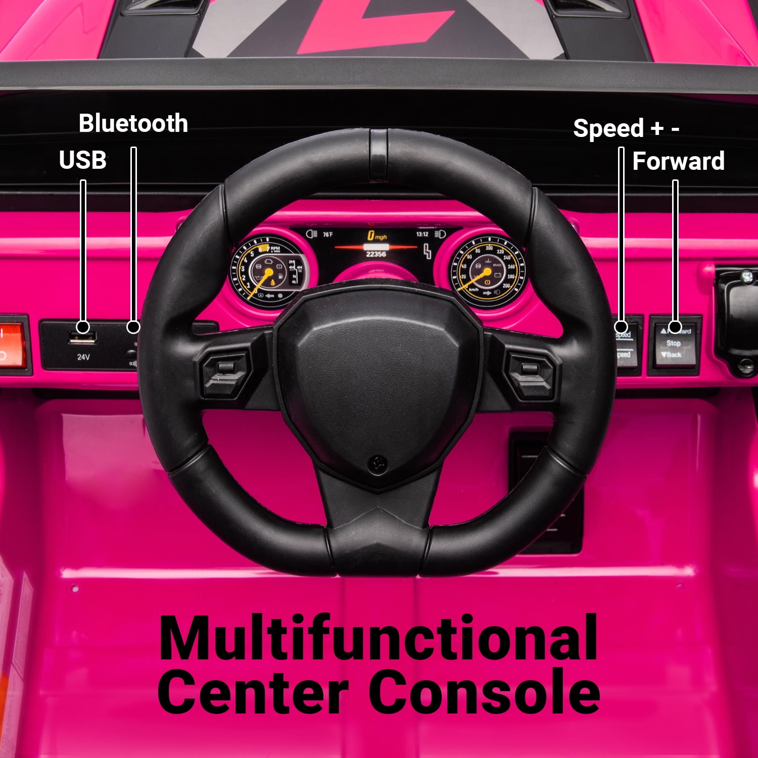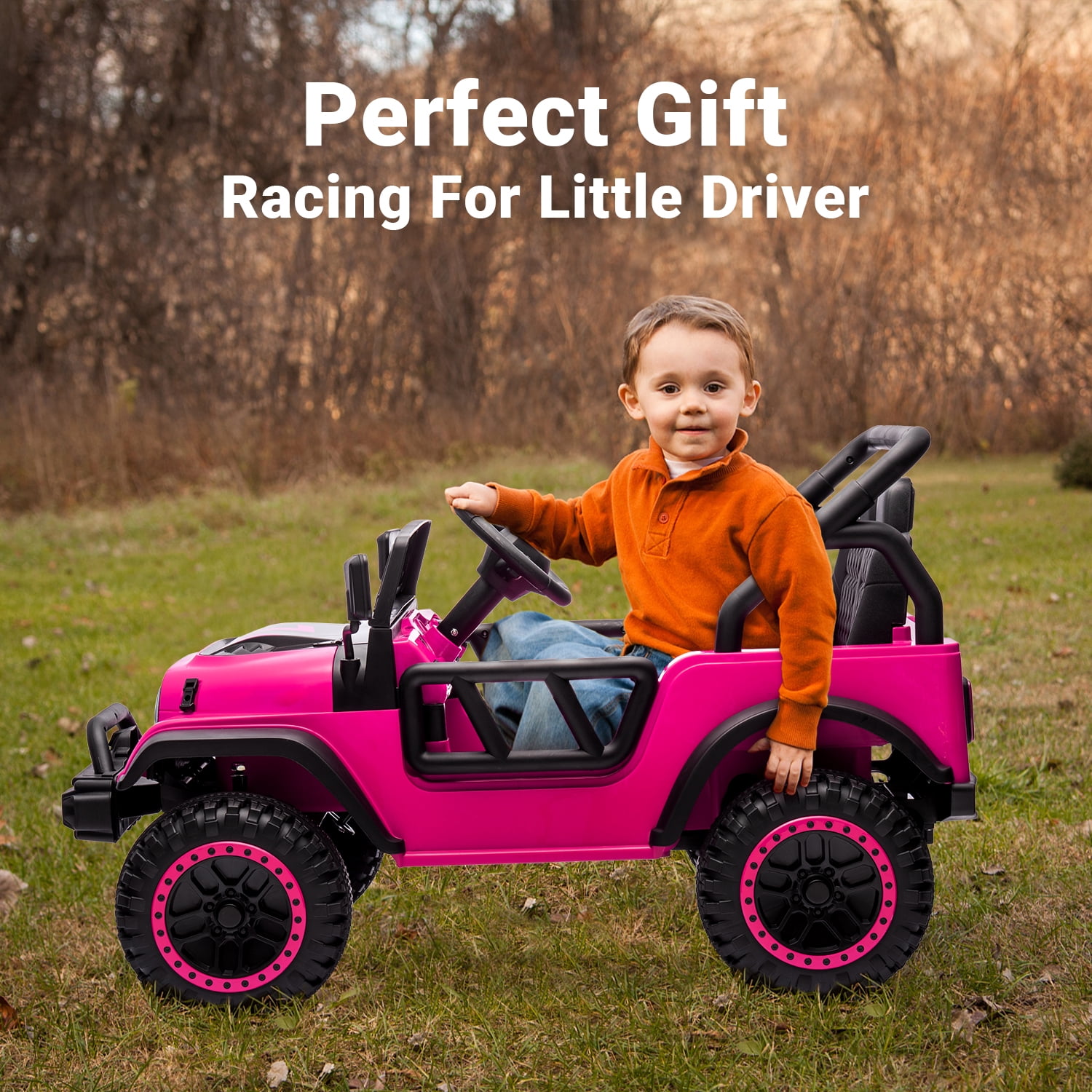 【15” Single Seat】The 24v kids electric vehicles is crafted with premium materials. A Large comfort seat with safety belt and the front bumper to avoid the risk of sudden acceleration. Weight Capacity: 132lbs. 【Enjoy Driving by Funny Designs】This 24v ride on car is equipped with MP3 player, USB port, Bluetooth,etc. You can play the pre-installed songs that set up, or it has Bluetooth so you can connect your music from your phone for unisex child to enjoy. 【Upgrade 24v Powered Battery 】This 24V kids utv equipped with a 24V rechargeable battery and 390*2 electric motors which provide with the powerful and continuous use. Moreover, it features an actual output of 7AH large battery, delivering up to two hours of continuous playtime. 【Excellent Safety Performance】In the new model, we’ve added auto-reset overheat protectors to prevent overloading of drive motors and total circuits during regular use. The remote control features an emergency “P” button for braking to prevent hazardous situations. Furthermore, each seat is equipped with a three-point seat belt, and the openable doors on both sides come with safety locks, ensuring comprehensive protection for kids’ safety. 【Remote Control and Kids Drive Manually】Two driving modes for your options! The parent can operate it via the remote control when the kid is too young to ride it. And the kids can drive it with the steering wheel and the pedal by themself. 【Service】The ride on truck is absolutely a good choice as a gift for your child on birthday and festival that accompany your children’s growth. If you have any problem about the goods, just send messages to us, we will reply within 24hrs.
