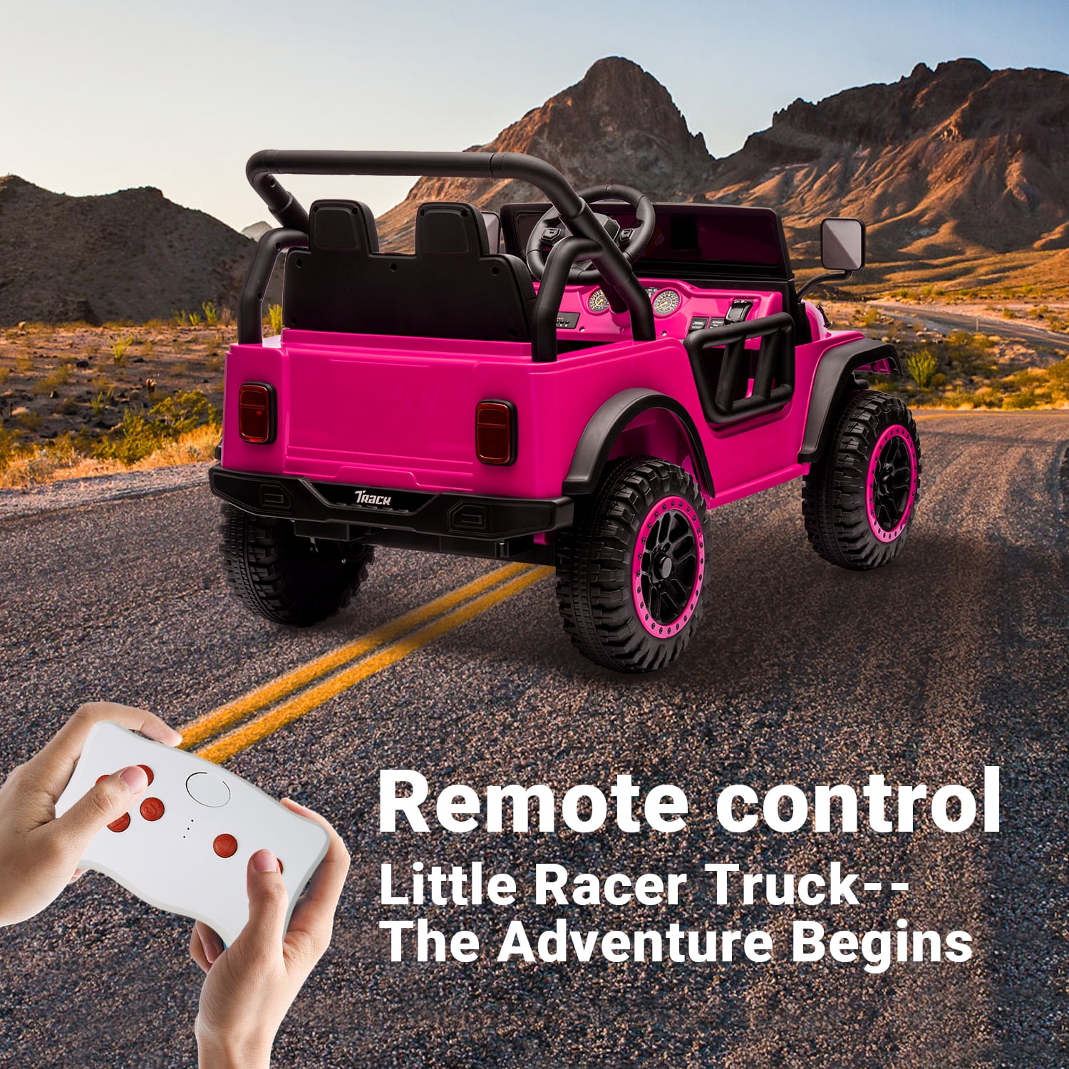 Track Seven 24V Ride on Truck, Electric Car for Boys Girls, Ride on Car with Remote Control, Music, Bluetooth, Lights, Spring Suspension, Max Speed 5 mph, Pink