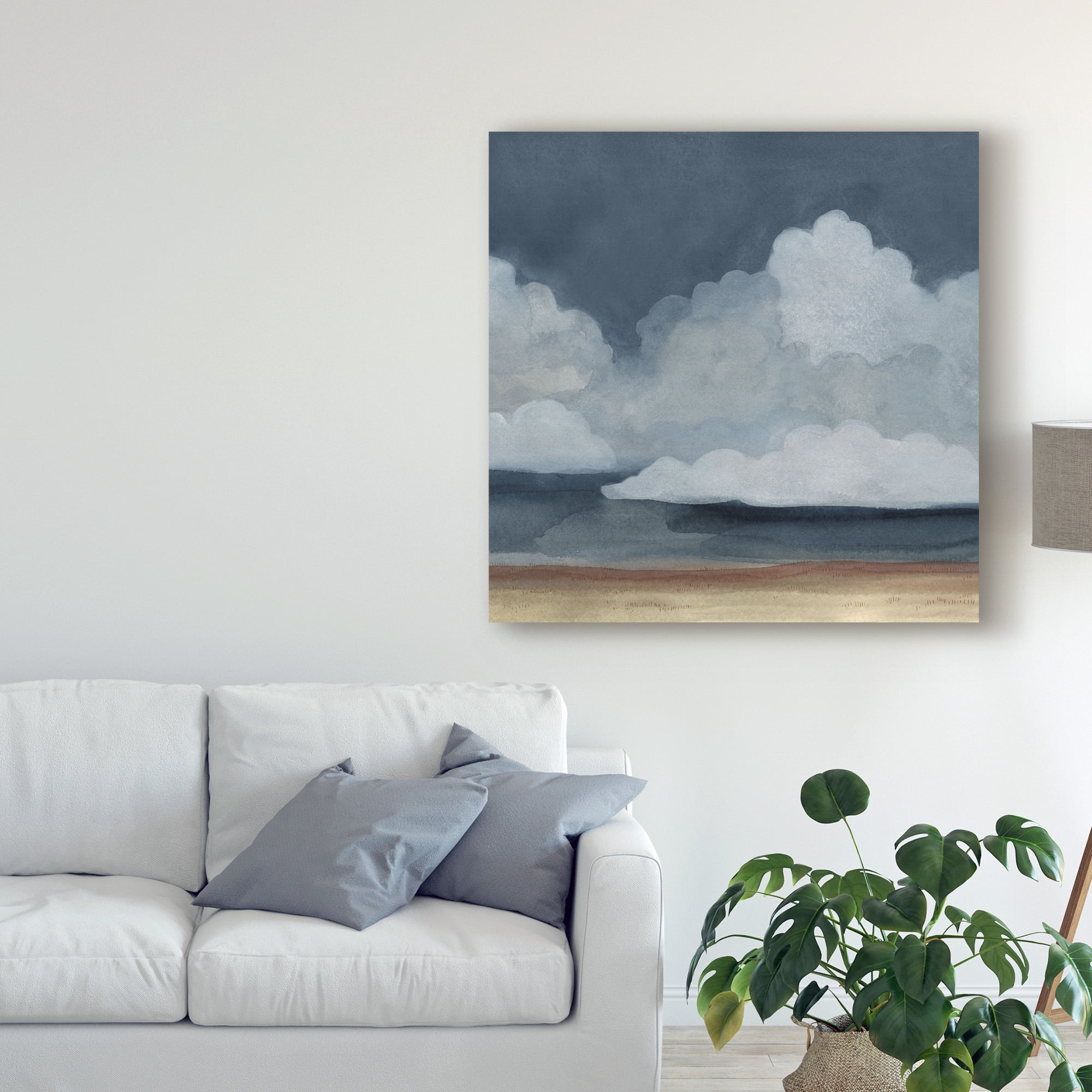 Artist: Emma Scarvey Subject: Landscape Style: Modern & Contemporary Product Type: Gallery-Wrapped Canvas Art This ready to hang, gallery-wrapped art piece features a dark blue sky with a white cloud in the center. Prominent Colors: Blue, White, Light Blue, Tan World Art Group is a leading art publisher located in Richmond, Virginia. We have been producing wall decor for over 40 years. Formerly known as Old World Prints, World Art Group publishes a comprehensive line of imagery ranging from very Traditional to highly Contemporary. With weekly releases, covering every subject matter and every price range, we produce over 4,000 images a year. In addition to collaborating with artists from around the world, World Art Group has its own in-house design team Vision Studio. Giclee (jee-clay) is an advanced printmaking process for creating high quality fine art reproductions. The attainable excellence that Giclee printmaking affords makes the reproduction virtually indistinguishable from the original piece. The result is wide acceptance of Giclee by galleries, museums, and private collectors. Gallery wrap is a method of stretching an artist’s canvas so that the canvas wraps around the sides and is secured a hidden, wooden frame. This method of stretching and preparing a canvas allows for a frameless presentation of the finished painting.