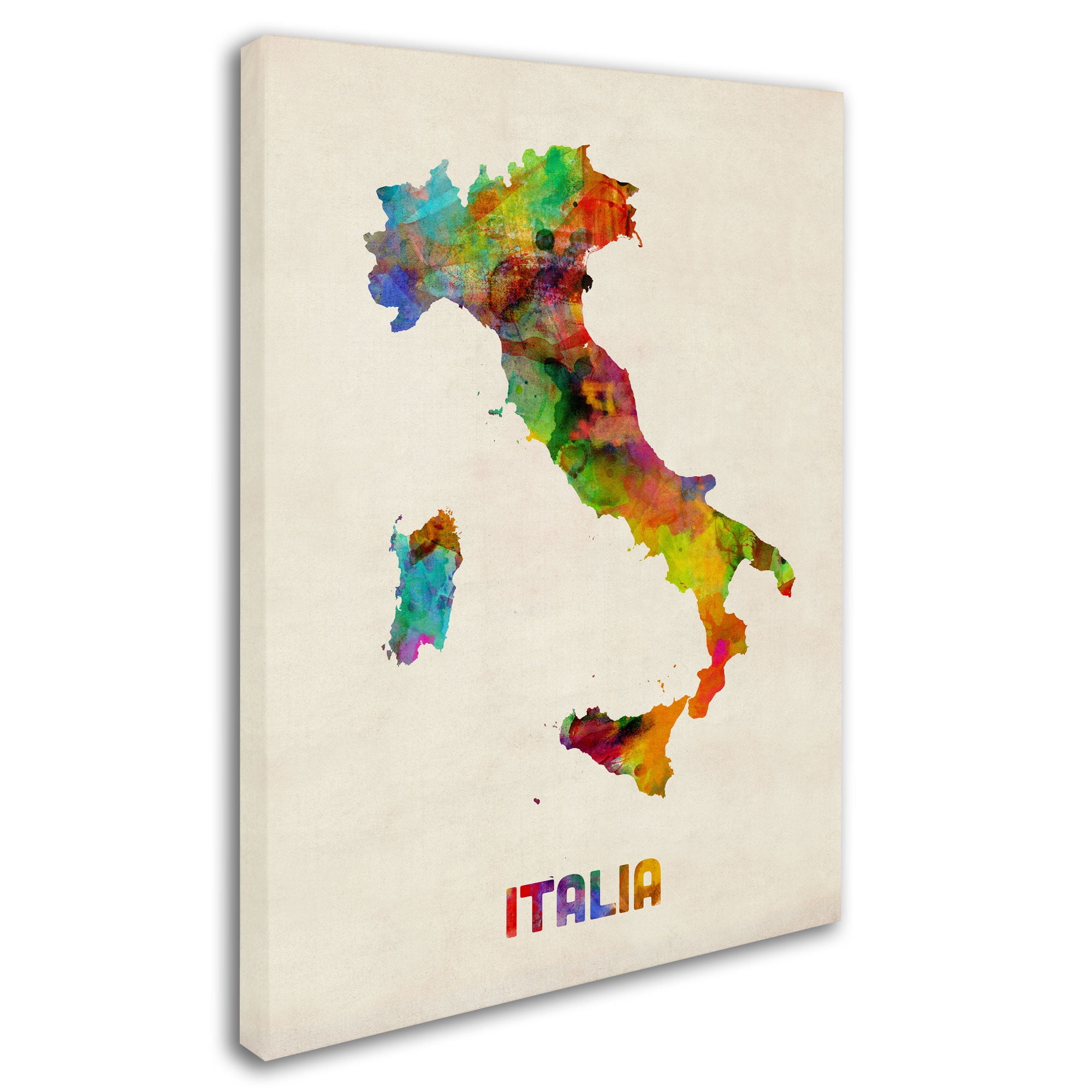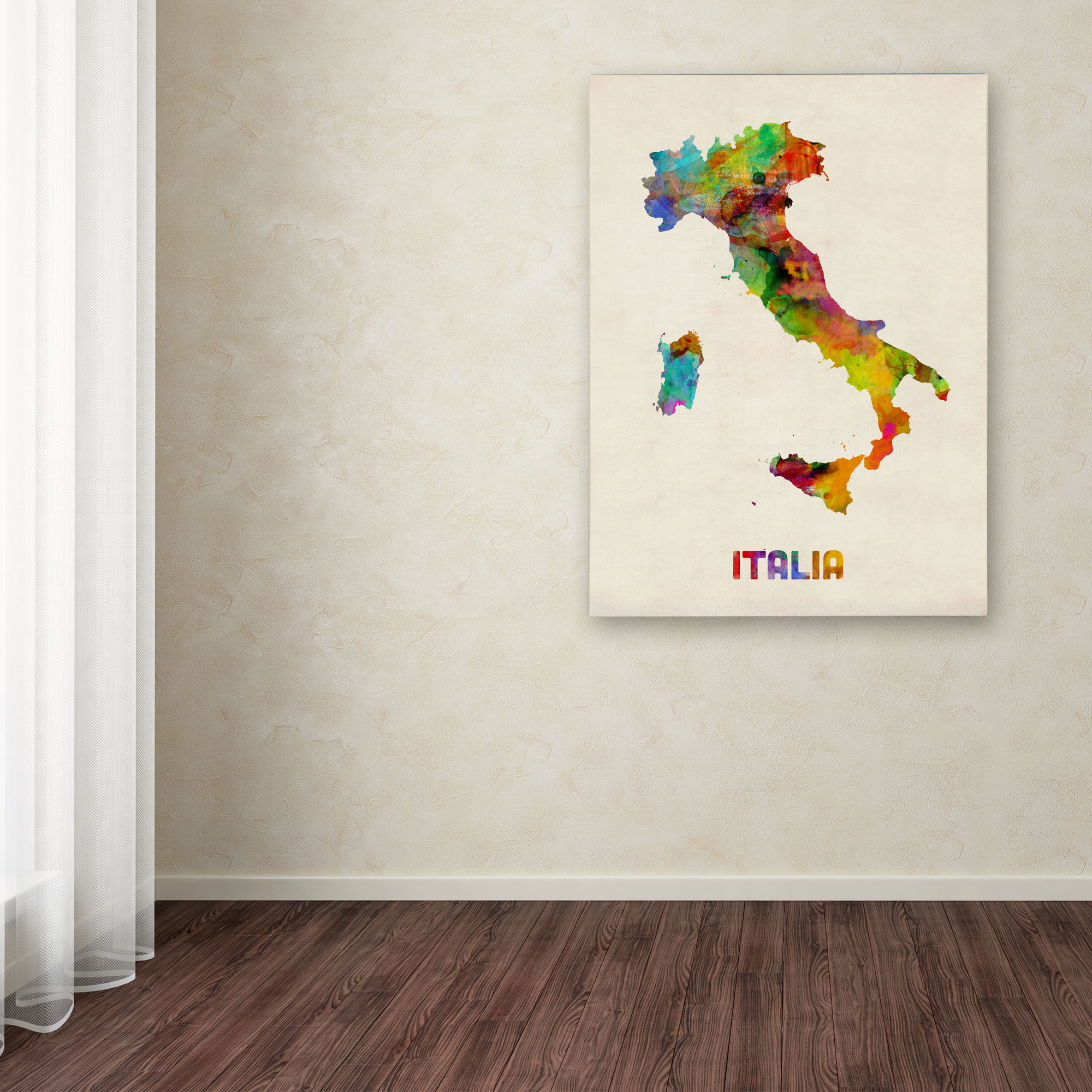 Trademark Fine Art “Italy Watercolor Map” Canvas Art by Michael Tompsett
