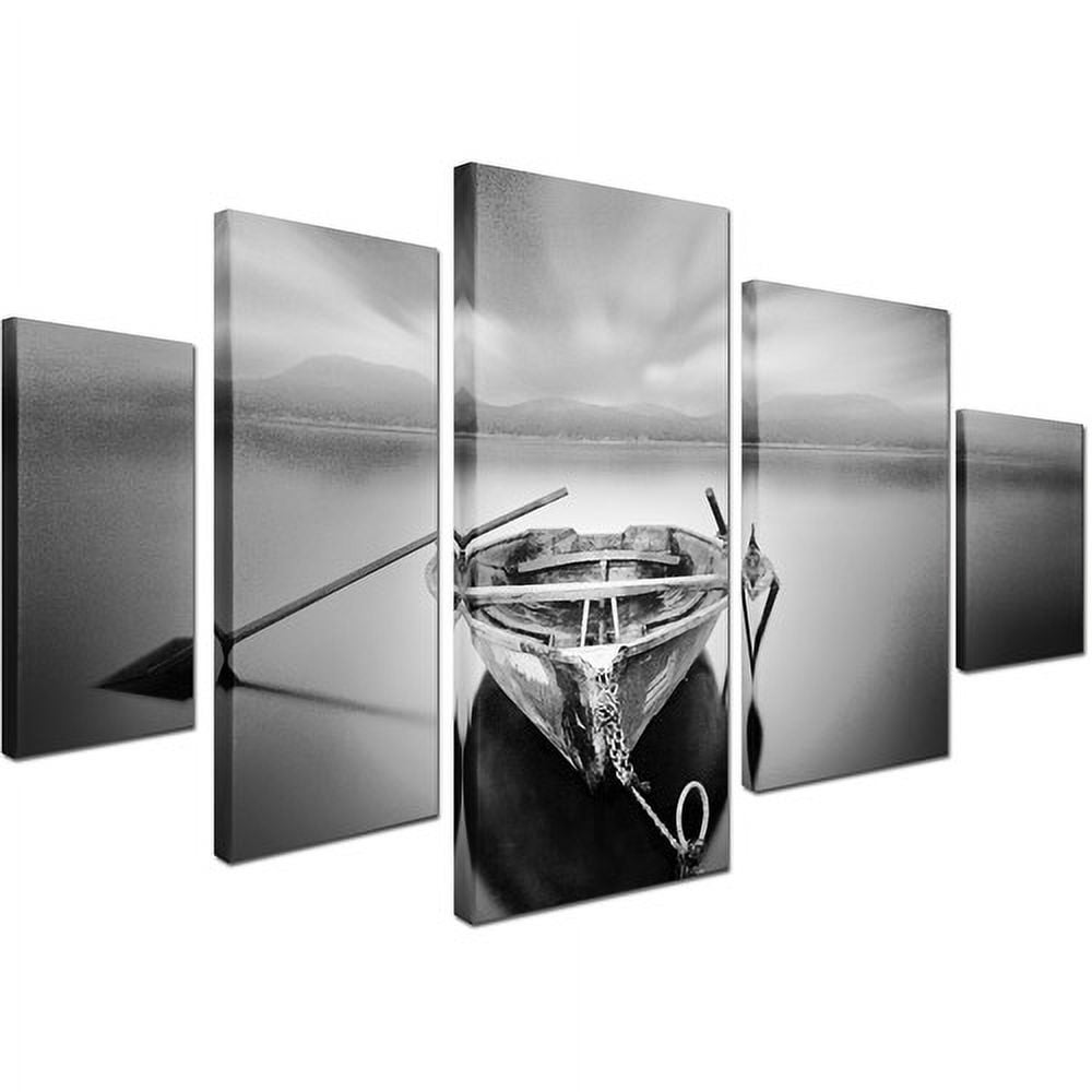 This ready-to-hang, gallery wrapped canvas art set features a rowboat on the water. This piece of Trademark Art’s canvas artwork is printed using giclee, which is an advanced printmaking process that creates reproductions that are virtually indistinguishable from the originals. Many galleries, museums and private collectors accept giclee-printed art. This painting is also gallery wrapped so that the canvas wraps around the sides and hides the wooden frame, allowing for a frameless presentation of the finished painting.