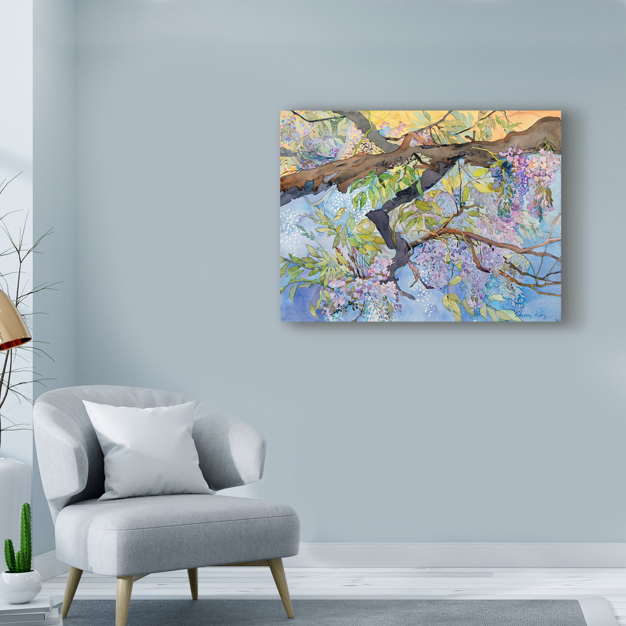 Artist: Sharon Pitts Subject: Still Life Style: Modern & Contemporary Product Type: Gallery-Wrapped Canvas Art This ready to hang, gallery-wrapped art piece features pink flowers on a tree. Prominent Colors: White, Tan, Purple, Grey, Light Blue Sharon Pitts has been exploring with watercolor for over 30 years. “Each painting feels like an adventure of discovering the mysterious ways of watercolor. I place a loaded brush down onto the paper and watch the paint merge and flow. I direct the paint when I feel it is necessary and let it go where it wants when I like what I see happening.” Born in Chicago, Illinois, Sharon Pitts holds a B.A. in Plastic and Graphic Arts from the University of Illinois-Chicago. She has studied at the Pennsylvania Academy of Fine Arts and The Barnes Foundation. She is listed in, “Who’s Who in American Art”. She has taught watercolor for 20 years and currently teaches at the Montclair Art Museum. She was invited to be artist-in-residence at the Gustav Stickley Museum in 2012. She gives watercolor demonstrations and workshops around the country, in the south of France and currently teaches a watercolor workshop in Italy each summer. She is an avid reader. She concentrates on painting lush, colorful watercolors based on themes in nature. Her work is in many corporate and private collections. Giclee (jee-clay) is an advanced printmaking process for creating high quality fine art reproductions. The attainable excellence that Giclee printmaking affords makes the reproduction virtually indistinguishable from the original piece. The result is wide acceptance of Giclee by galleries, museums, and private collectors. Gallery wrap is a method of stretching an artist’s canvas so that the canvas wraps around the sides and is secured a hidden, wooden frame. This method of stretching and preparing a canvas allows for a frameless presentation of the finished painting.
